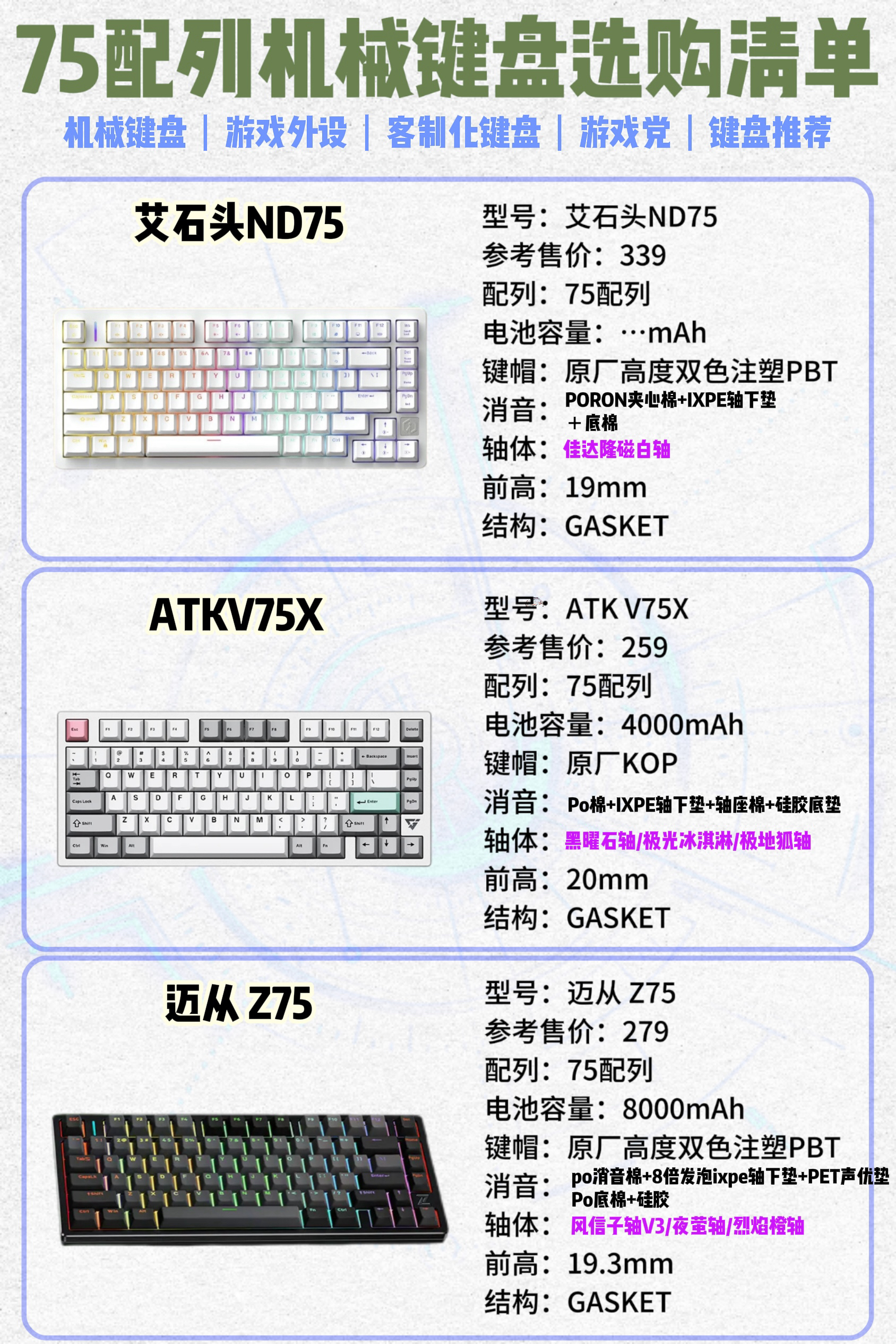 本篇笔记关联了AULA/狼蛛 F75 三模 机械键盘 80键 收割者轴 新月轴 冰脉轴 客制化 热插拔 全键 性价比高 冰川蓝 游戏、GANSS/高斯 XS75T 三模 机械键盘 75键 热升华 天河翠、艾石头 Nd75 有线 磁轴键盘 81键 自研驱动 全键热插拔 透光 单模 人体工学 白色 游戏等商品,为用户提供真实的使用体验和购买参考。