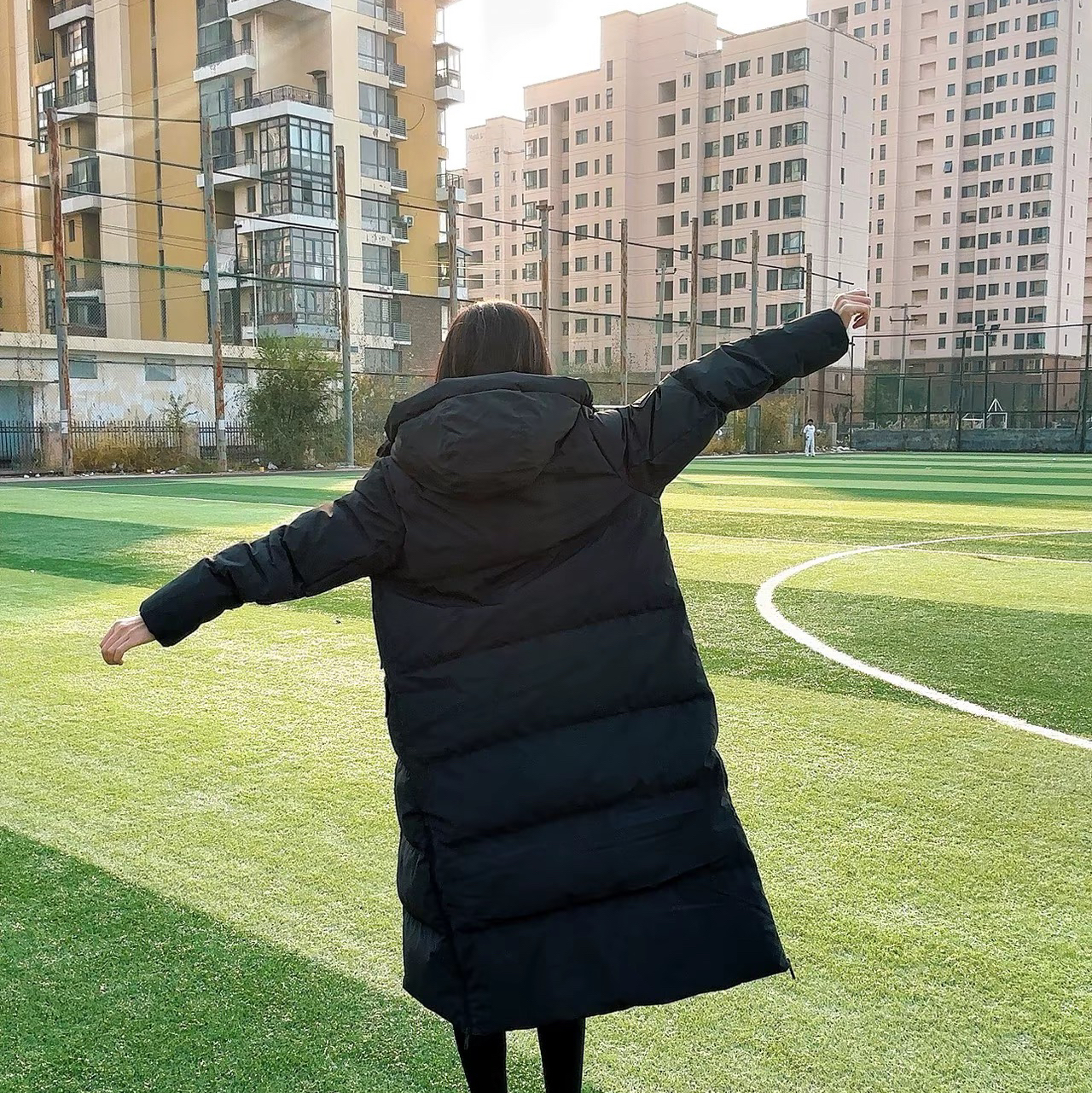 要问我冬天穿搭都穿什么,那我只能说作为东北姑娘,长款羽绒服是必不可少的‼️ 相对于其他颜色,我个人更偏爱黑色,耐脏又百搭! 这款✔️李宁 家健身系列的火锅羽绒服,面料是带防泼水科技的,冬天下大雪就不用担心衣服会湿。 我上身的是s码,长度到小腿一半的位置。整体的衣服设计的简约,穿上以后也感觉柔软舒适,也挺轻便,保暖度很棒👣搭配休闲套装,运动套装,瑜伽裤运动鞋都可以! 图片来源于@草莓酱有点辣