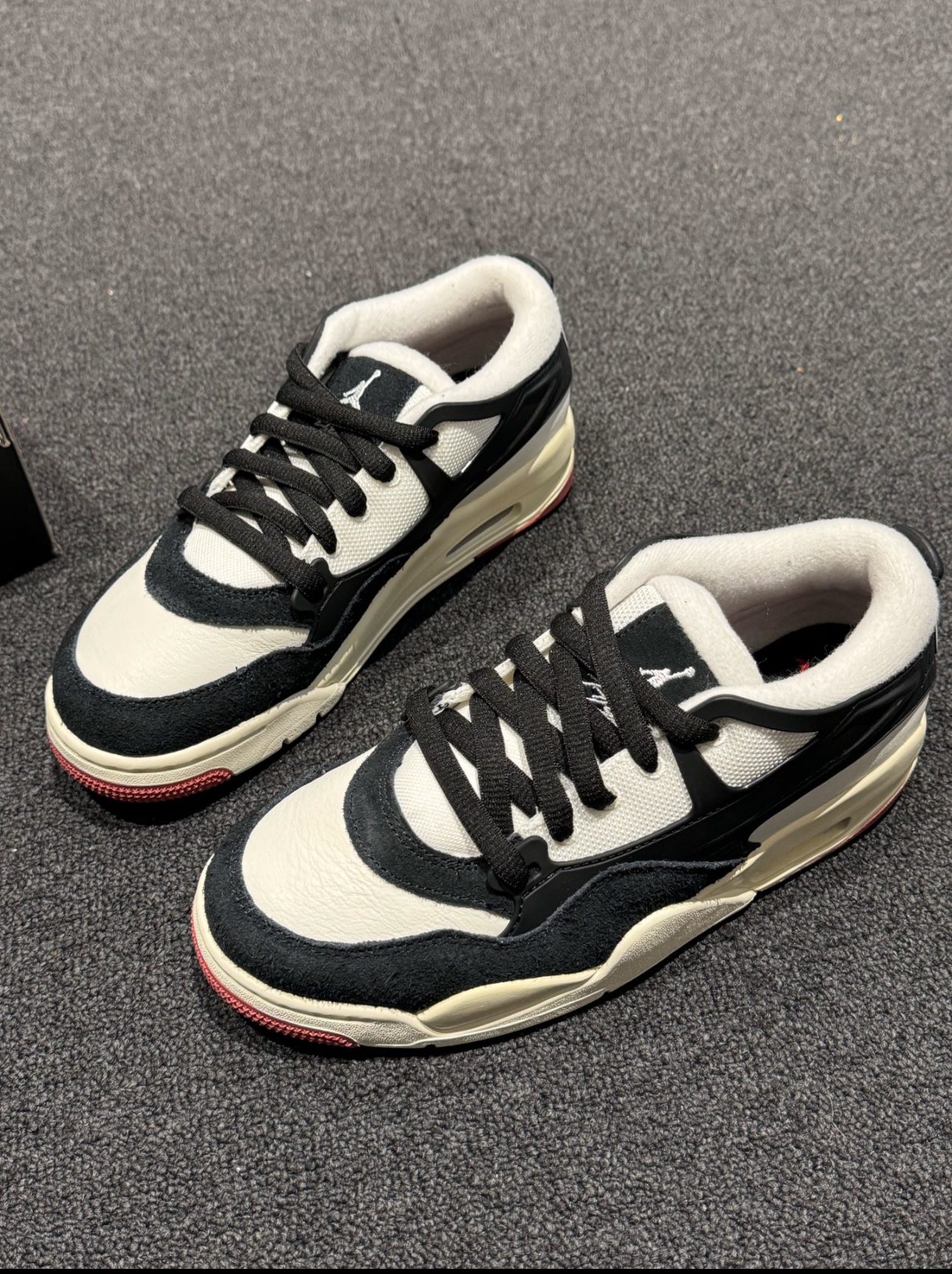 改款是真的帅啊 就是这双Aj4 RM 融入了经典的黑白元素 低帮设计更放便穿脱~ 这双 黑白色真的百搭~