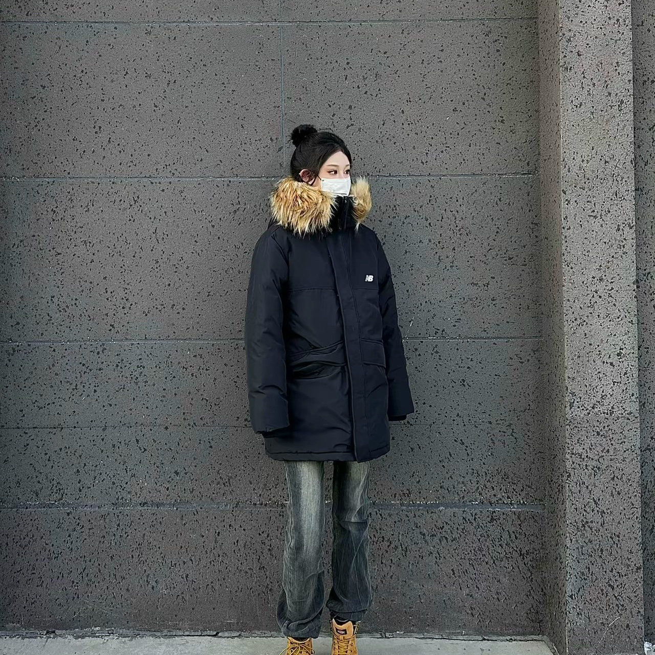 冬天百搭万能ootd公式:派克工装羽绒服十大黄靴 +水洗牛仔✔️dickies马丁靴➖新百伦羽绒服 这双大黄靴超百搭 可以适配绝大部分厚外套有一种户外松弛感 ‼️这双鞋头的防水涂层像小腮红一样很特别 而且是实打实的增高!! 图片来源于@燕麦奶太好喝了