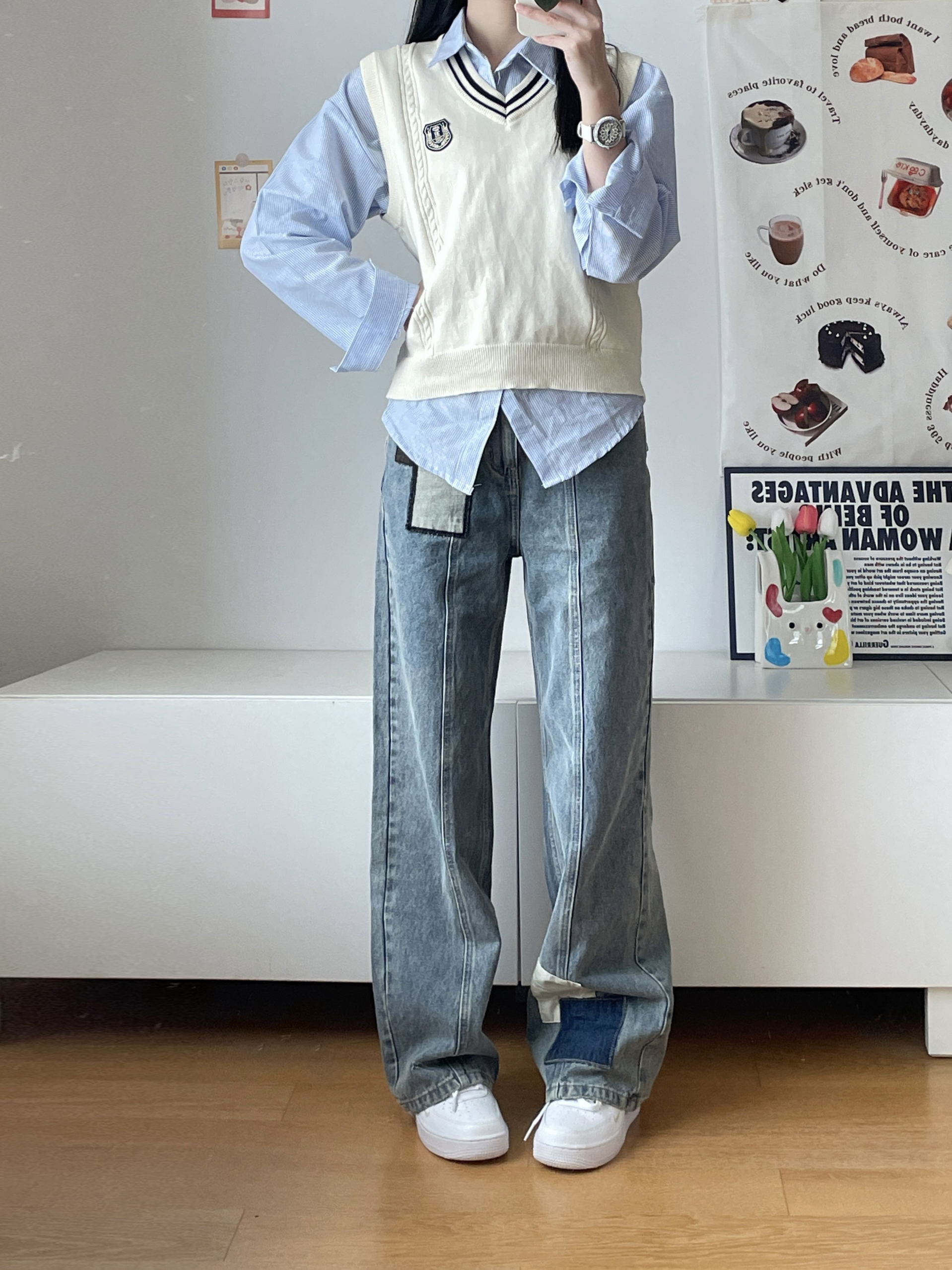 清新温柔的蓝色系穿搭 软糯舒服~ 鞋子穿的白蓝空军一号 今天这套清爽舒服~