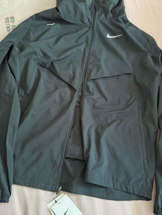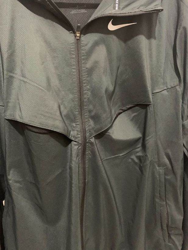 外套总体上非常轻薄,面料柔顺的同时不会显得粗糙,皮肤直接感受也不会有不适感。并且设计了多个口袋,背下部分设计了较大的可放手机的口袋,方便跑着携带手机。其他等部分也设计了较多口 袋,十分方便,跑步再也不用双手拿东西了②要衣 表运用到了Nike Repel(拒水技术)和Nike UV (抗紫外线技术)在保证干爽的同时也有防晒效 果,是害怕太阳的跑者的福音②②总体体验下来 挺合身的,跑时穿着也很舒服④,...