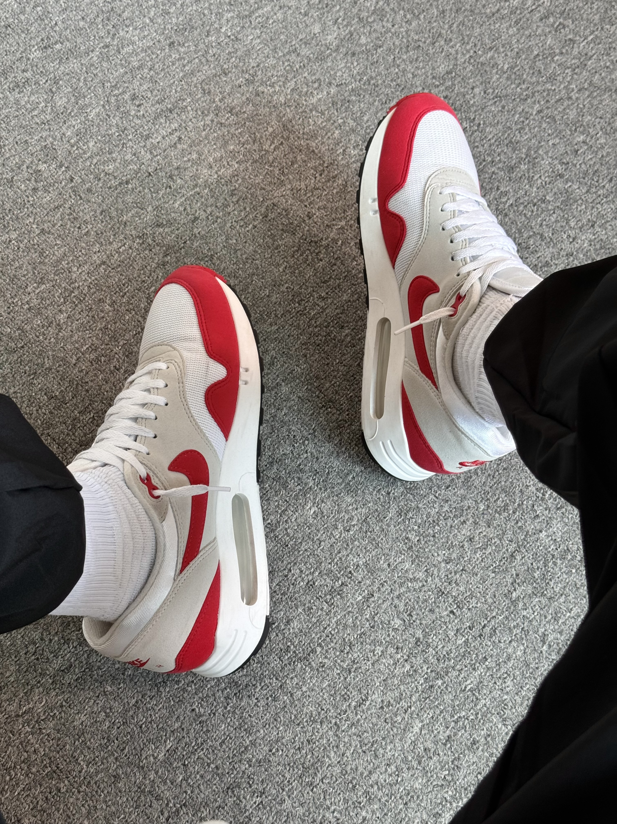 本篇笔记关联了【欧阳娜娜同款】 Nike Air Max 1 跑鞋 气垫缓震透气轻便复古运动舒适百搭潮流耐磨低帮训练防滑冬季支撑马拉松防水 2023/OG/男款/白色/红色、Jeep/吉普 美式 拼色透气长袖插肩圆领套头卫衣 男女同款 P843MKJ139 黑、维动 美式更迭纯色透气系带束脚运动扎袜梭织中腰直筒长裤 男女同款 V1333SZK 黑等商品,为用户提供真实的使用体验和购买参考。