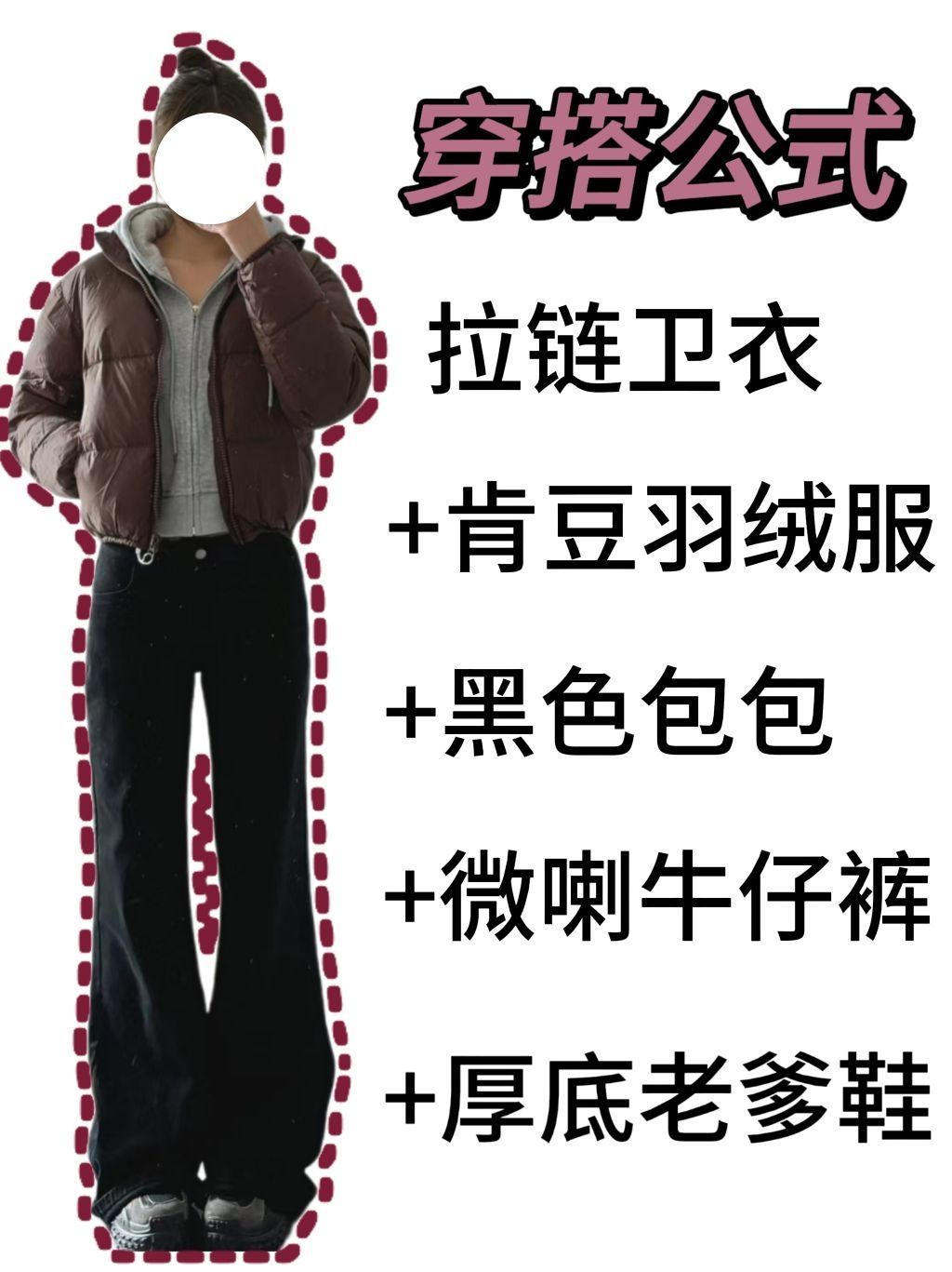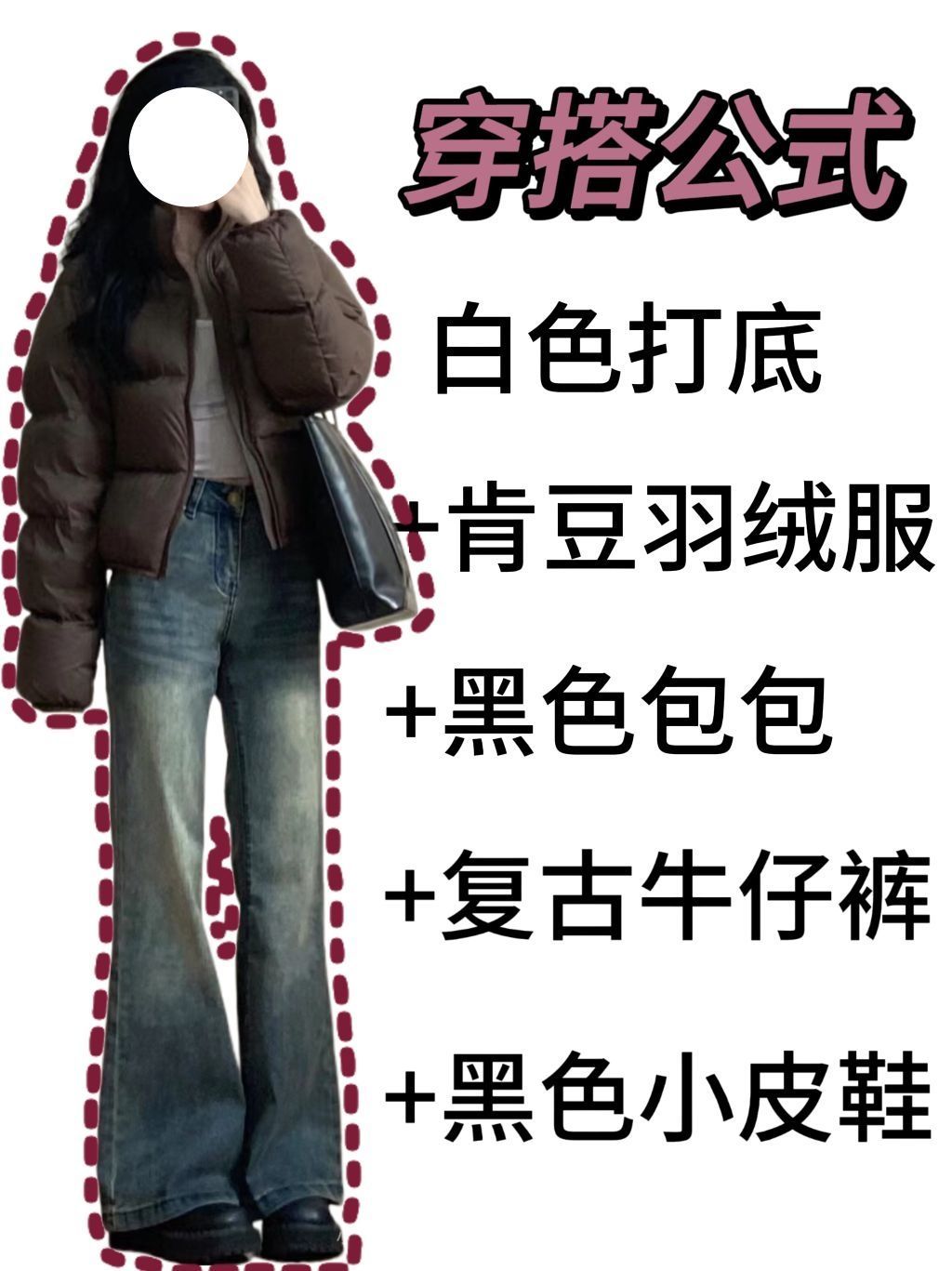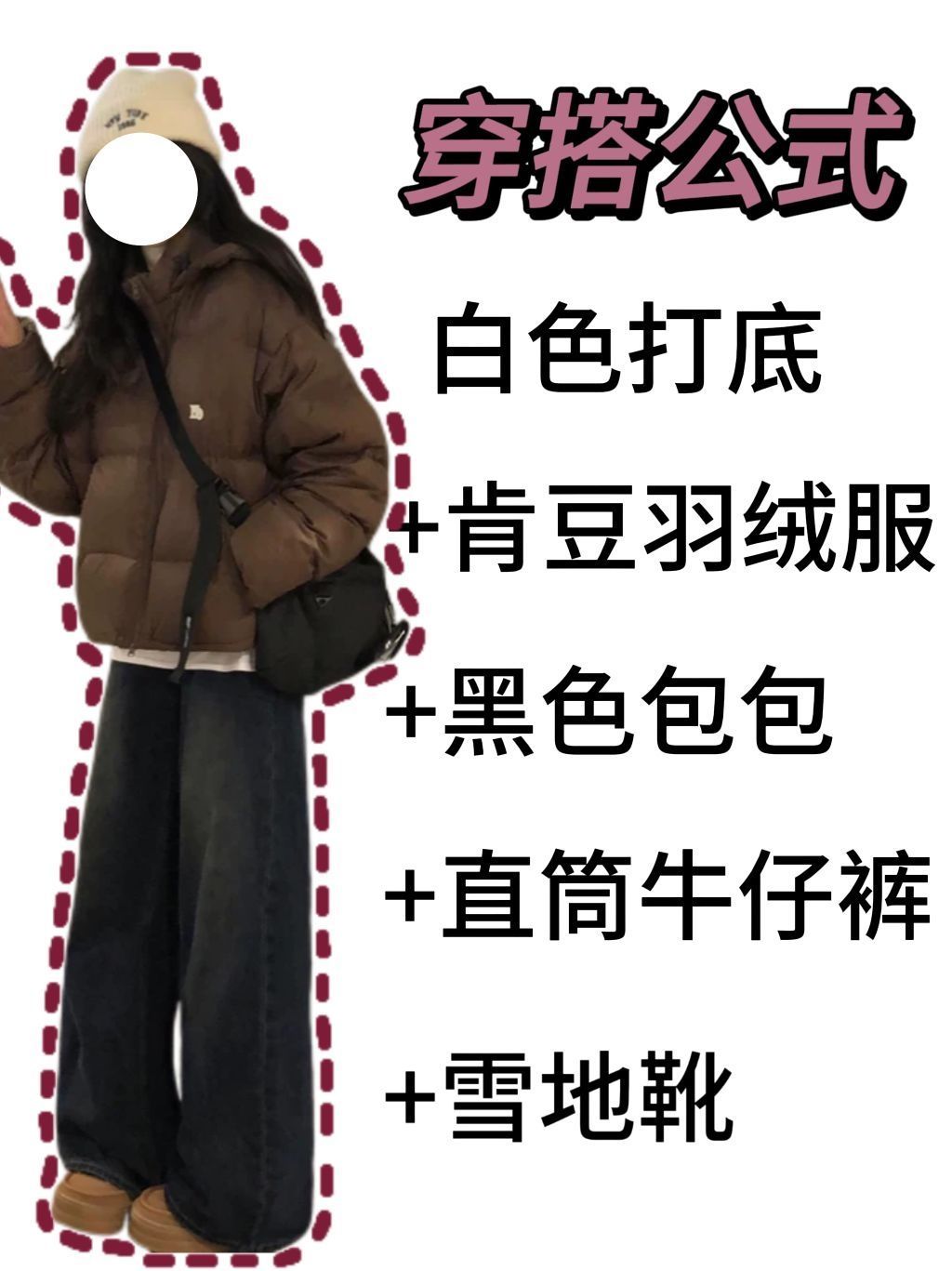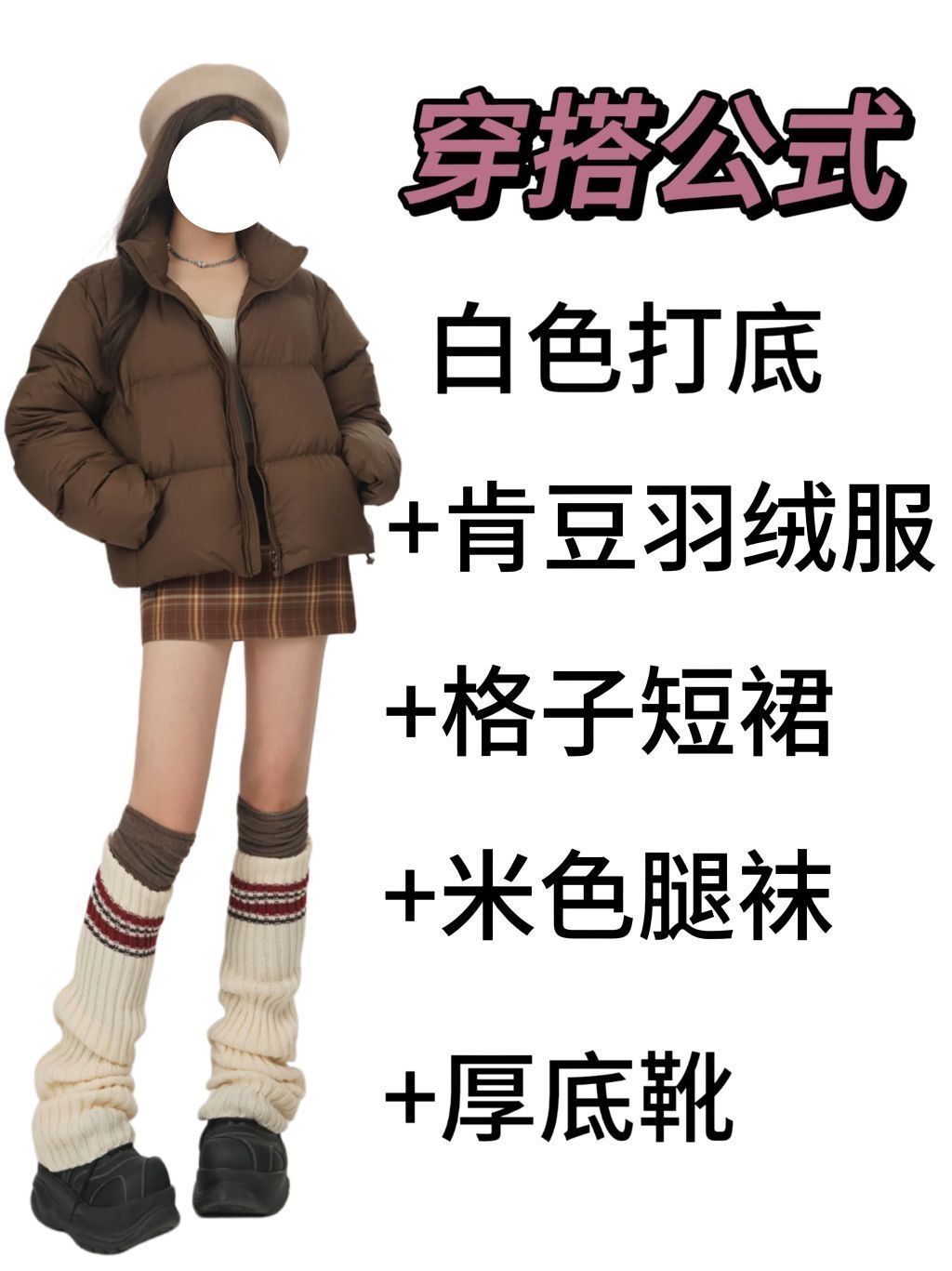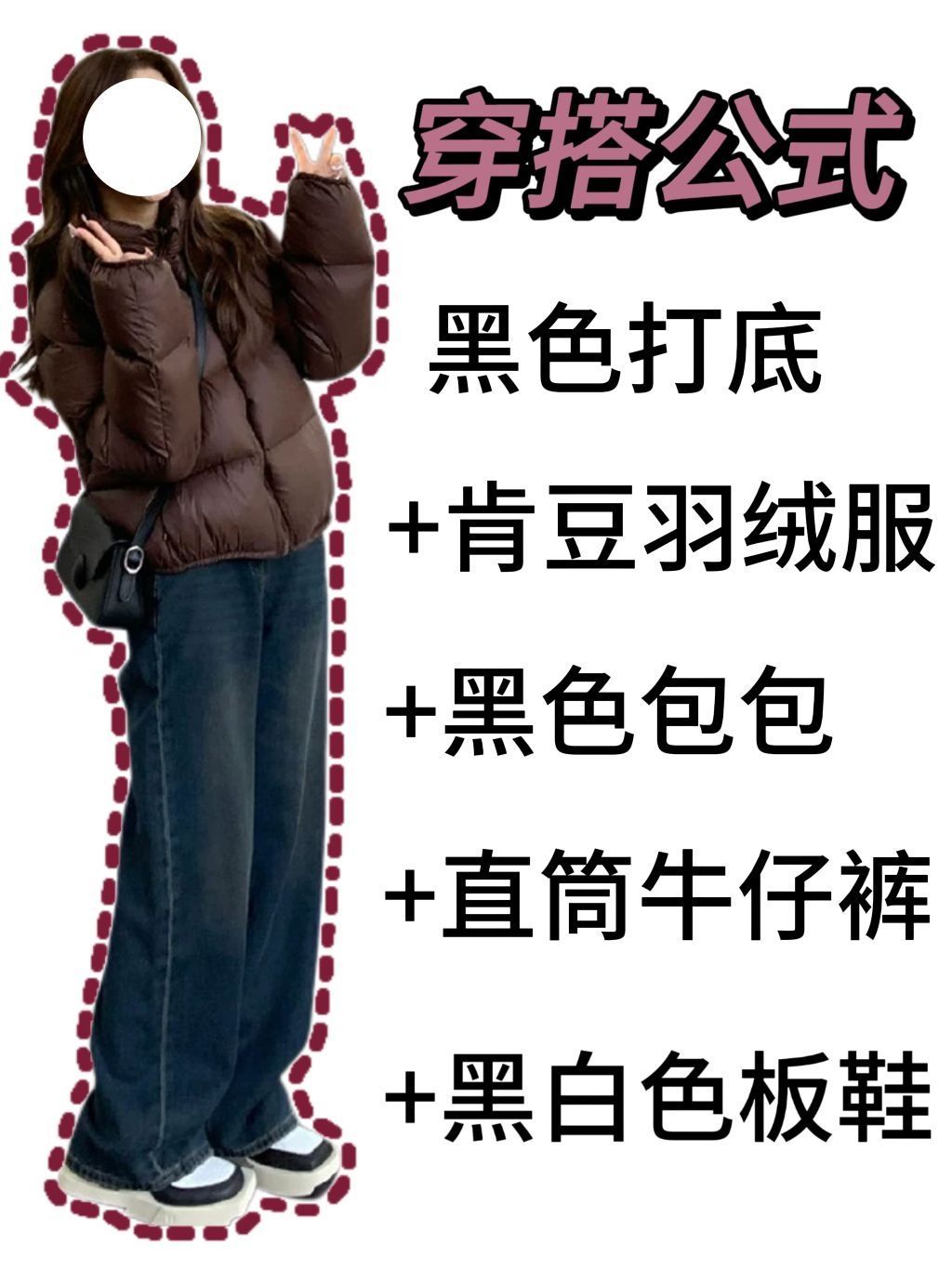 • 短款羽绒服没有拉链,露出内搭,休闲又时尚!