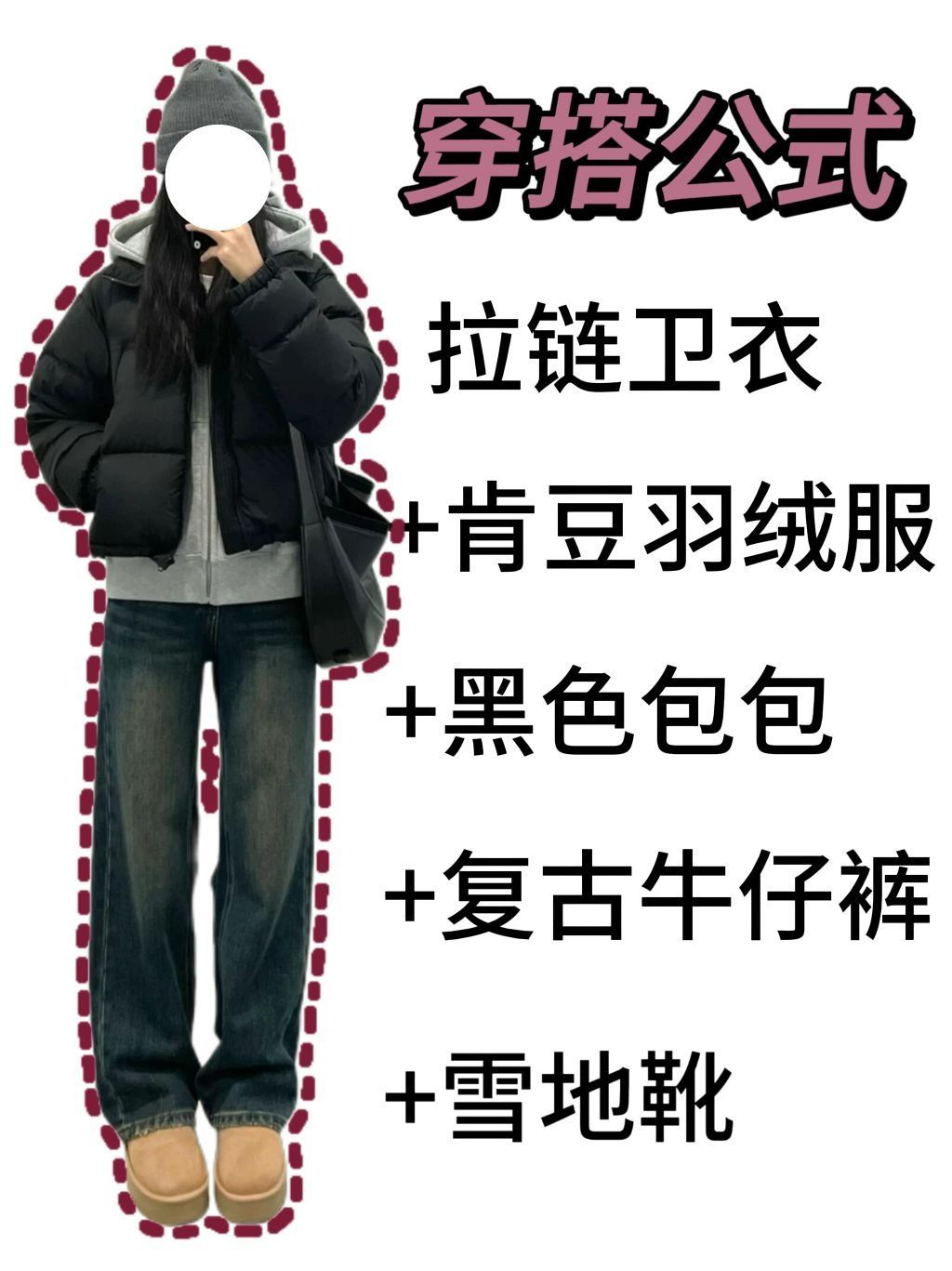 • 短款羽绒服搭配高腰长裤,是小个子姐妹最显高的穿搭公式哦!