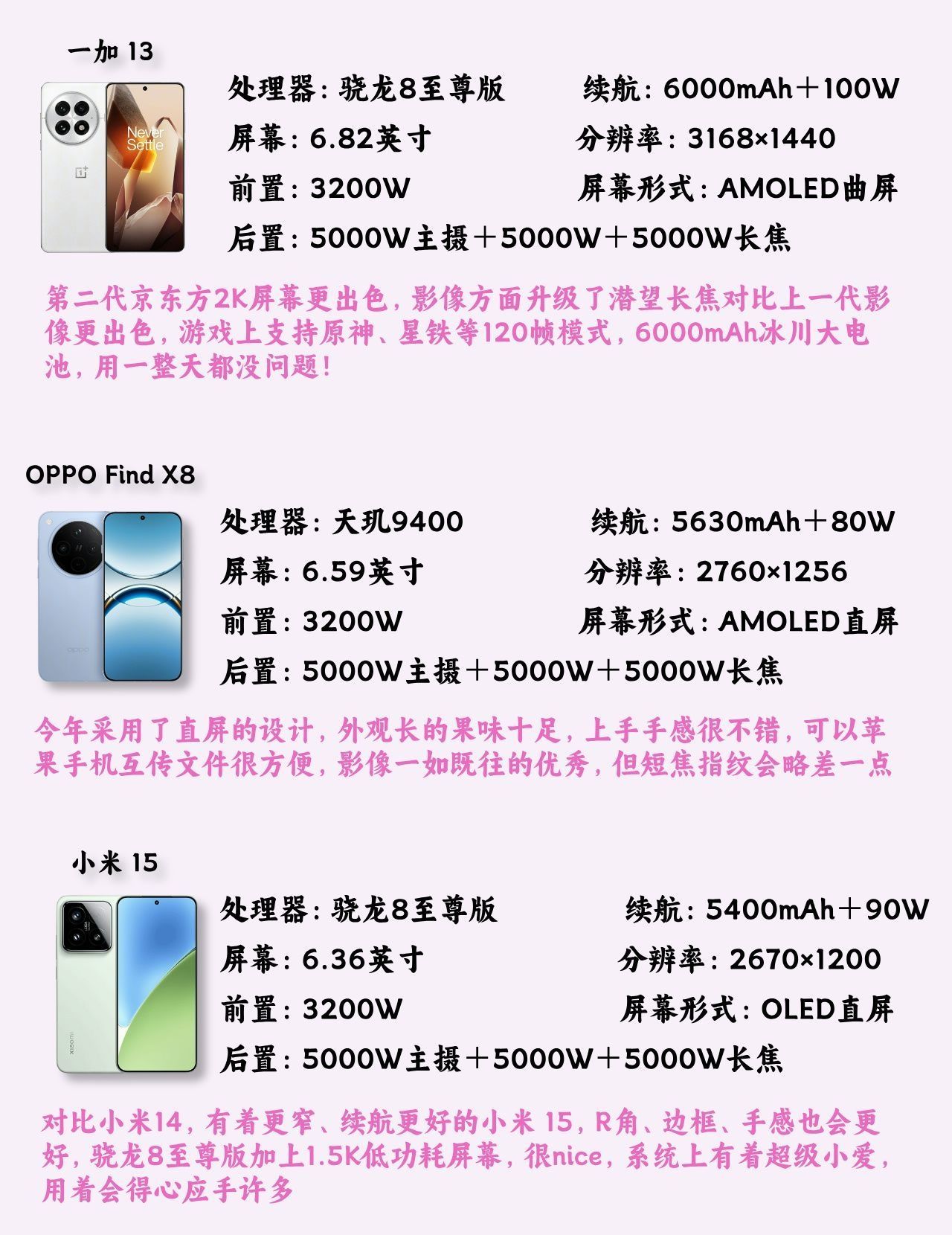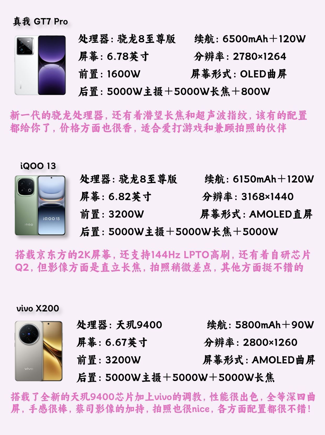 本篇笔记关联了MI/小米 15 5G 手机 澎湃OS2 徕卡影像 金沙江电池 龙晶玻璃 全网通 高速镜头 移动平台 徕卡三摄 浅草绿、realme/真我 GT7 Pro 5G 手机 星迹钛 拍照 超光影潜望 大电池 防水 光域白、vivo X200 5G 手机 闪充 全网通 大电池 旗舰芯片 蓝晶×天玑9400 蔡司超级长焦 拍照 快充 宝石蓝等商品,为用户提供真实的使用体验和购买参考。