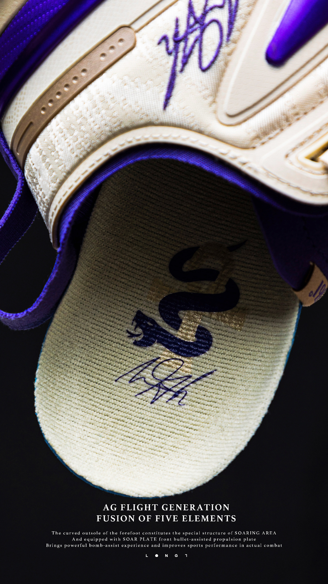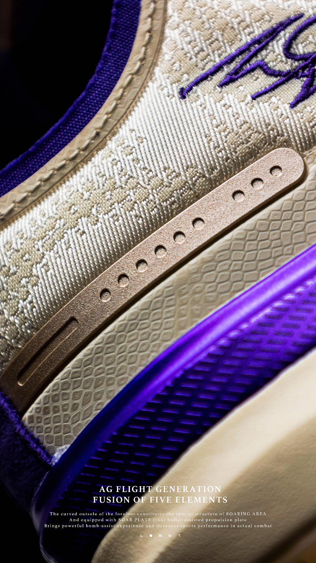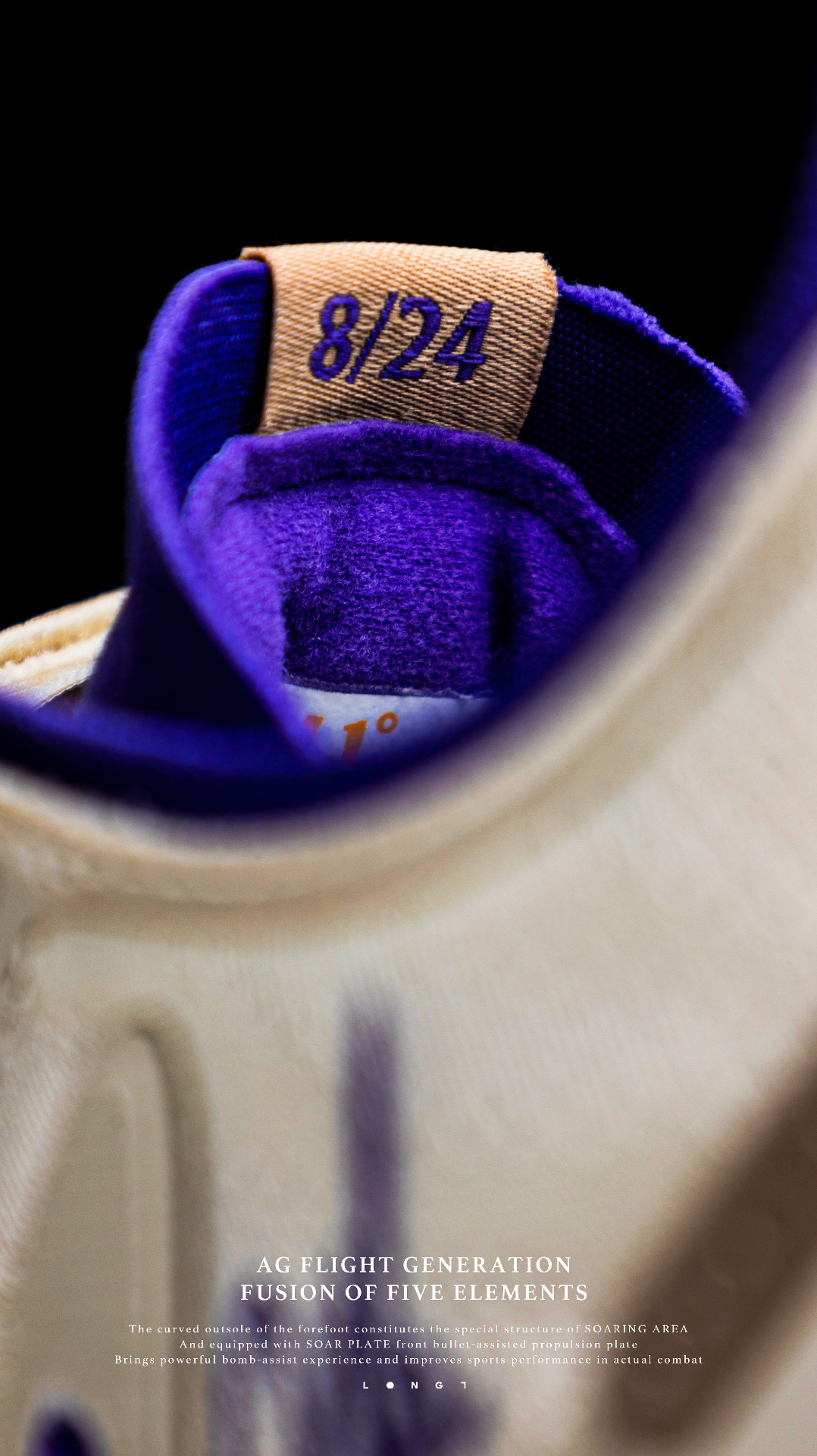 🐍致敬曼巴🐍 👟:361° AG5 PRM “8·24” 增加了一条魔术贴,对鞋面结构作出调整后,AG5 PRM正式亮相,该配色致敬了Kobe Bryant,紫金配色搭配细节处的蛇皮纹理,呼应了配色灵感,鞋头的漆皮与圆润的线条处理,复古味道着实是拉满了~ #ag5prm #曼巴门徒