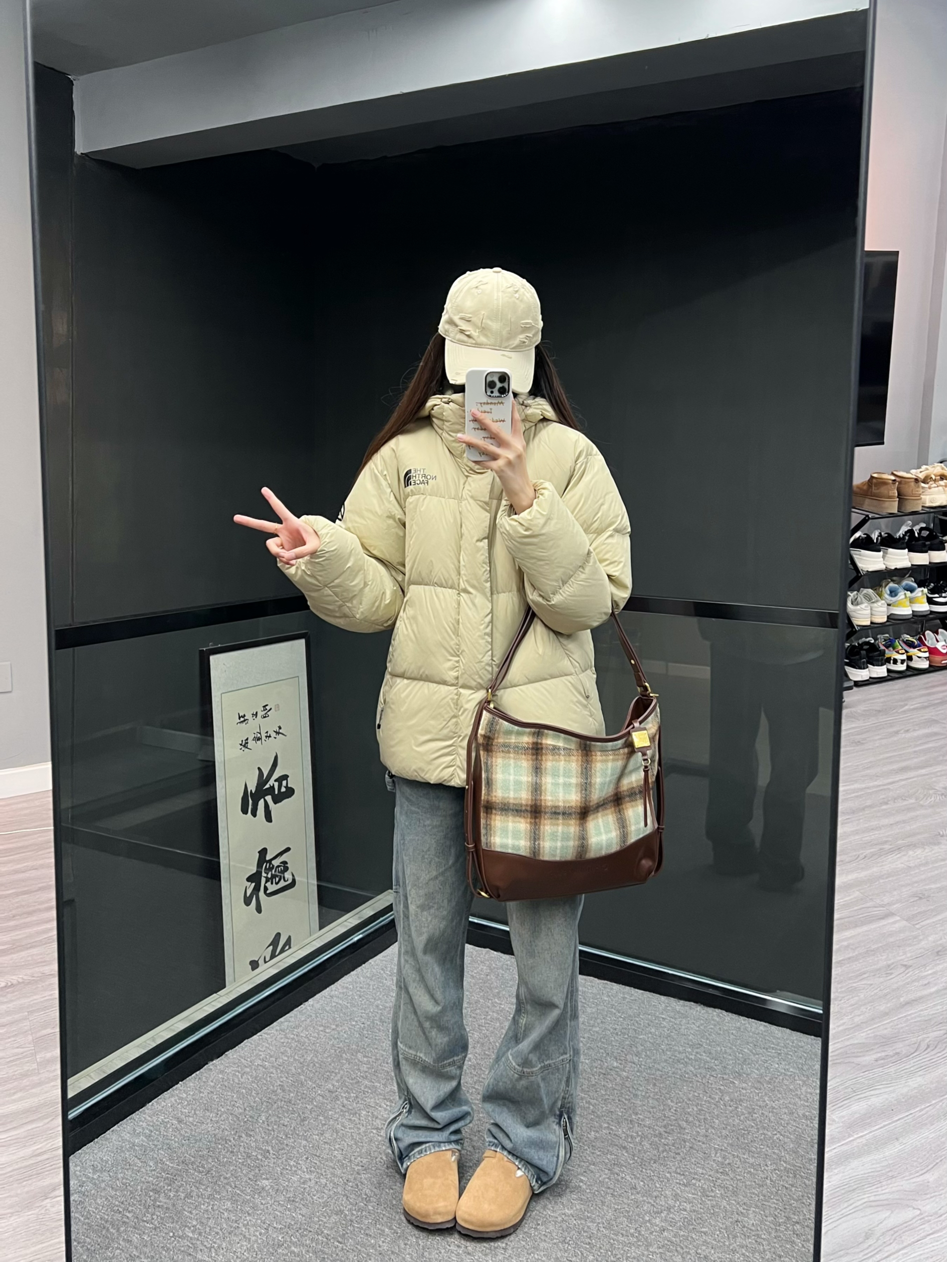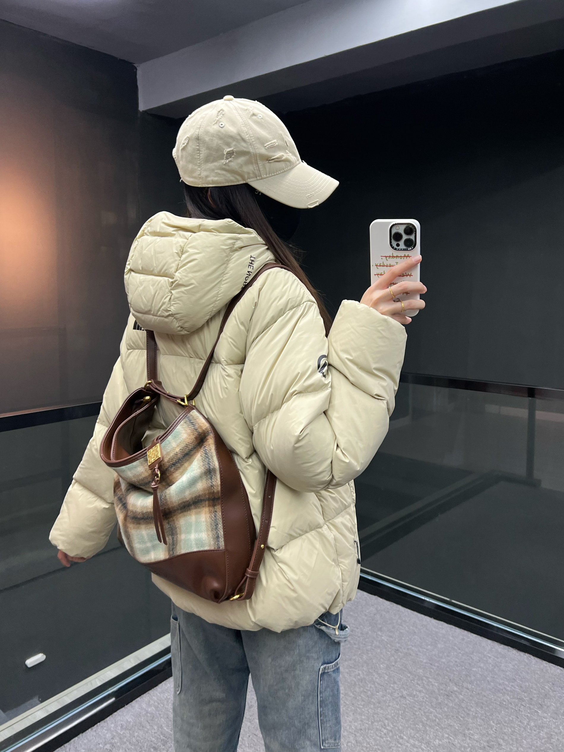 暖色调的一身搭配好温柔的感jio~ 冬天就喜欢这种蓬松的羽绒服 北面的巅峰软软蓬蓬的☁️ 可以把整个人包住 保暖轻盈无负担 下身搭配牛仔裤勃肯鞋 通勤快速出门法则get✅