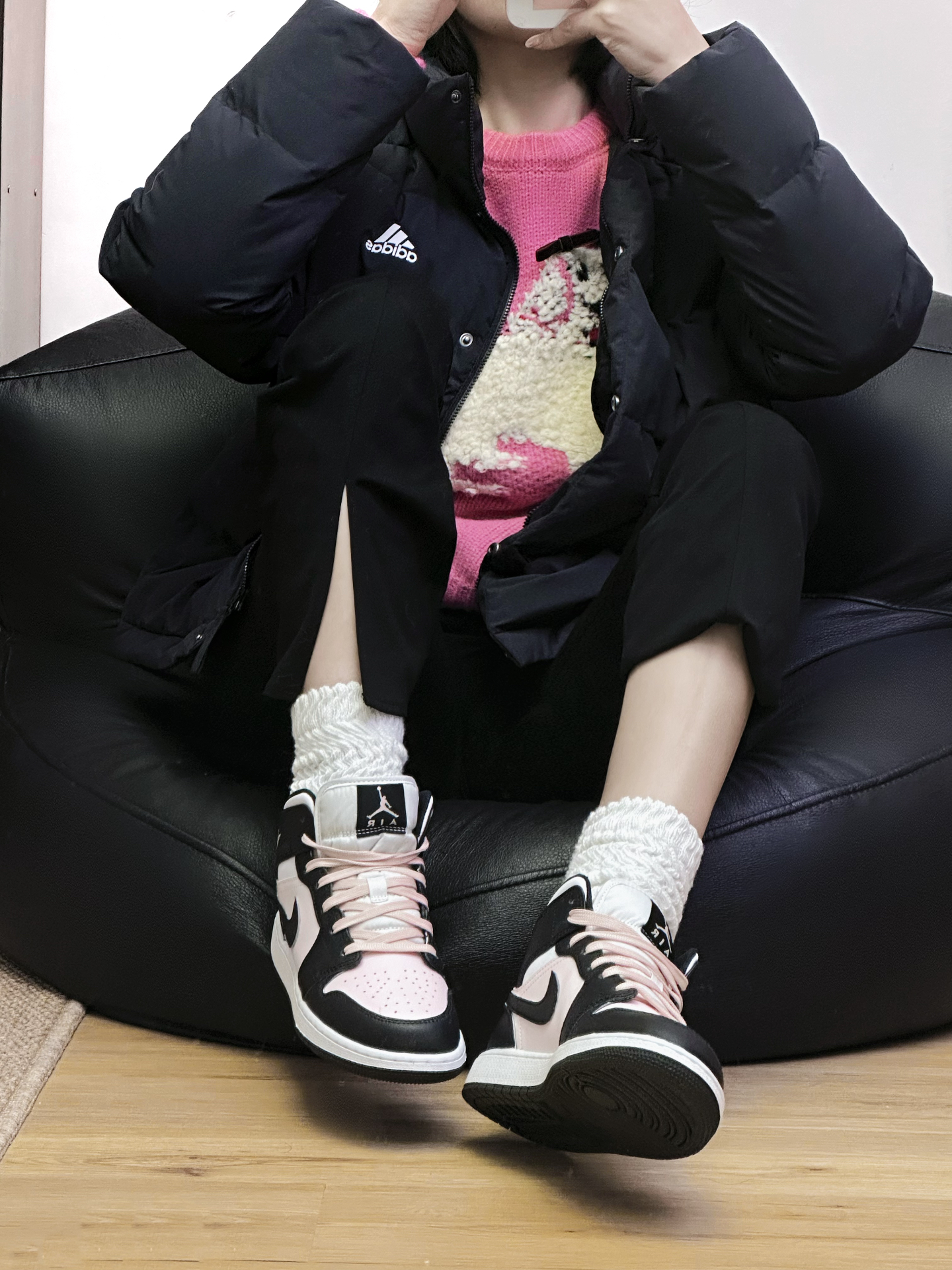 入冬小个子女生鞋柜大焕新 粉墨千金AJ 1Mid 中帮入冬穿刚刚好 适合搭配黑粉色系穿搭~ 黑色羽绒外套➕粉色毛衣内搭➕休闲裤 小个子女孩也能驾驭的Ootd get啦 #秋冬鞋柜大焕新 #一双鞋打造秋冬氛围感 #好物分享AJ1黑粉 #分享你的小个子穿搭 #小个子女生的日常穿搭