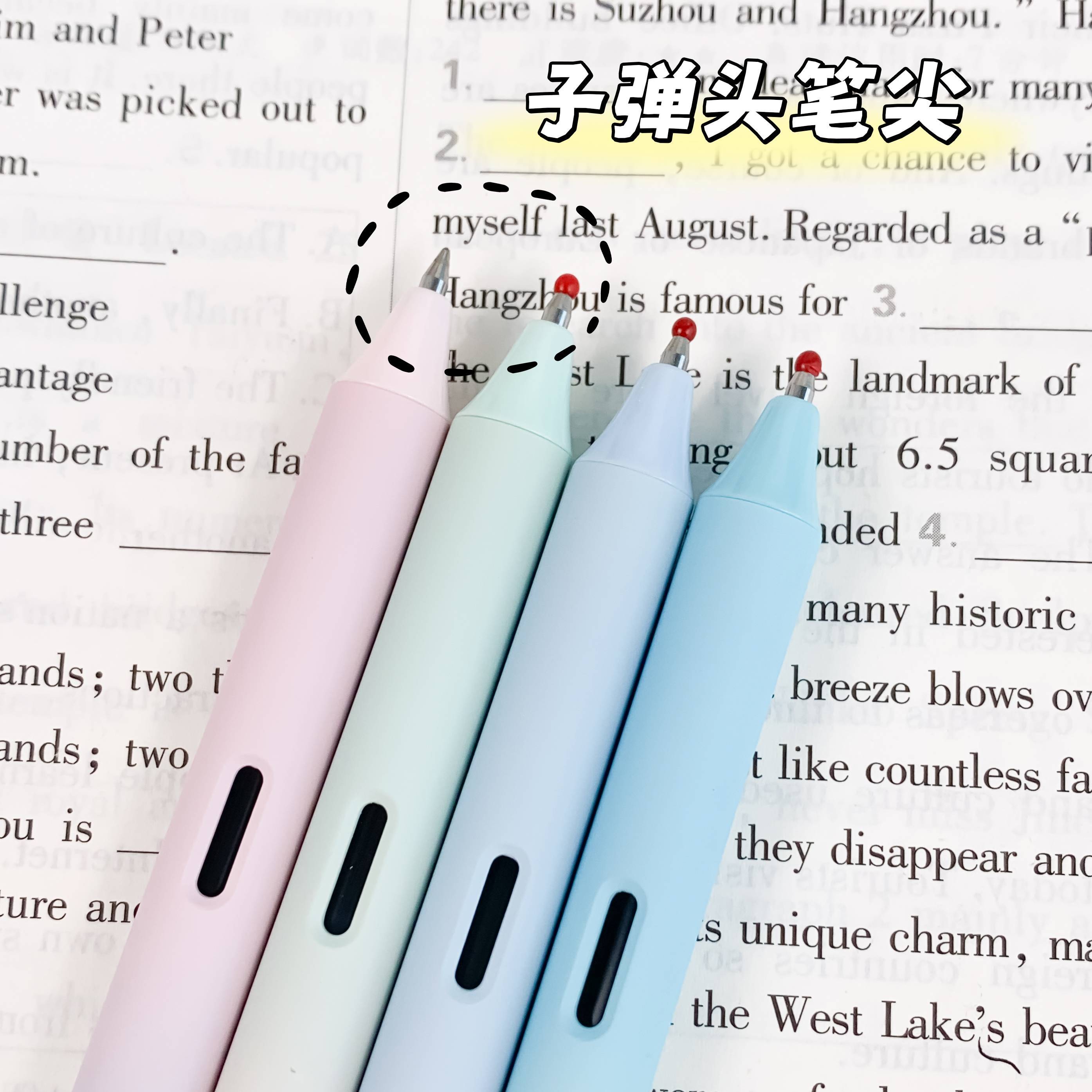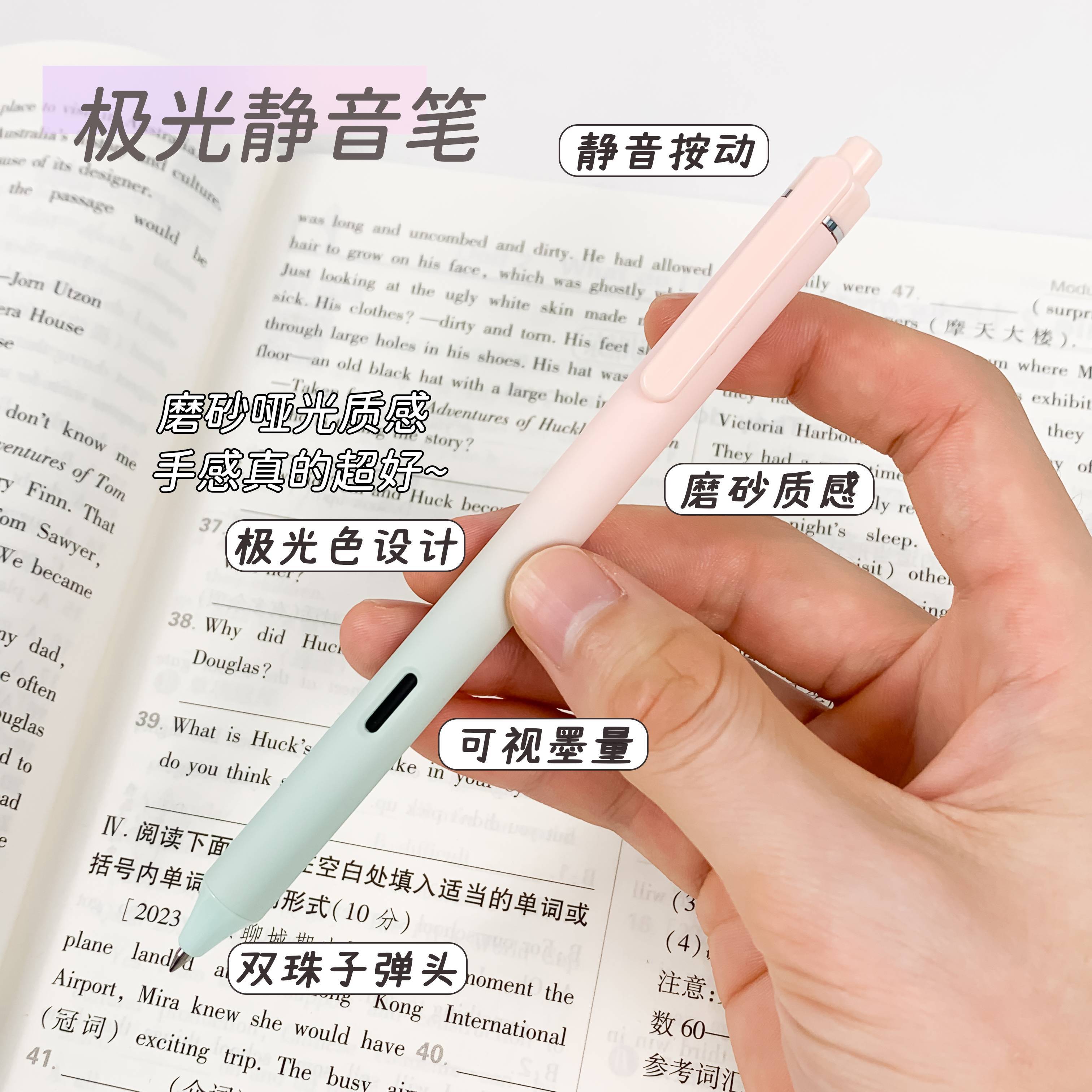 ✒️:点石极光按动静音中性笔DS0171 📍类型:按动子弹头 🍩容量:正常按动笔芯 🍩速干性:⭐⭐⭐⭐ 🍩防水性:⭐⭐⭐ 🍩书写感受: 不仅按动静音 而且还超级顺滑 速干杠杠的 虽然是为了颜值买单但是真的超好用 笔身还有可视窗 可以随时监控墨量 出墨量偏大 适合字比较大的bb 🍩优缺点: ⭕超级顺滑 ⭕高颜值 ⭕速干! 点石调颜色真的有一套的 (图源网络侵删)