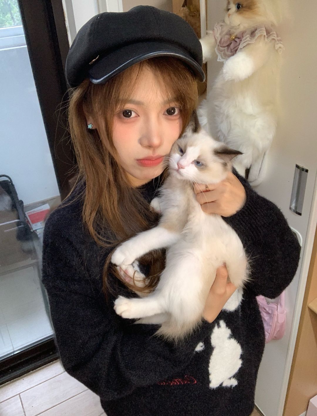 白色羽绒服当然要配黑色毛衣来搭啦😺 黑色毛衣真的太适合内搭啦! 里面还有很cute的图案,猫猫图案配上我家“逆子”,真的毫无违和感! 穿搭日记:RASPBRAND黑色印花毛衣➕黑色牛仔裤