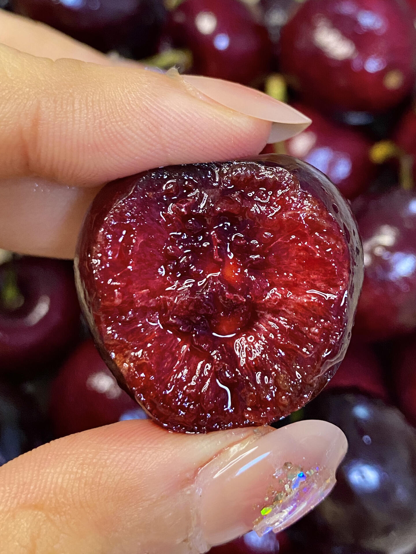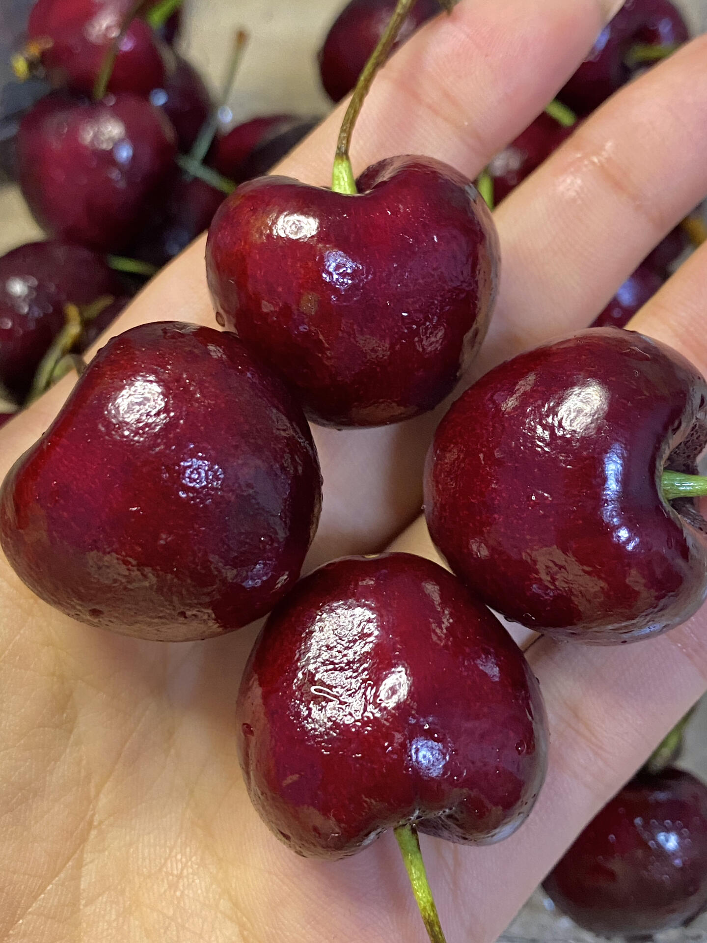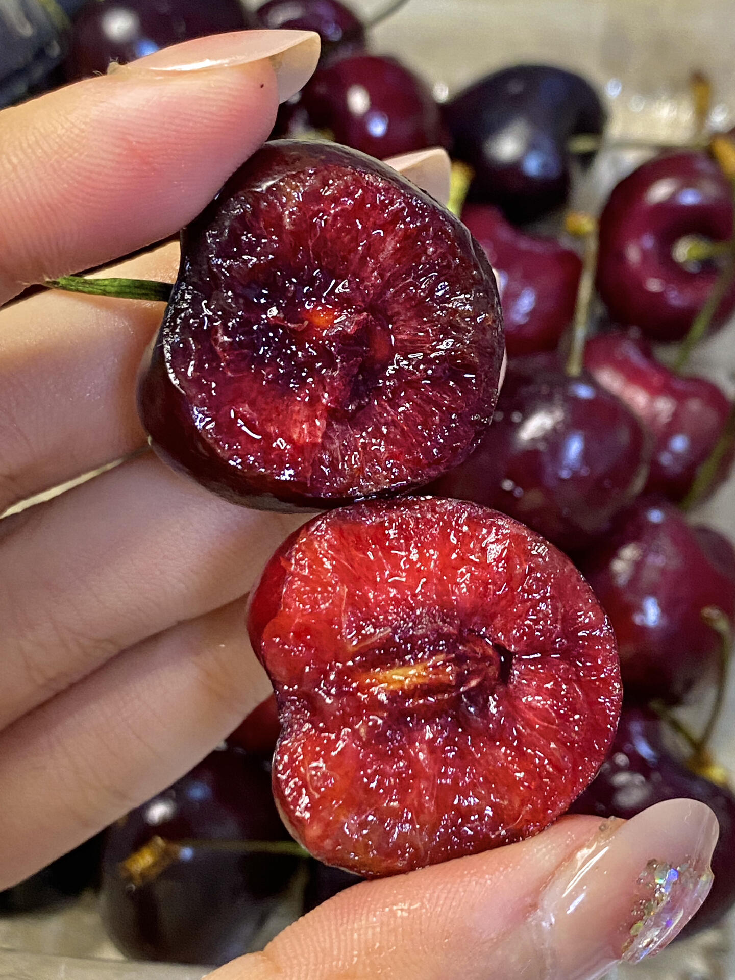 终于买到我妈也喜欢吃的车厘子了!每一颗都好漂亮,红到发黑,一口爆汁!果肉很厚实,📦冷链送过来的,果茎都是绿色的,很新鲜!和我妈两个人一下子全吃完了🤣 (图源网络侵删)