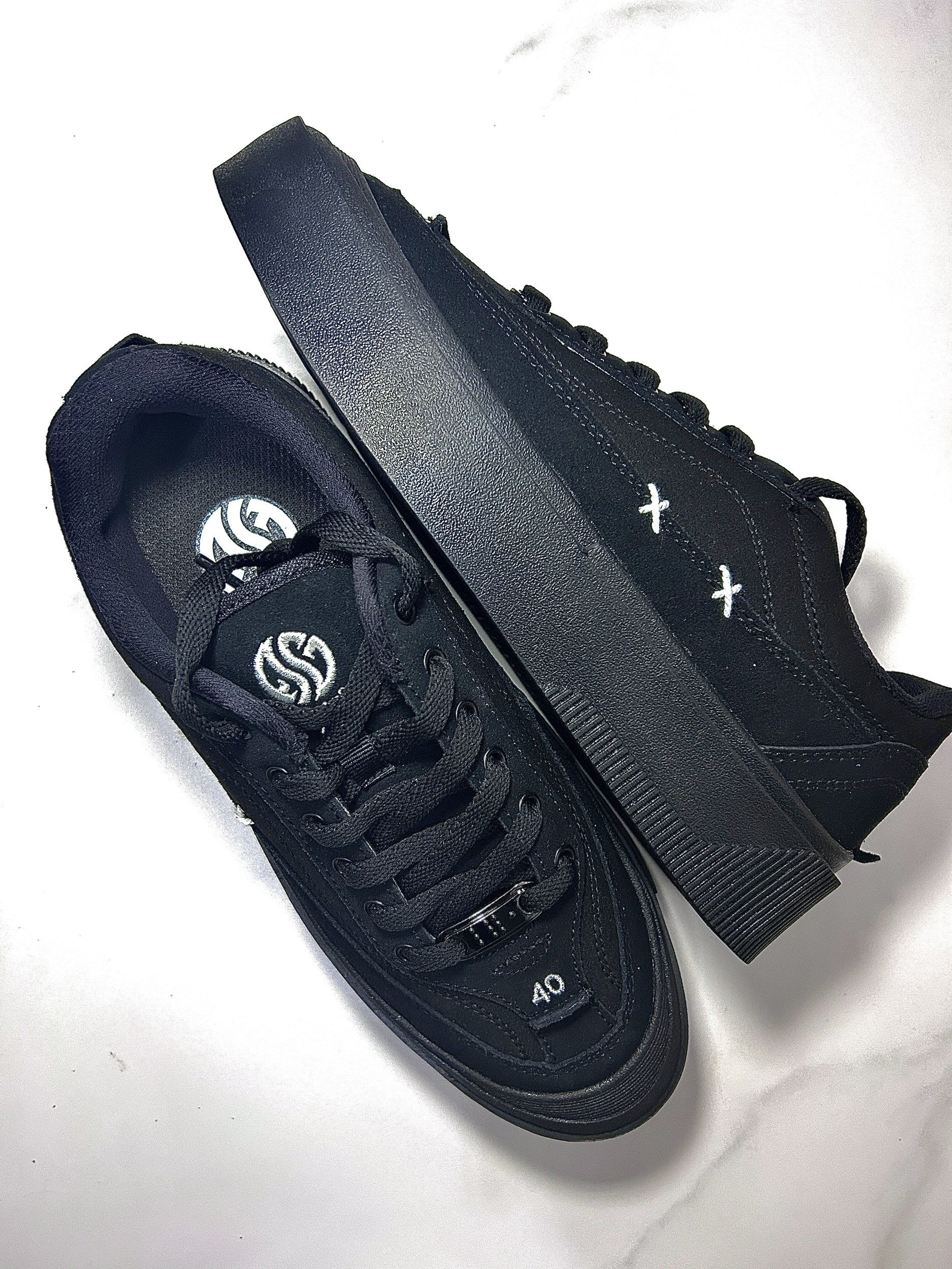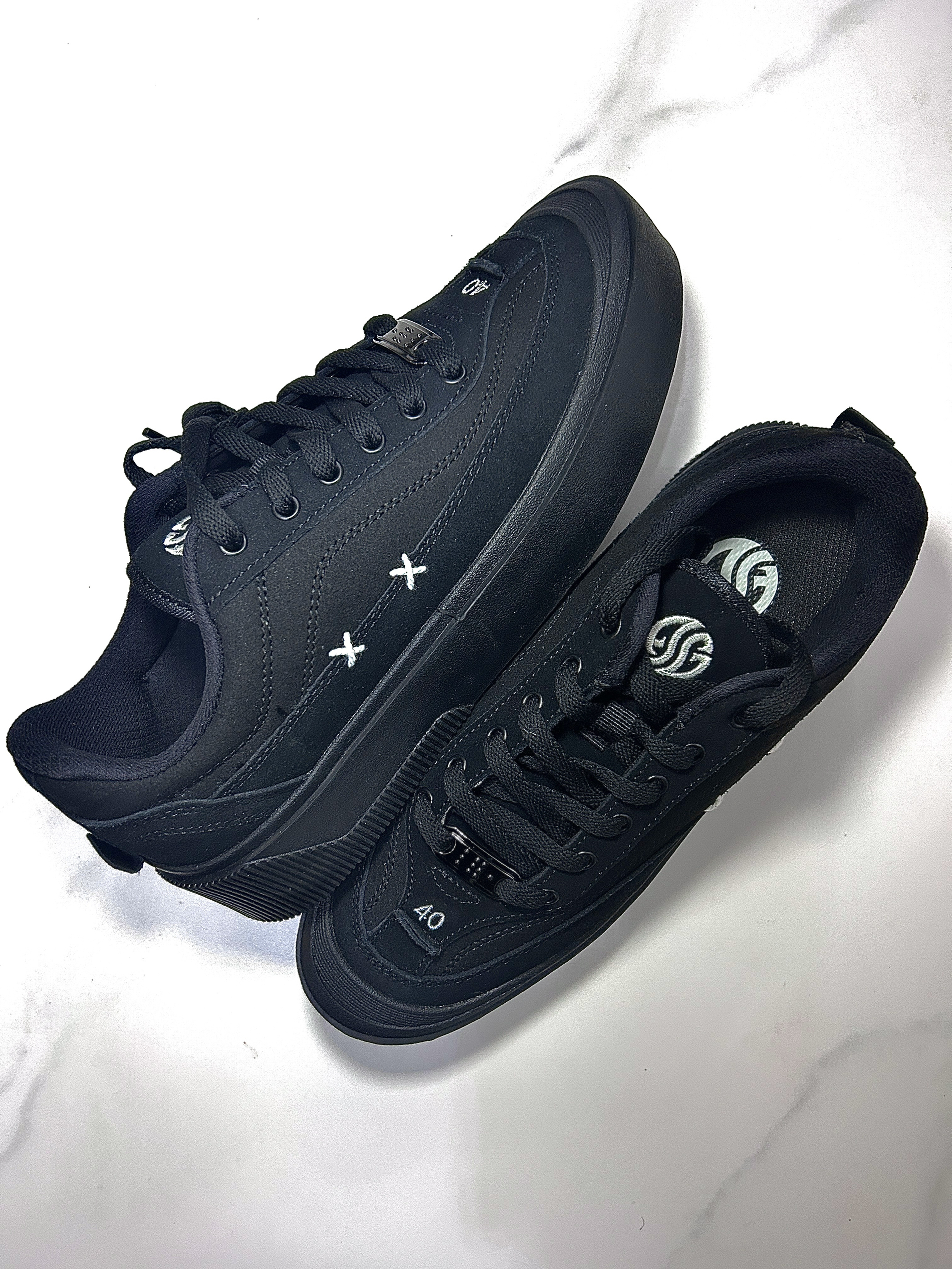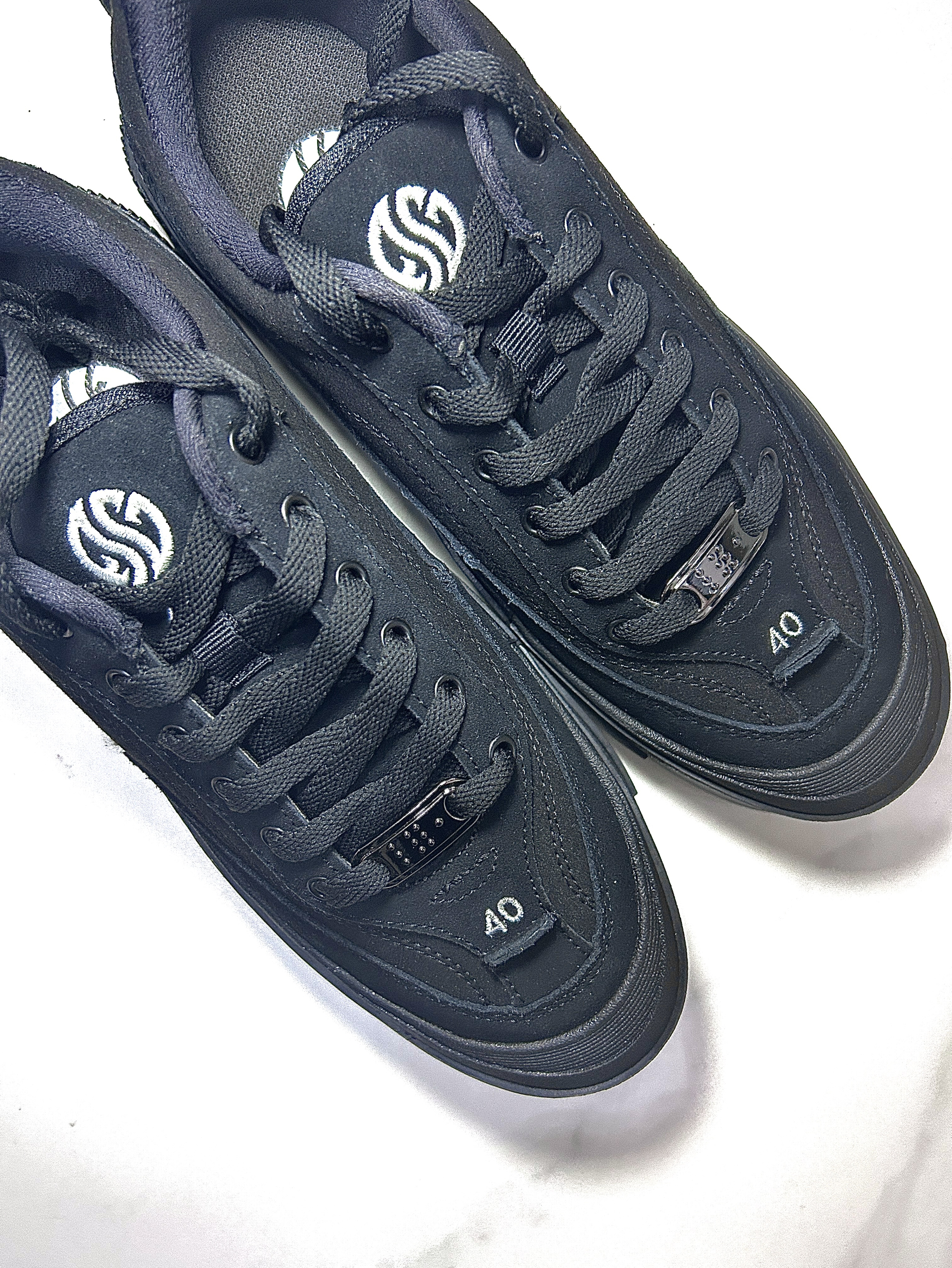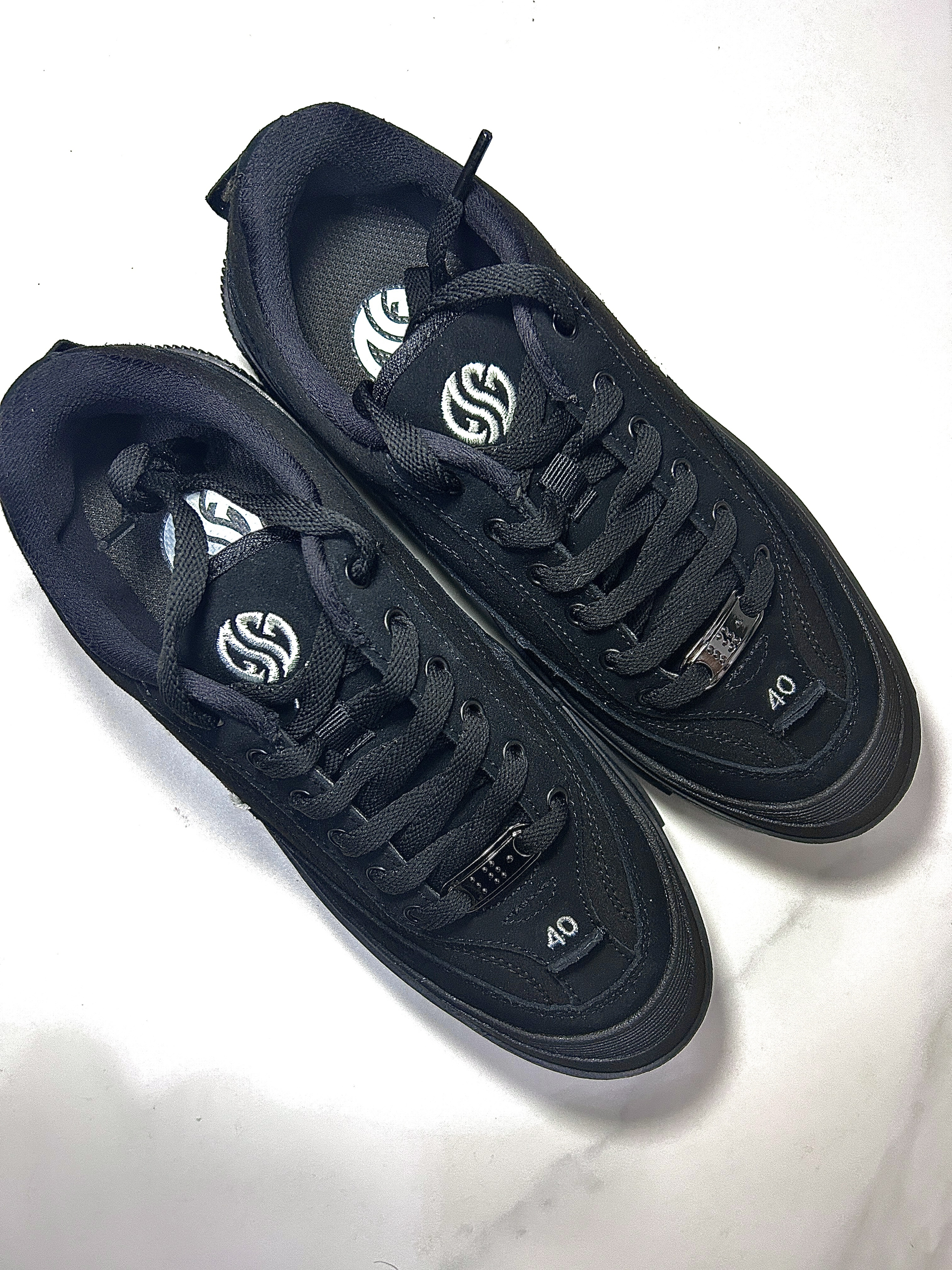 宝子们,随手入的板鞋,这度子现在做板鞋这么🉑️🉐️吗?这纯黑设计真就☝️干净又配搭,鞋面上带鞋子尺码小设计深得我心,鞋底厚实,隐秘又自然的增高,小心机还是🉐️到满足!关键2开这的🤤🤤