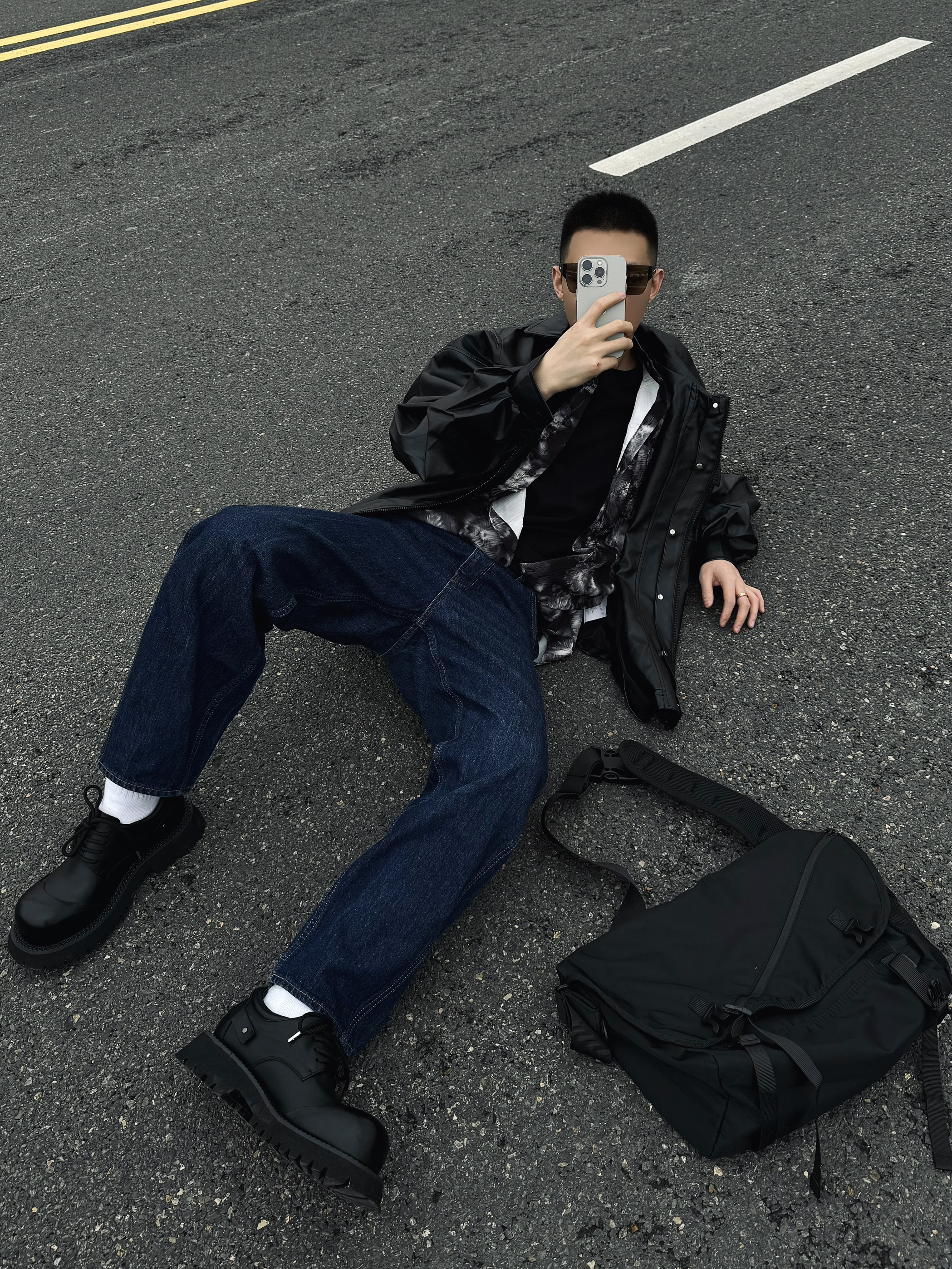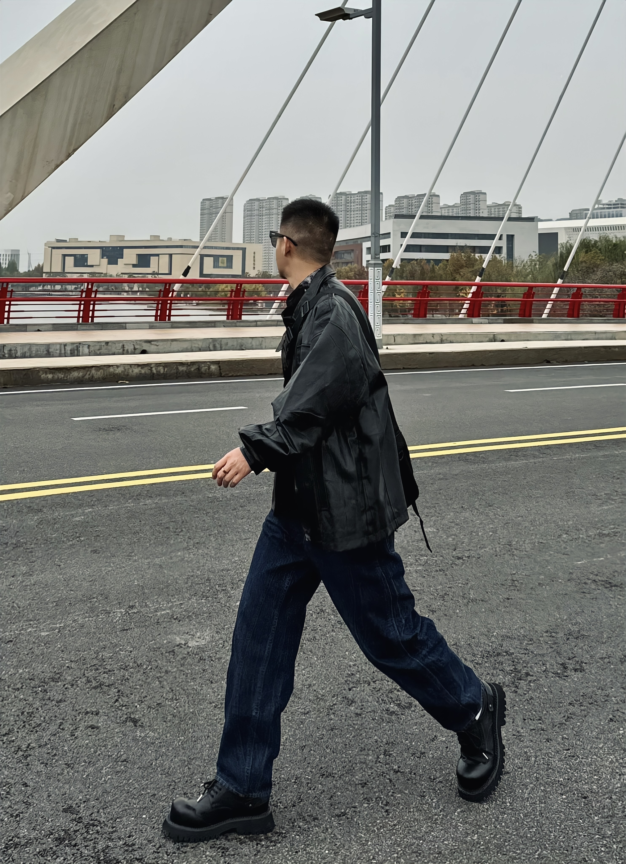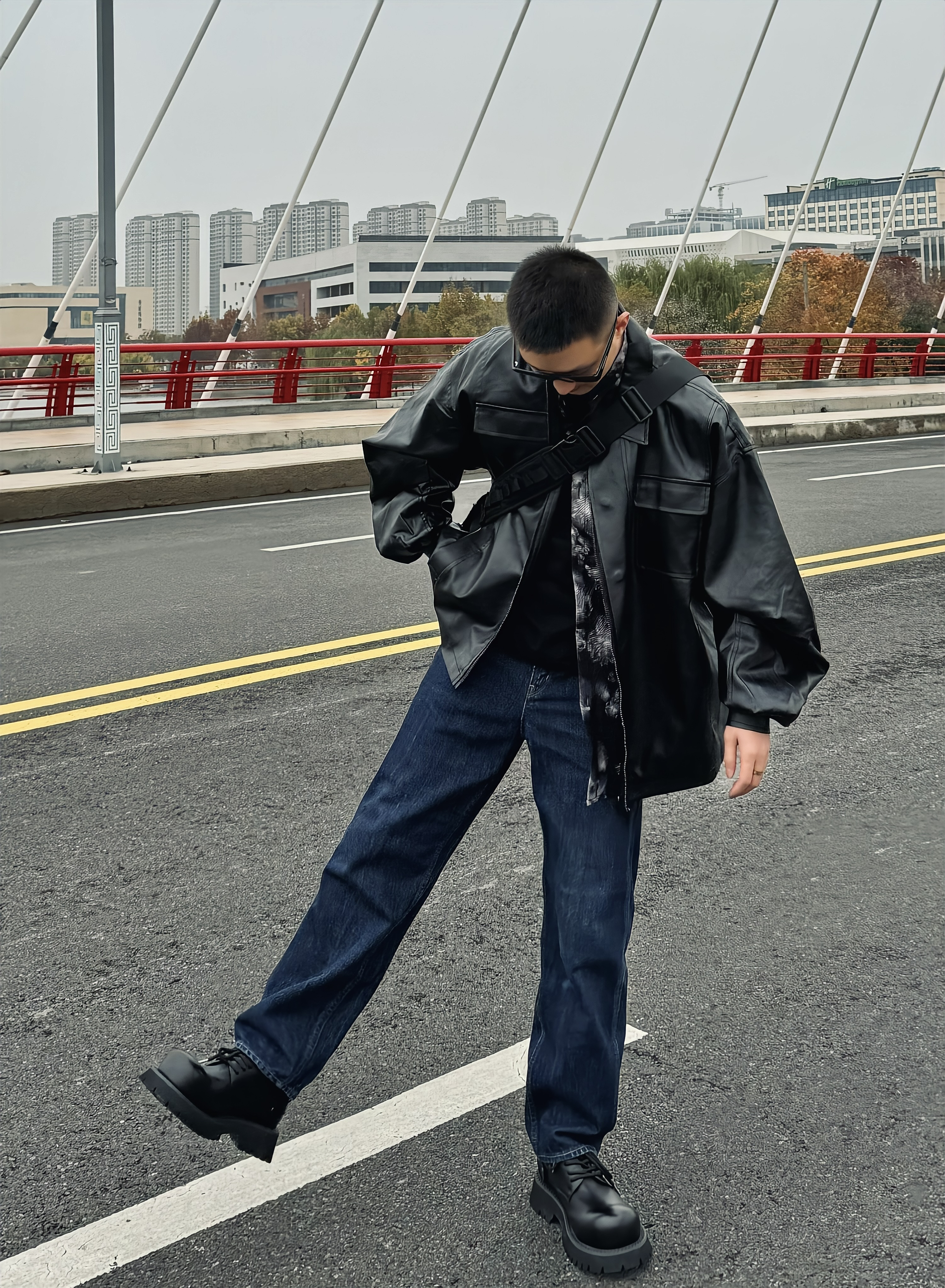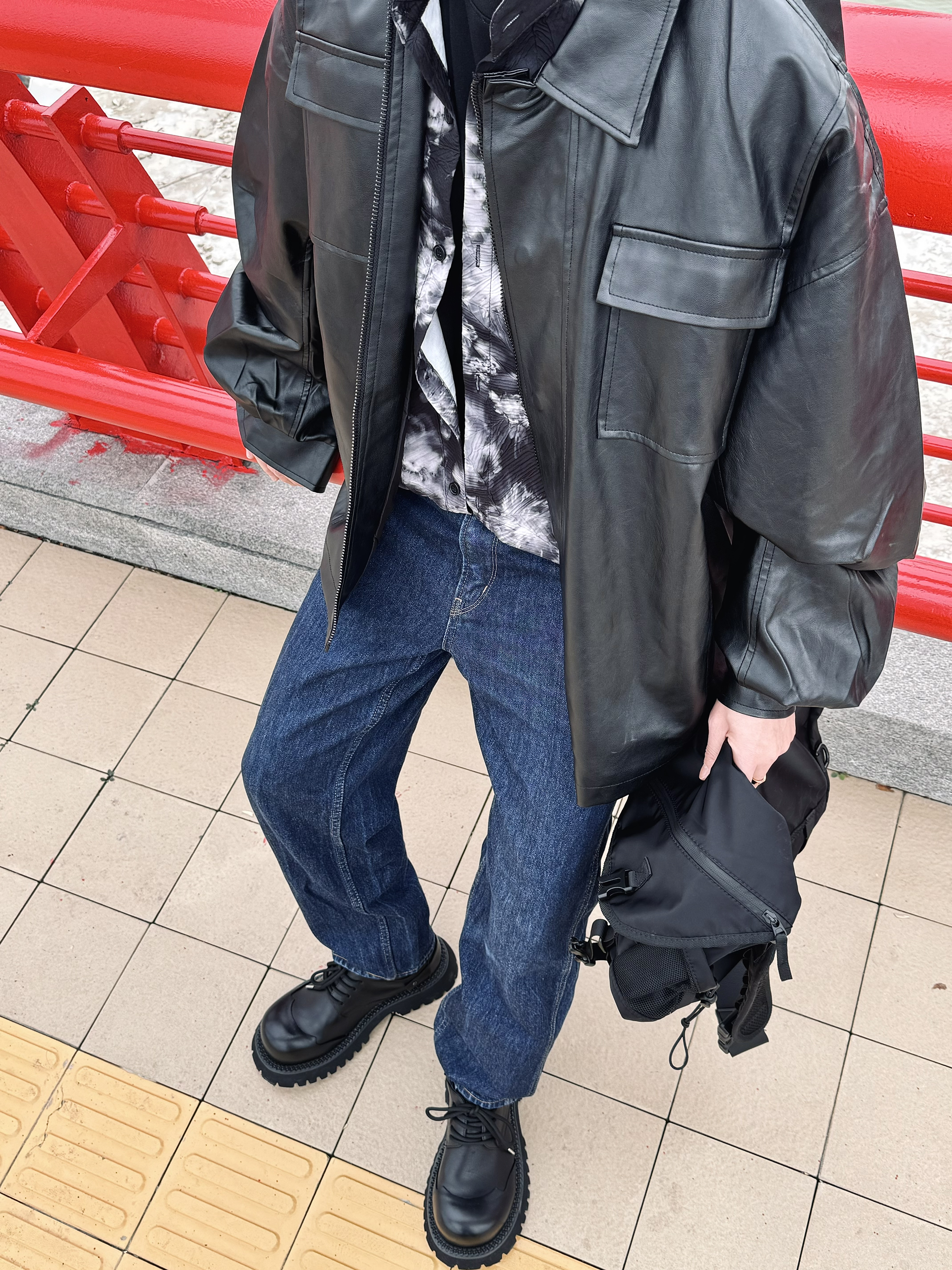 今天就是耍耍帅 宽松的皮衣 垂感好穿 松弛感一下子就上来了 直筒牛仔裤 立体设计 显高显瘦 帅气十足~ 再搭配一双德比鞋 脚感柔软舒适 鞋底耐磨防滑 小厚底的设计 增高效果也很在线哦 斜挎我很爱的斜挎包 帅气出门吧!