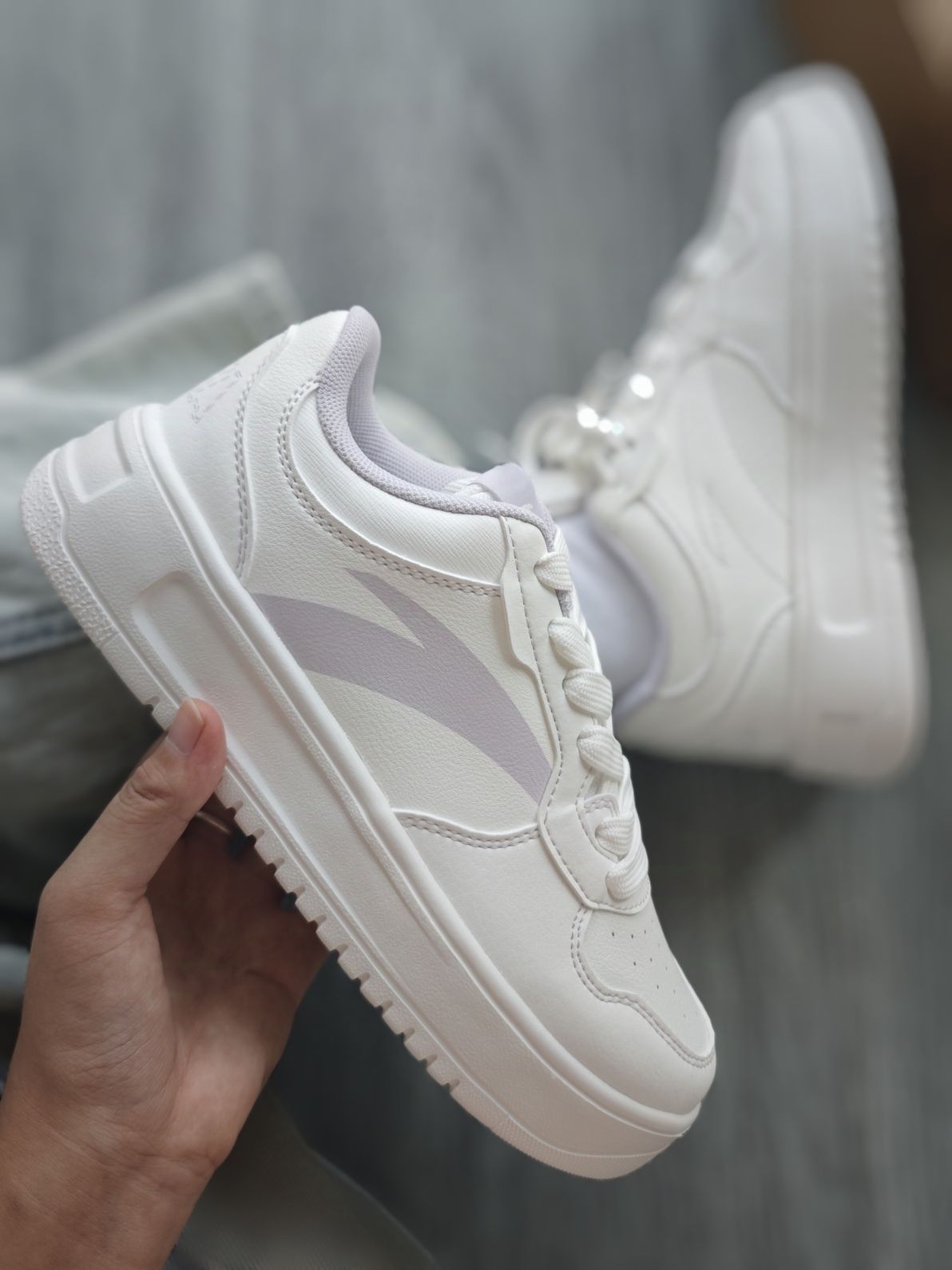 这双安踏板鞋敲好看 白色搭配上香芋紫 好甜美 好百搭呀 增高3厘米 居然才100多 也太划算了吧