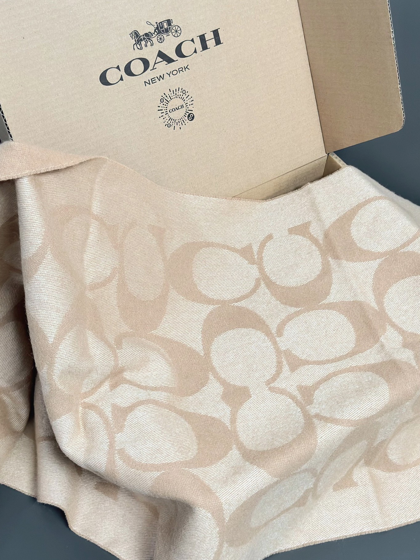 Coach开箱|双面羊绒围巾🧣 去年被种草的围巾今年还是很爱 果断选择拿下喽 迫不及待就试上了 手感真的很舒服 美拉德色系logo好温柔🥹 整体的宽度和长度非常合适 秋冬就看我拿捏氛围感吧hh 图源于@小韦不怕胖吖,侵删