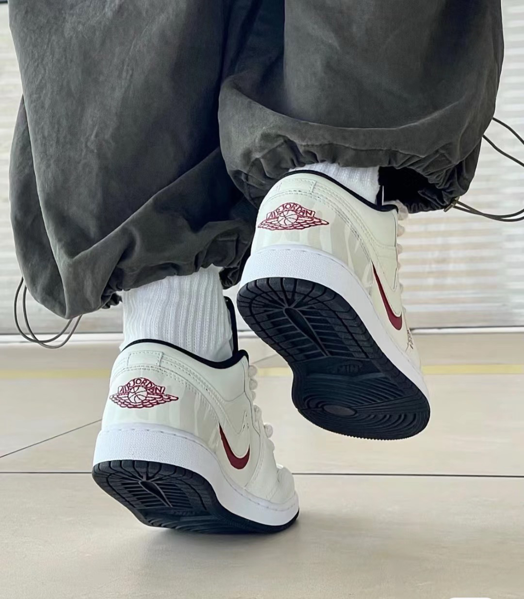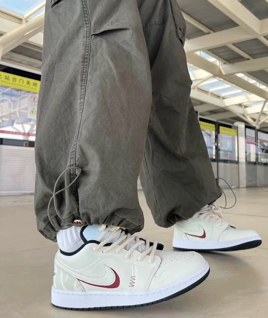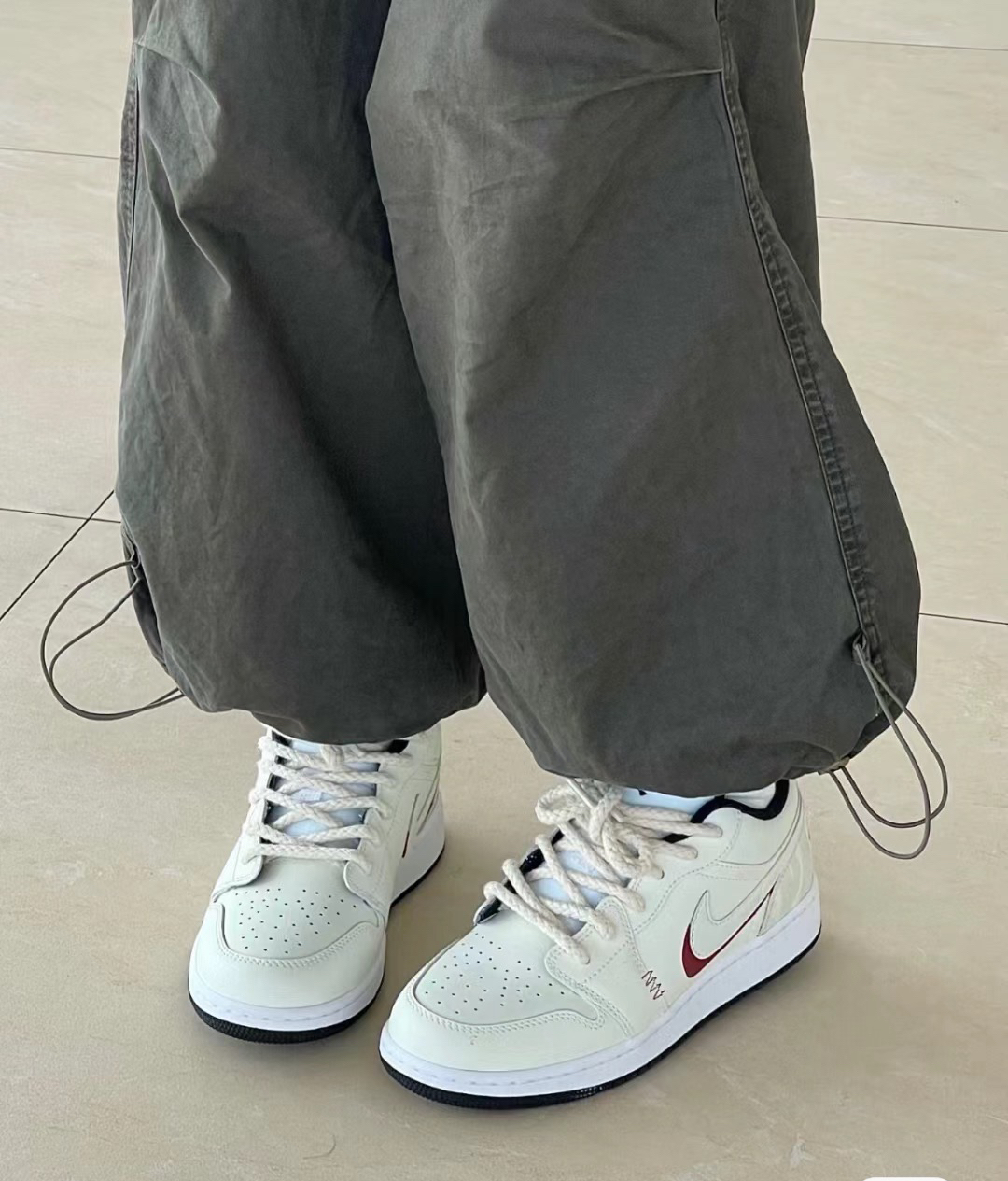 山岚过野一我的AJ美的像香草奶油! 秋天也要穿甜甜的鞋 好喜欢这种奶油系的nike 时髦穿在脚上啦。 swoosh用了一圈红色勾勒 甜甜的少女感有了