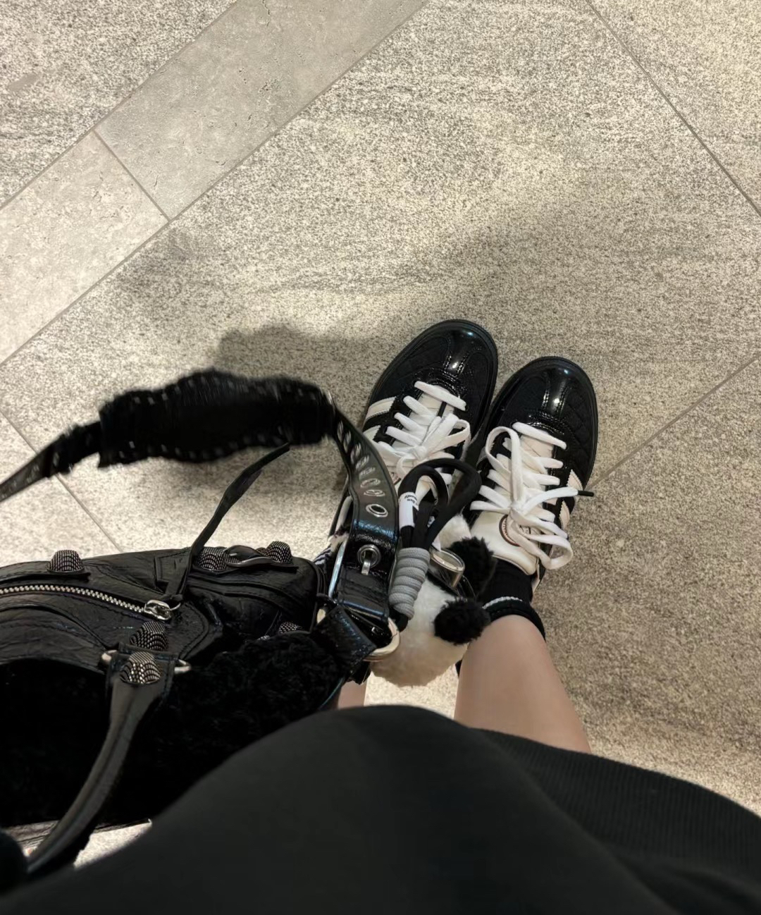 立马入手! 就是说三叶草也小香风上了 据说都在抢! 新款handball spezial鞋面是哑光菱格和漆皮的结合,黑白配色百搭又高级,因为是平底所以很轻便,美中不足就是鞋底的缝合处不是很平,有点硌脚(还是只有我的这样不过颜值高就对了!