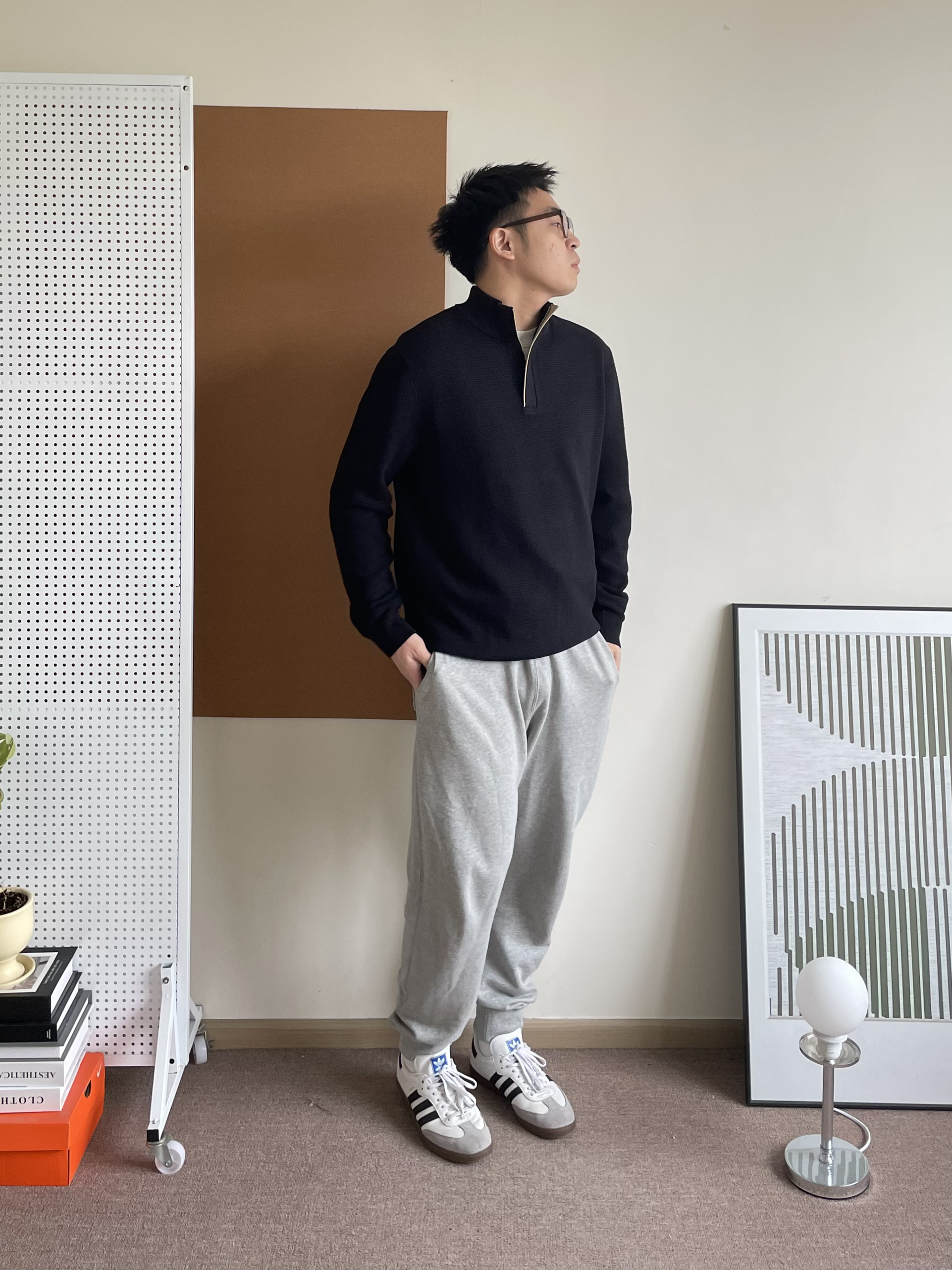 👦170 男生秋冬穿搭指南✨毛衣与小白鞋的时尚邂逅 🎈宝子们,秋冬季节,毛衣可是必备单品。今天就来分享一套以黑色半拉链易打理毛衣为主角的穿搭。😎 🧢这件黑色的半拉链毛衣,不仅时尚感十足,还非常容易打理。半拉链的设计增加了一些个性元素,让你在人群中脱颖而出。💪 👖下装搭配一条宽松的灰色束脚裤。灰色是一种非常高级的颜色,与黑色毛衣搭配起来十分和谐。束脚的设计既时尚又保暖,还能修饰腿型。💃 👟最...