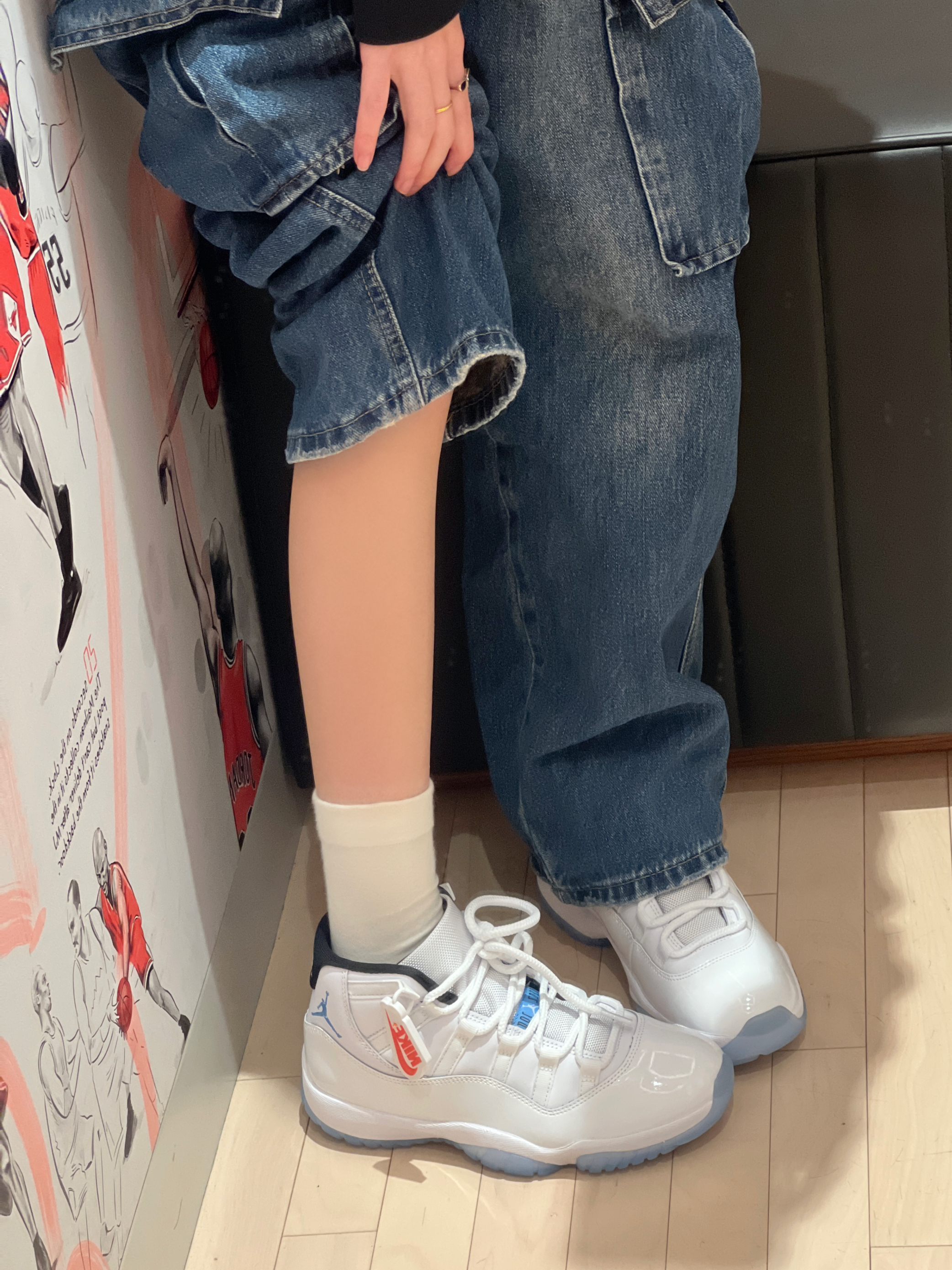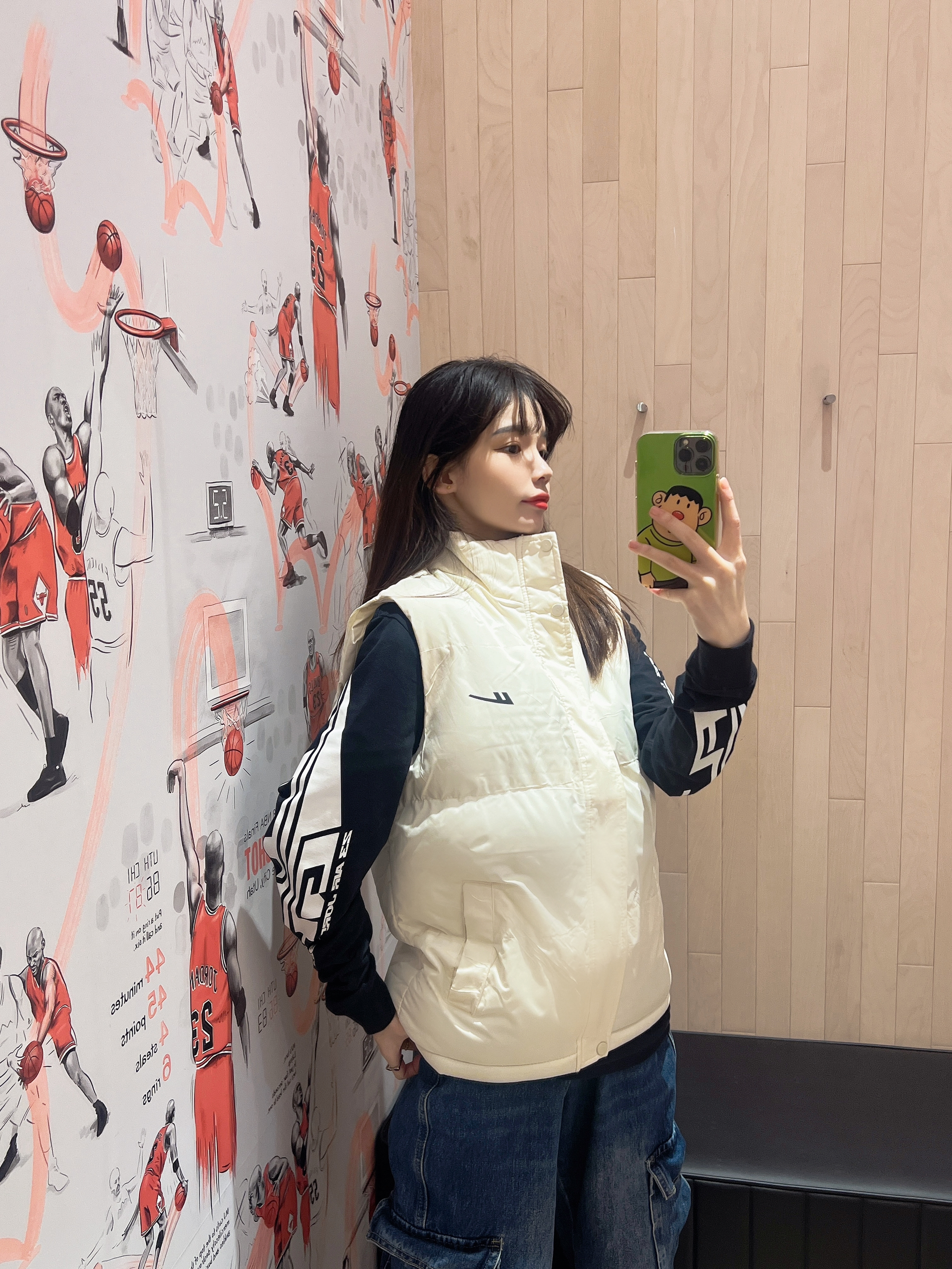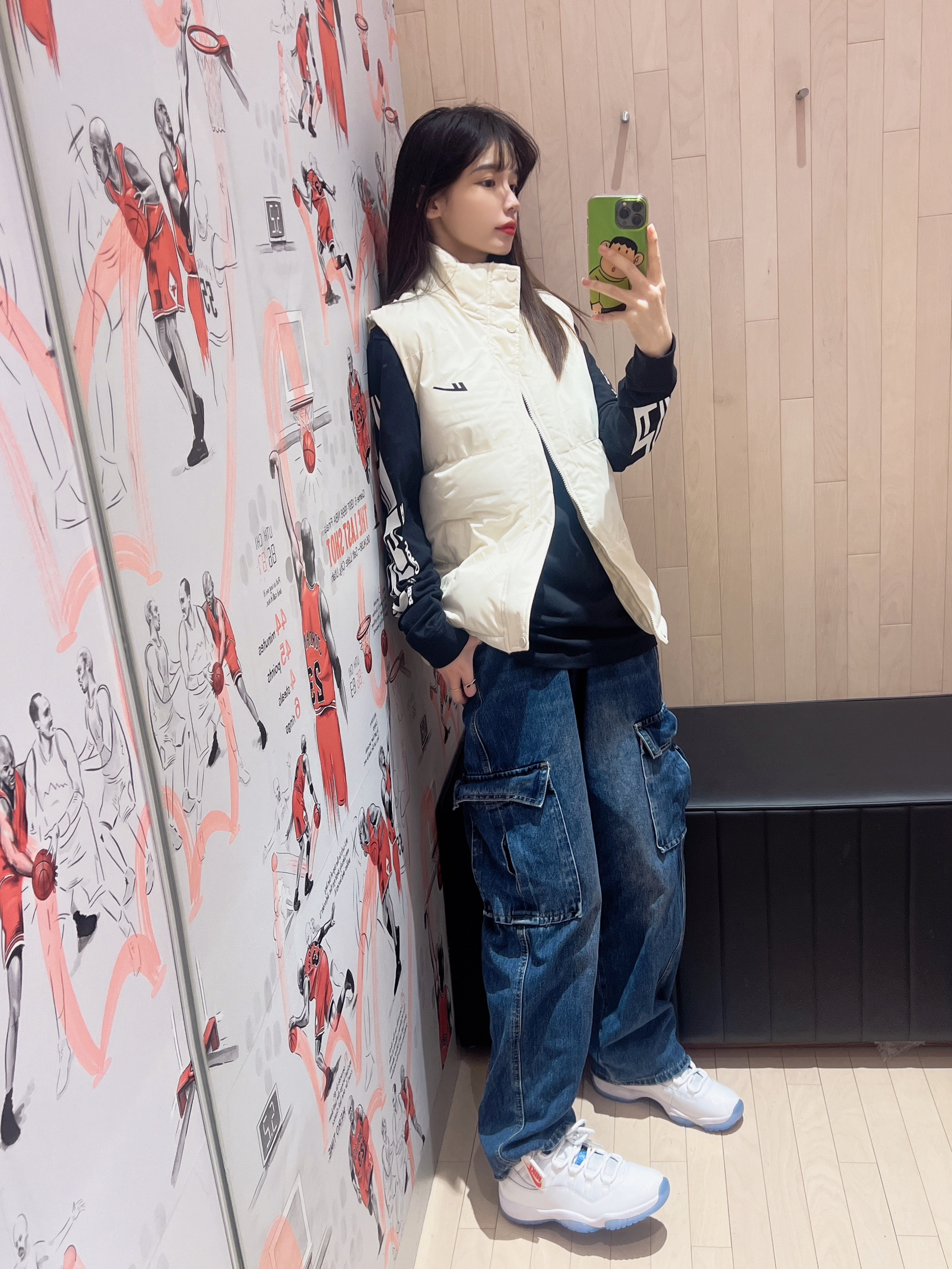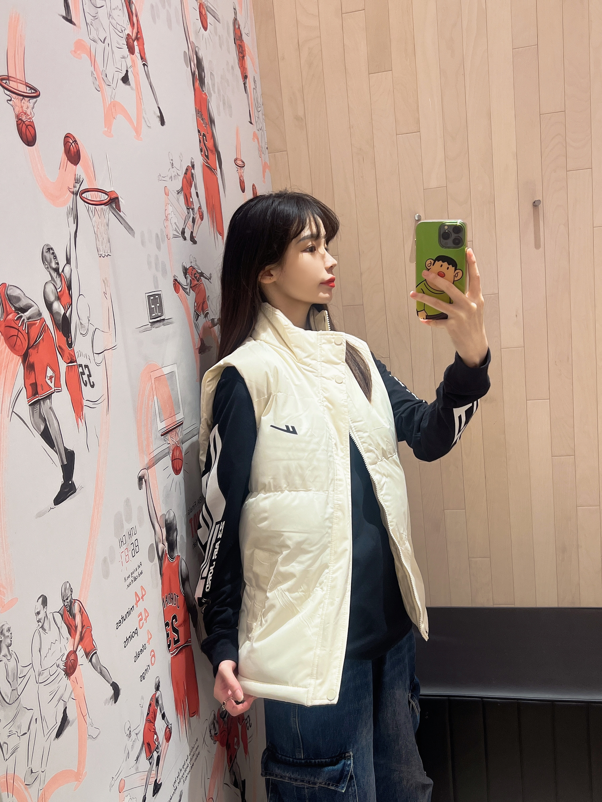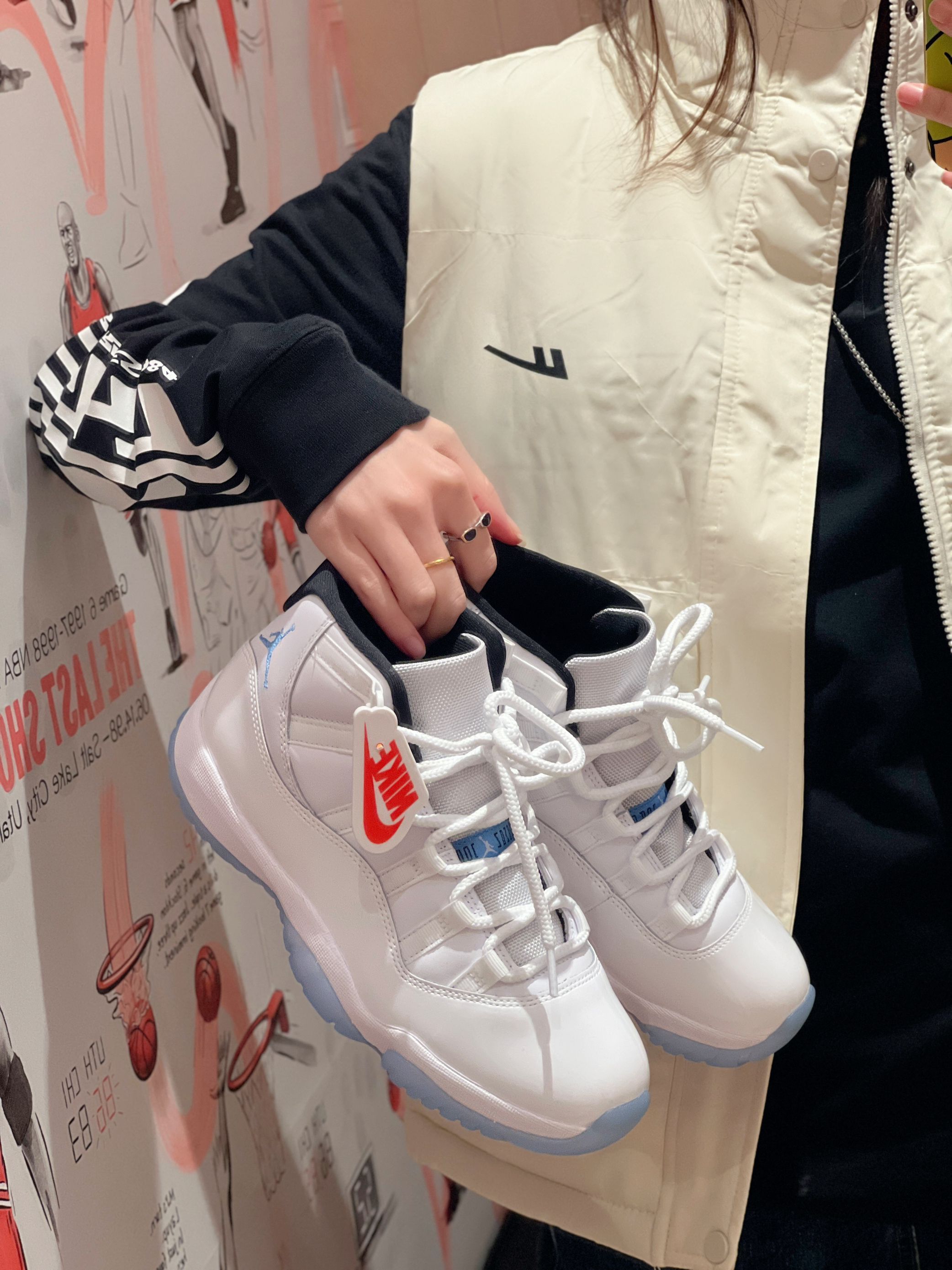 今日穿搭白色马甲➕👖牛仔裤 马甲果然是秋冬必备款啊 穿起来不会太臃肿 轻便舒适 简单的logo 随意搭配呢 搭配牛仔裤或休闲裤都很👌呢! 👩166/43kg M码 👟是Aj11传奇蓝配色 经典百搭款👍
