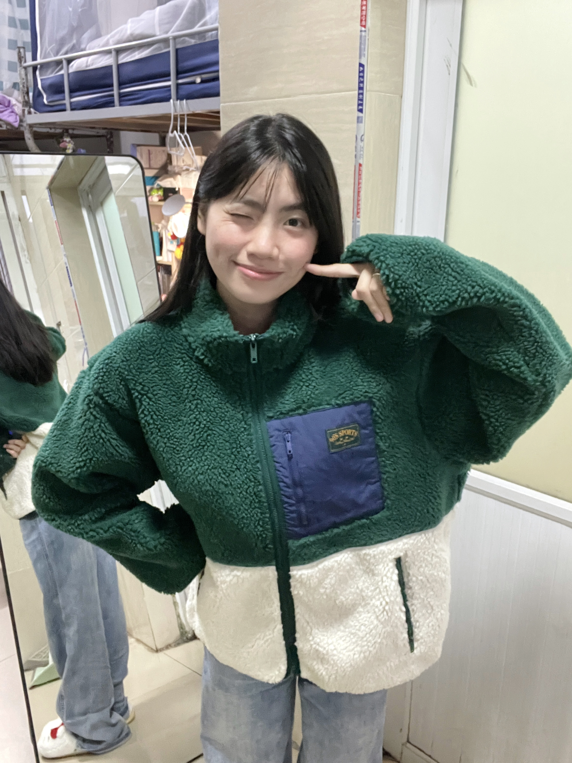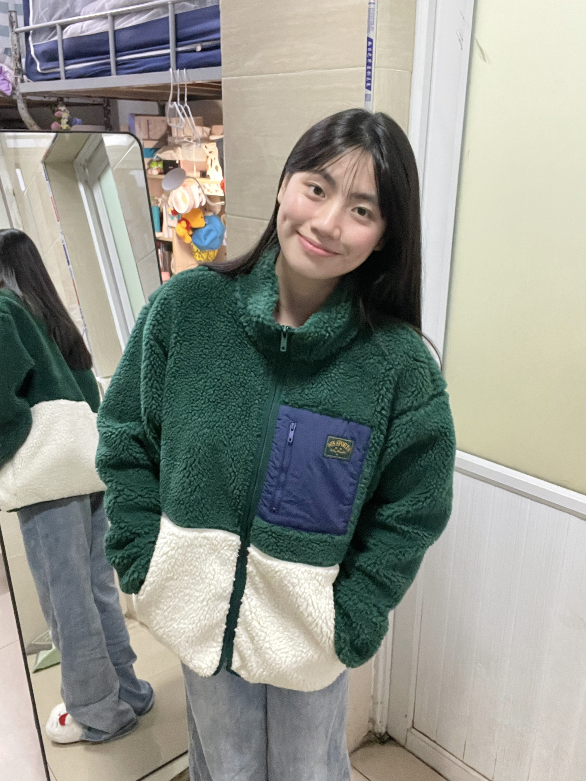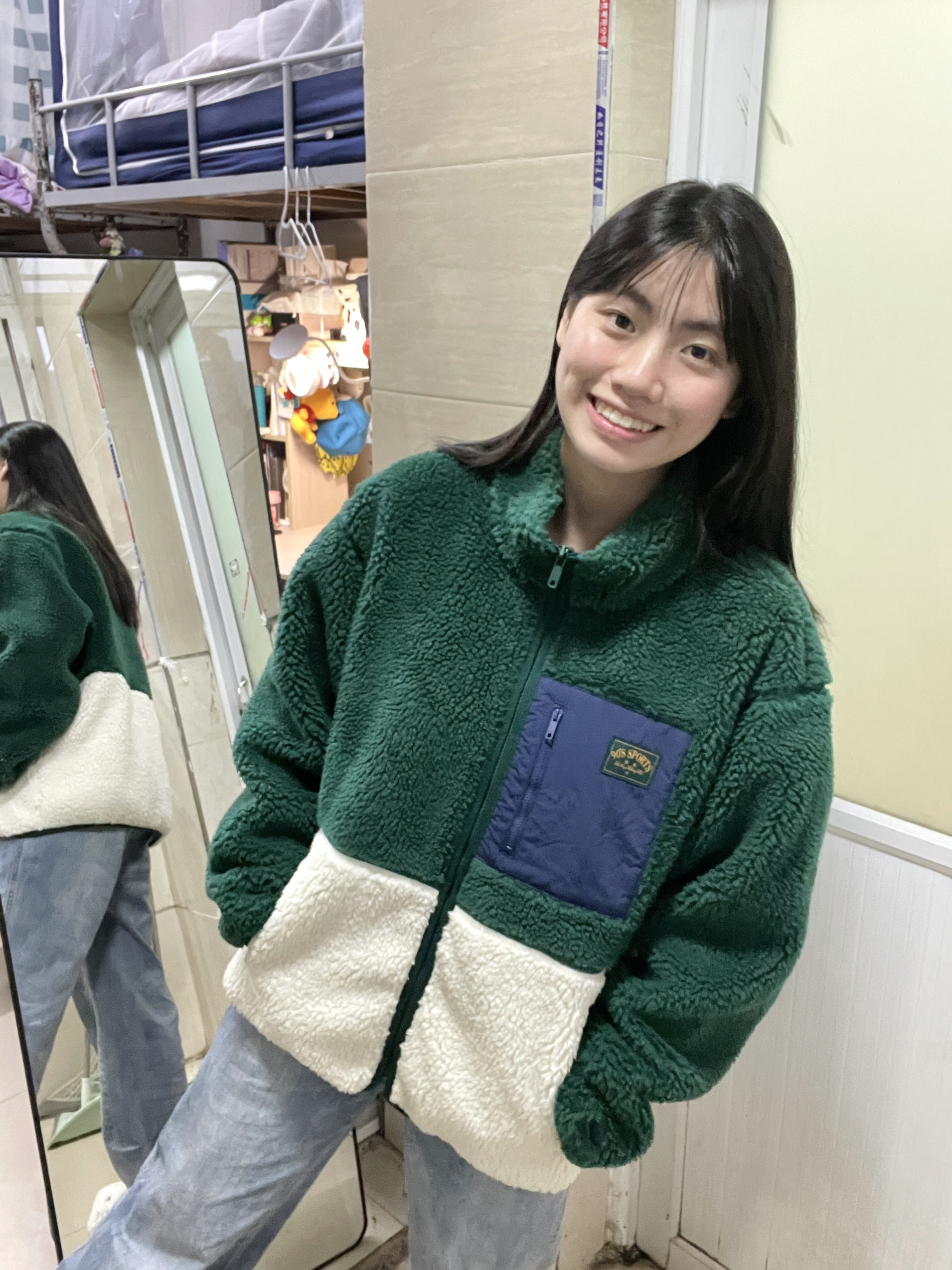 166 102穿的是M码 又到了穿摇粒绒外套的季节 绿色和白色的一个拼色 我觉得绿色真的很显白 侧面也很显瘦 喜欢的宝宝可以参考一下哦