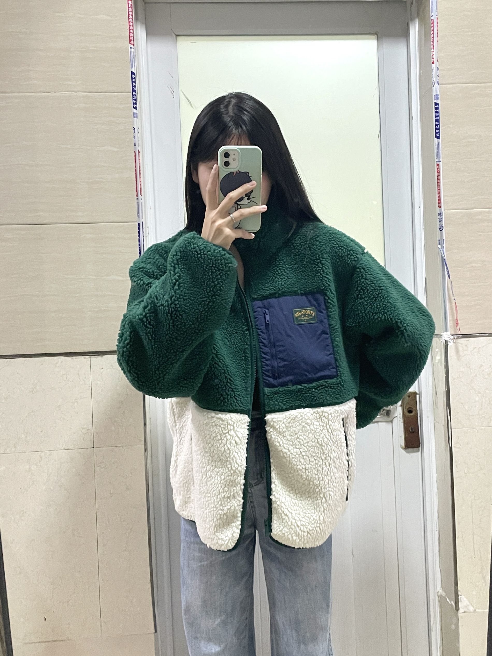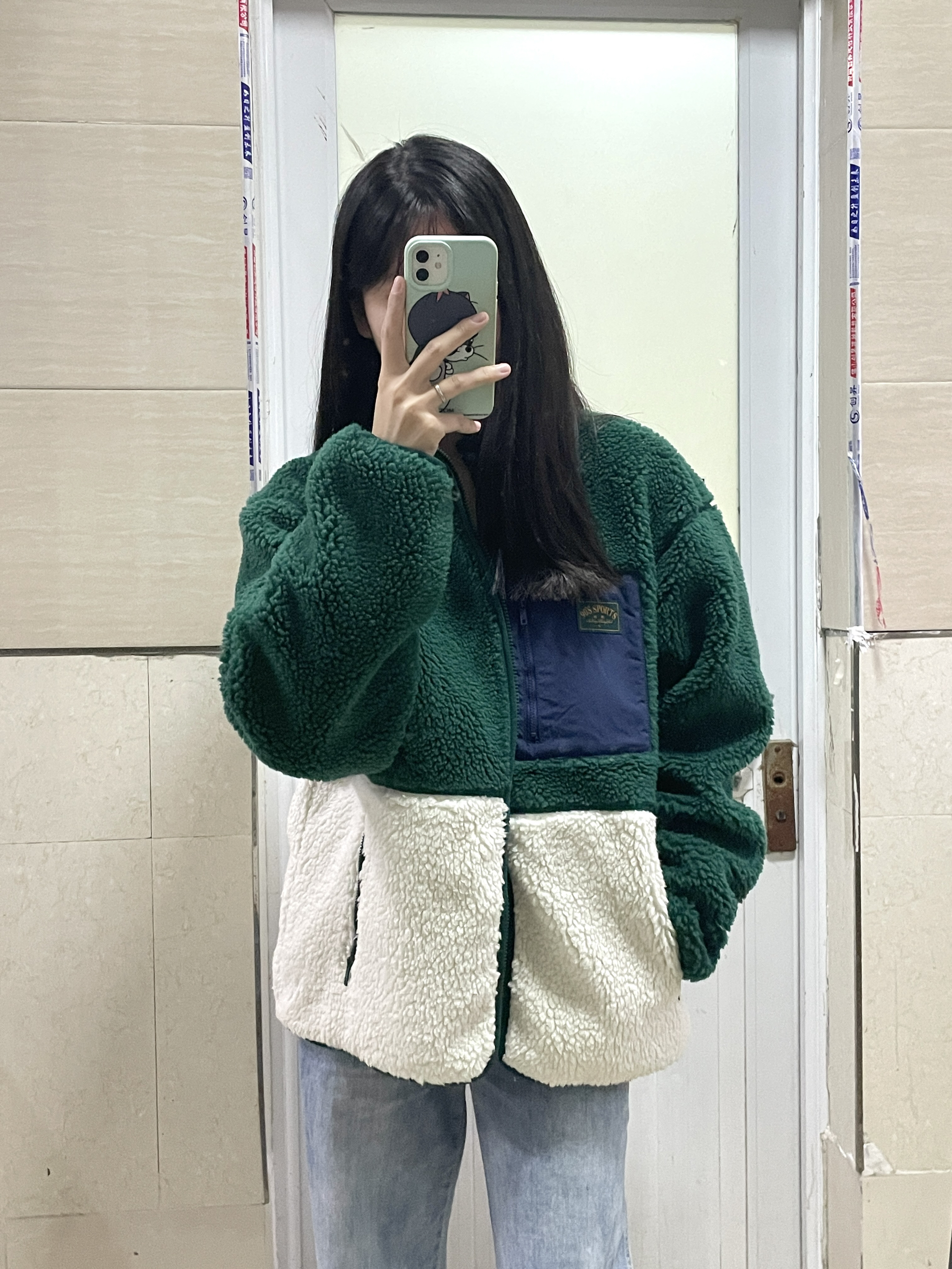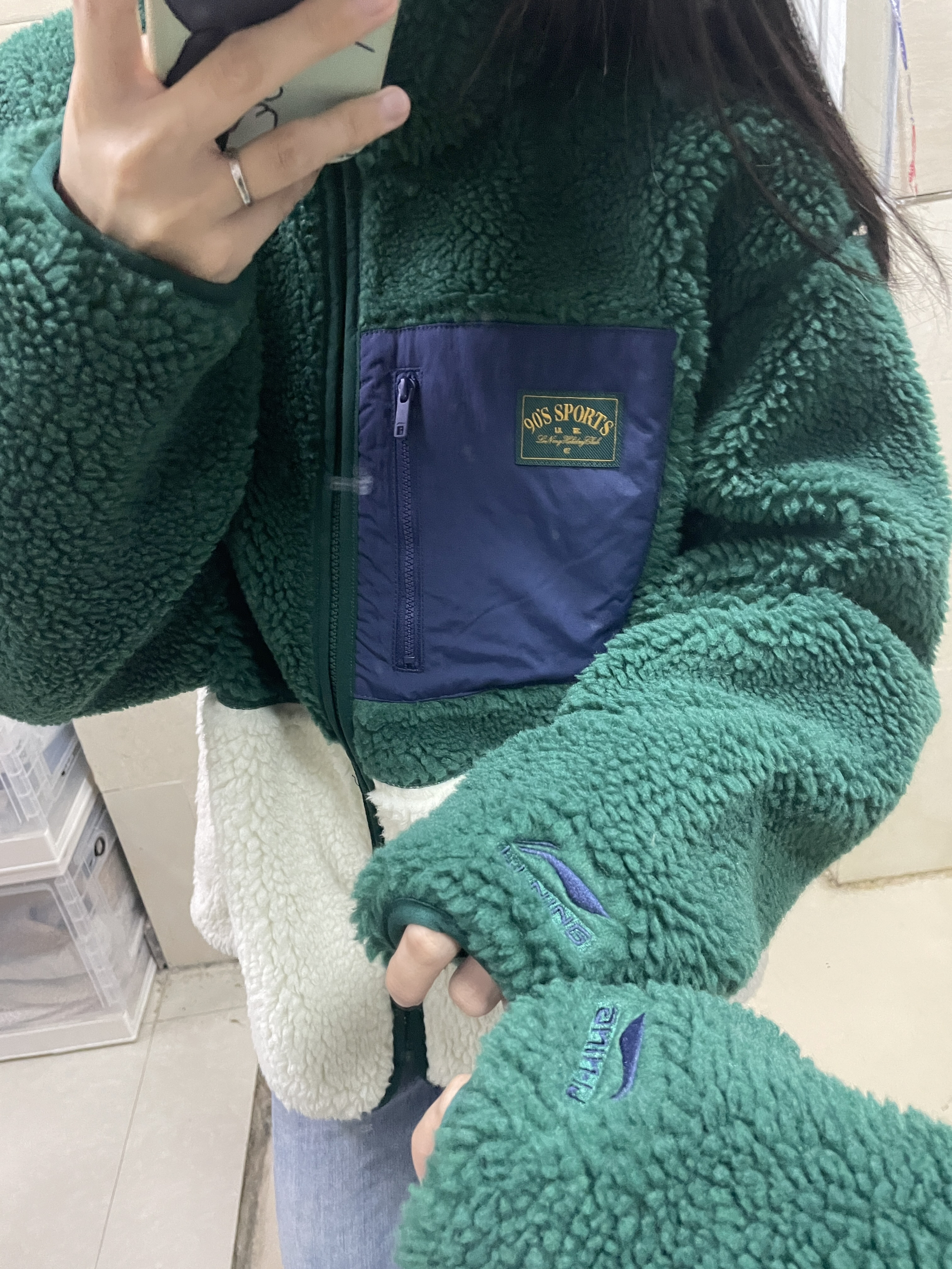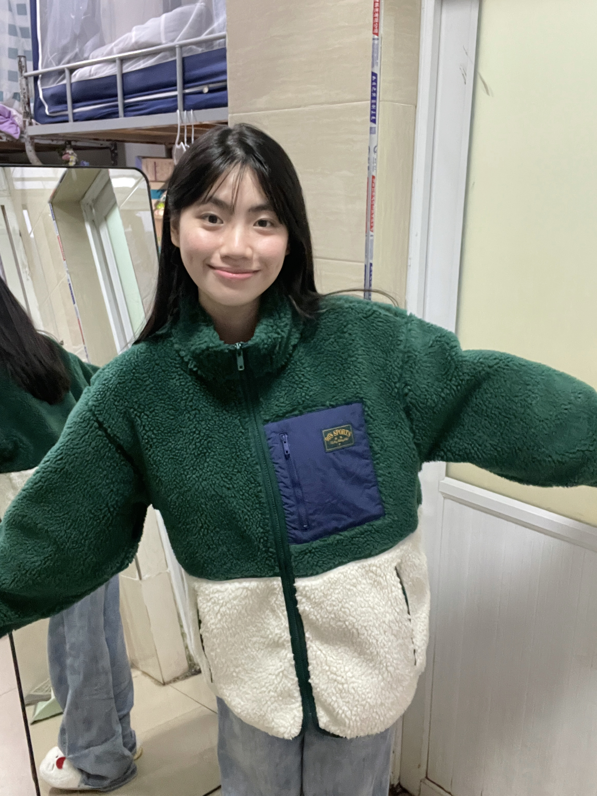 166 102穿的是M码 又到了穿摇粒绒外套的季节 绿色和白色的一个拼色 我觉得绿色真的很显白 侧面也很显瘦 喜欢的宝宝可以参考一下哦