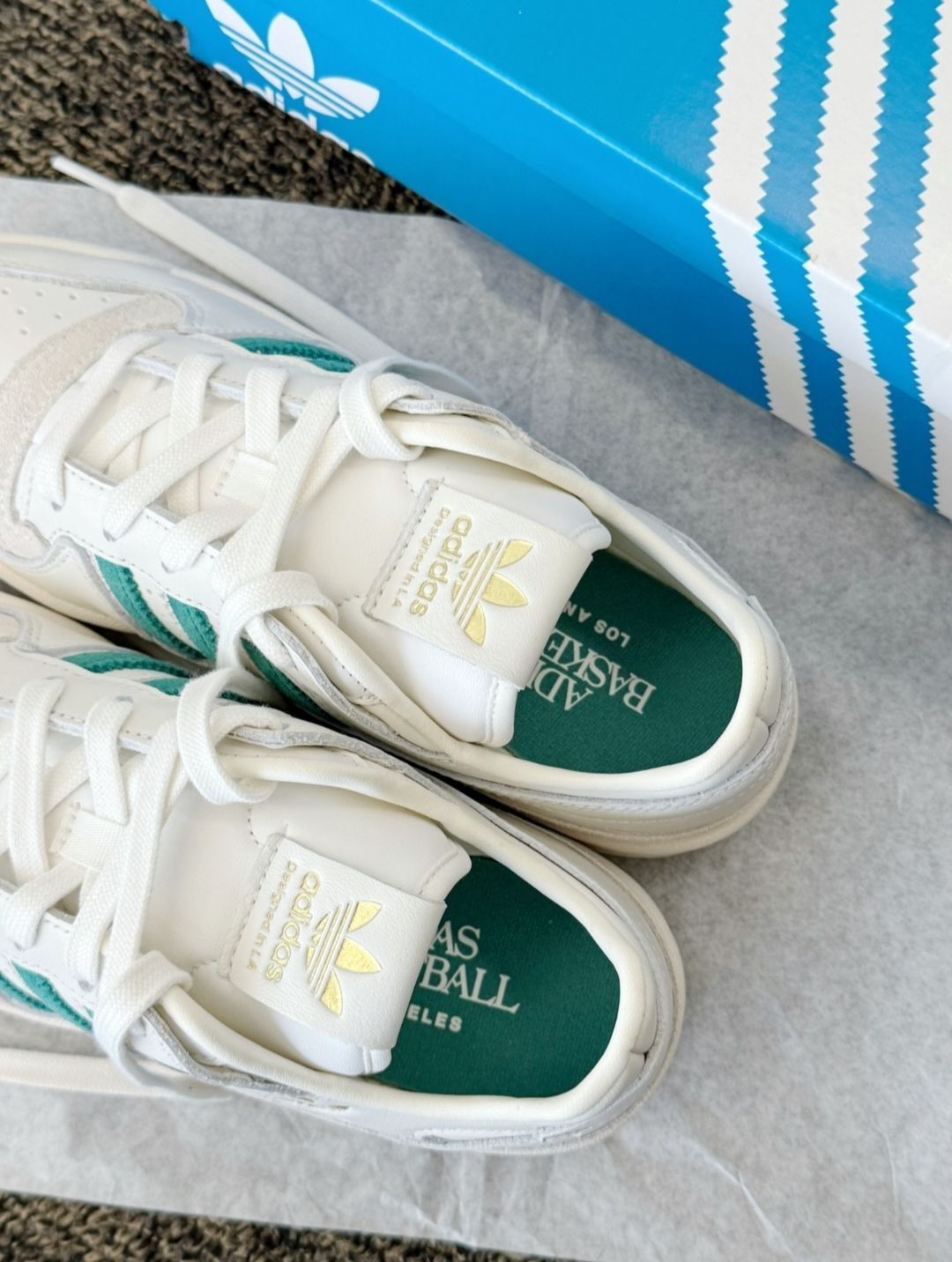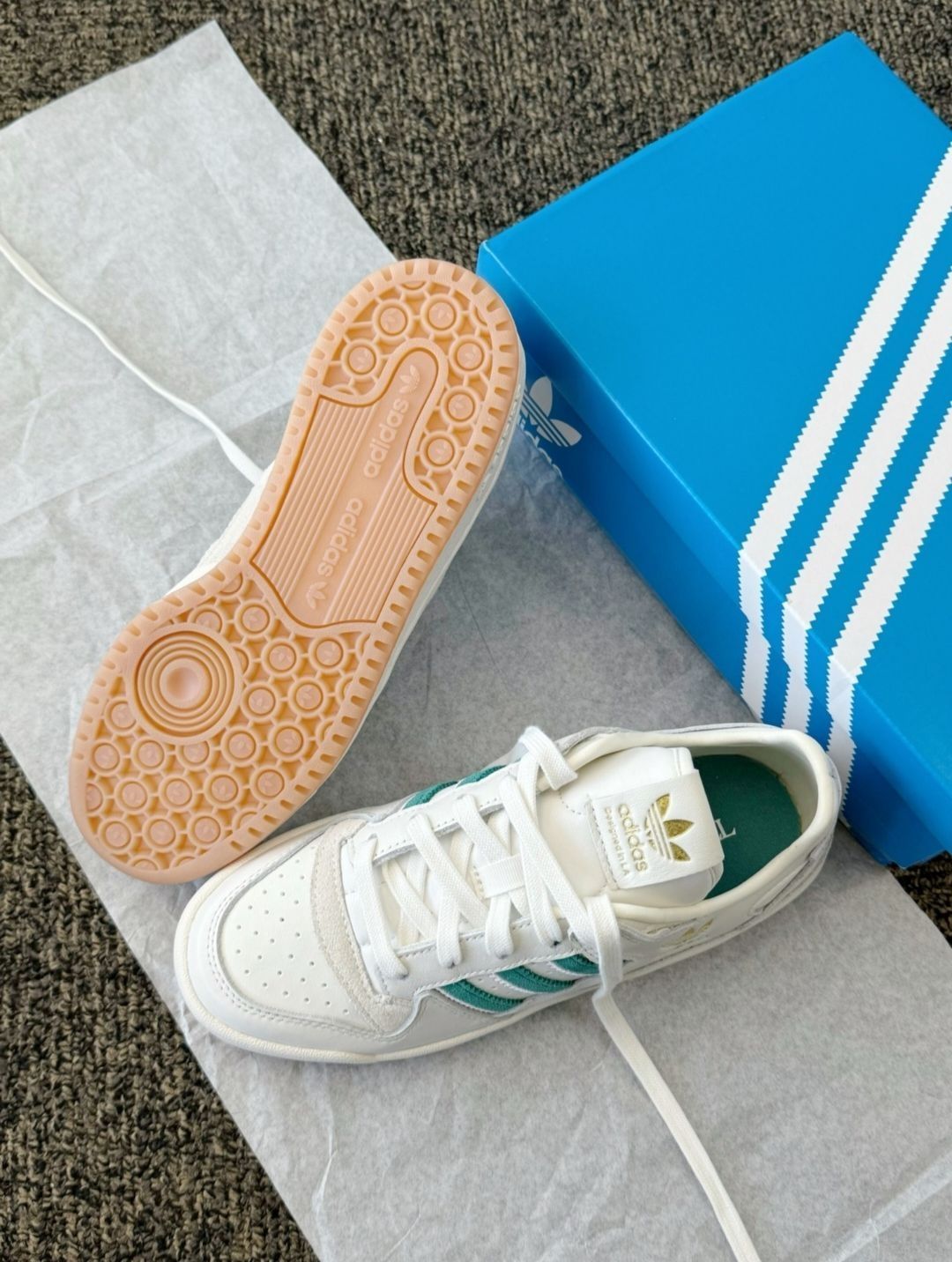 简直谁穿谁好看啊!!🙈 鞋面基本上是皮的超好打理!! 绿色点缀好清新巨巨好看!!😍 阿迪就是校园感的神😭