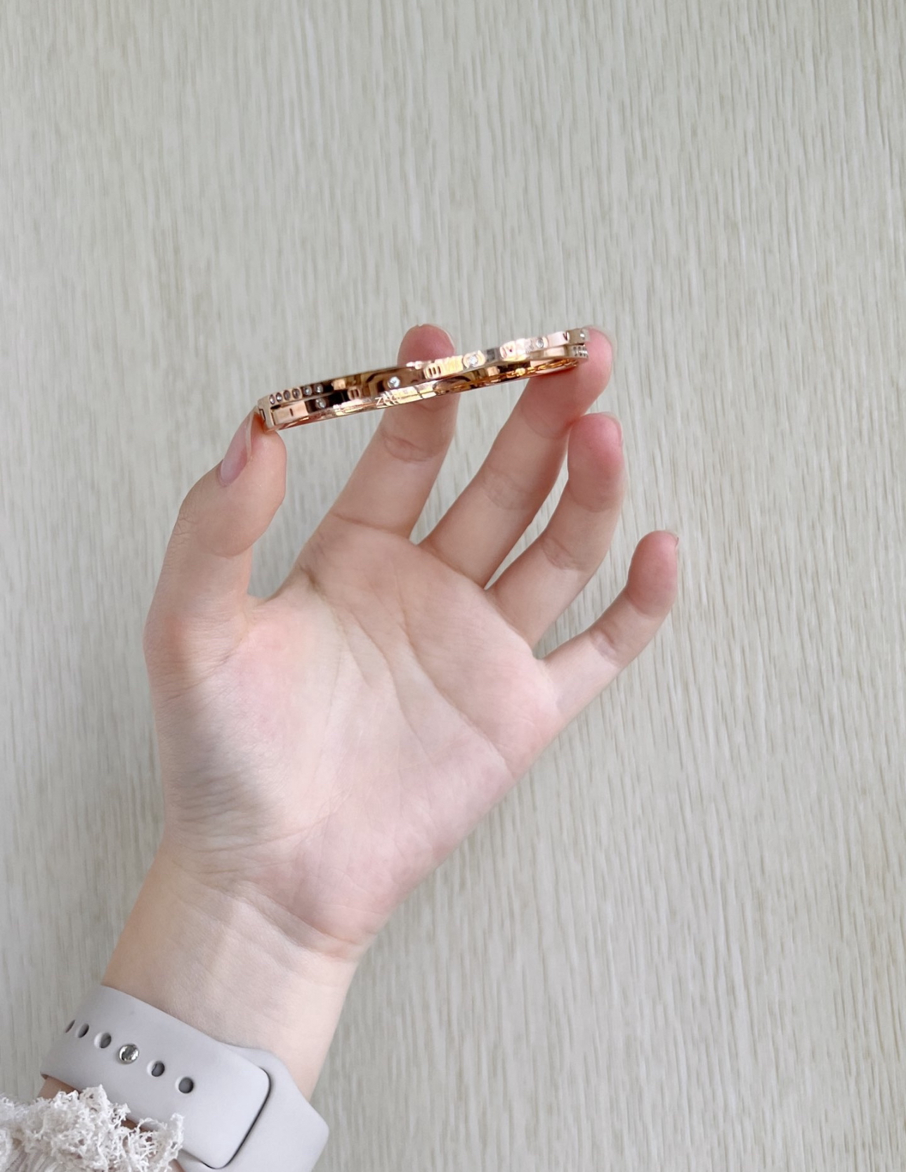 当水逆的一段时间中,都喜欢把一切关于“幸运”的物件戴身上,看到这个幸运罗马数字手镯,马上入手!! 在此之前从来没戴过镯子,没想到这么惊喜,戴了非常舒服,重点是物美价廉!!碎石和数字设计得很巧妙,看起来高档又低调,今天出门穿了个吊带,只配手镯感觉也很不错,非常nice的聚光焦点! 真的太好看了,日常穿着也很好搭,深得我心下次再送个给朋友~