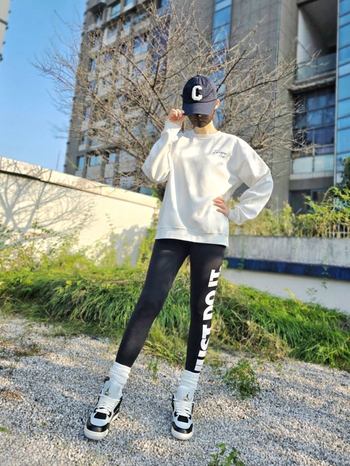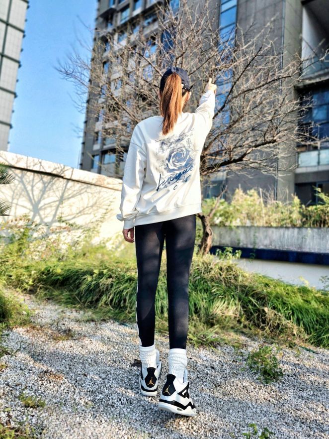 最简单的穿搭也可以很潮酷很帅哦~! 卫衣+紧身裤+复古球鞋,轻松打造时尚大长腿! 球鞋是AJ4的伯爵,女生款,很不错,现在700多就能拿下,不要错过哦!
