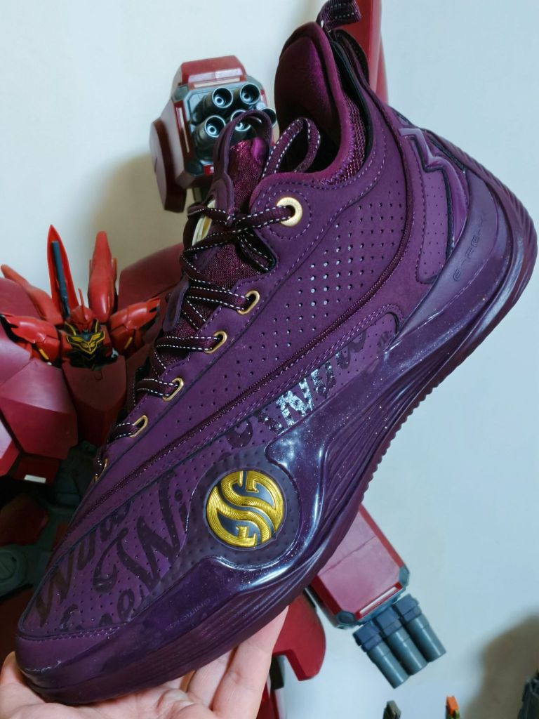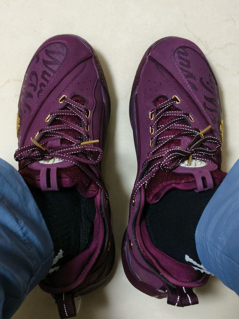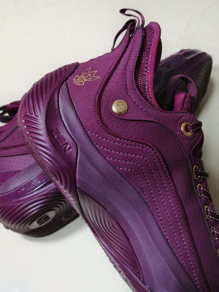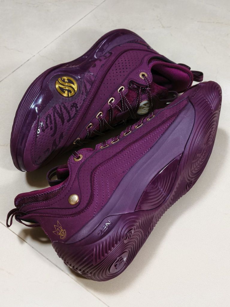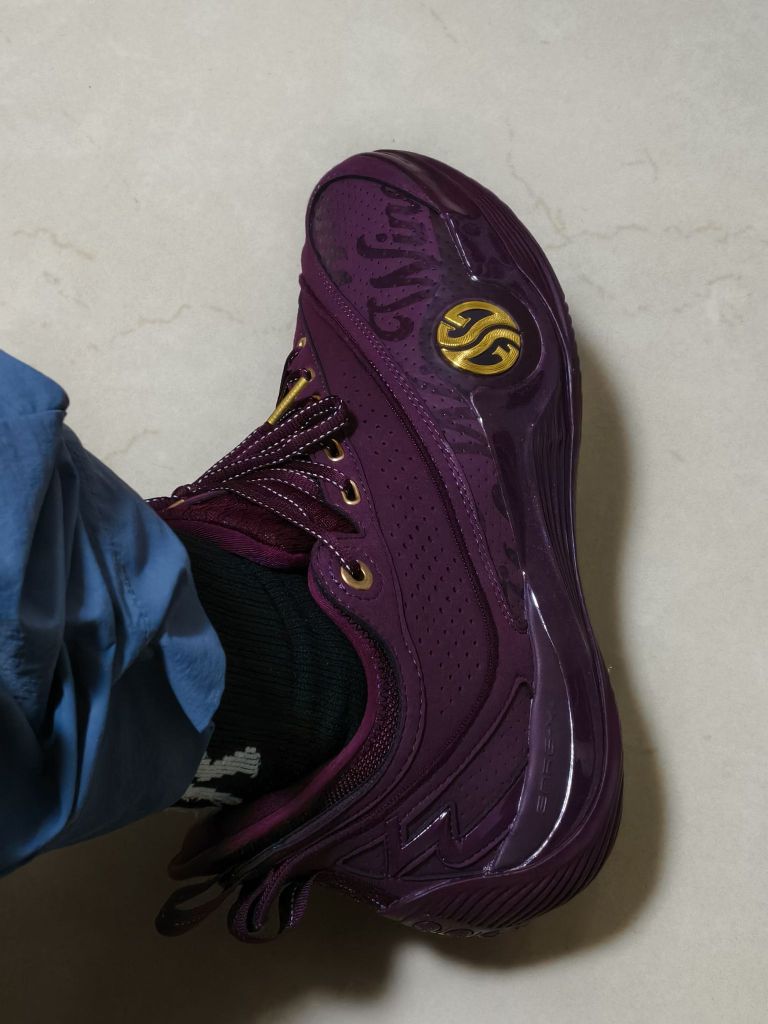 谁能懂我对这红酒配色的执念 早在戈登夺冠赛季就出过一款红酒配色的AG3, 非常吸引我的一款配色 如今在禅6prm也等来了这款配色。prm的布料更 厚实,适合秋冬穿着。外观也相当出色,太极和 枯山水的元素结合的很棒,质感相当不错 上脚第一感觉包裹很到位,异形的绑带系统让鞋 带锁的更紧实,高宽脚需要尝试再选择;填充很 足,后跟高,可以很好的保护脚踝。脚感前掌回 弹优秀,后跟缓震到位,大体重能更好驾驭