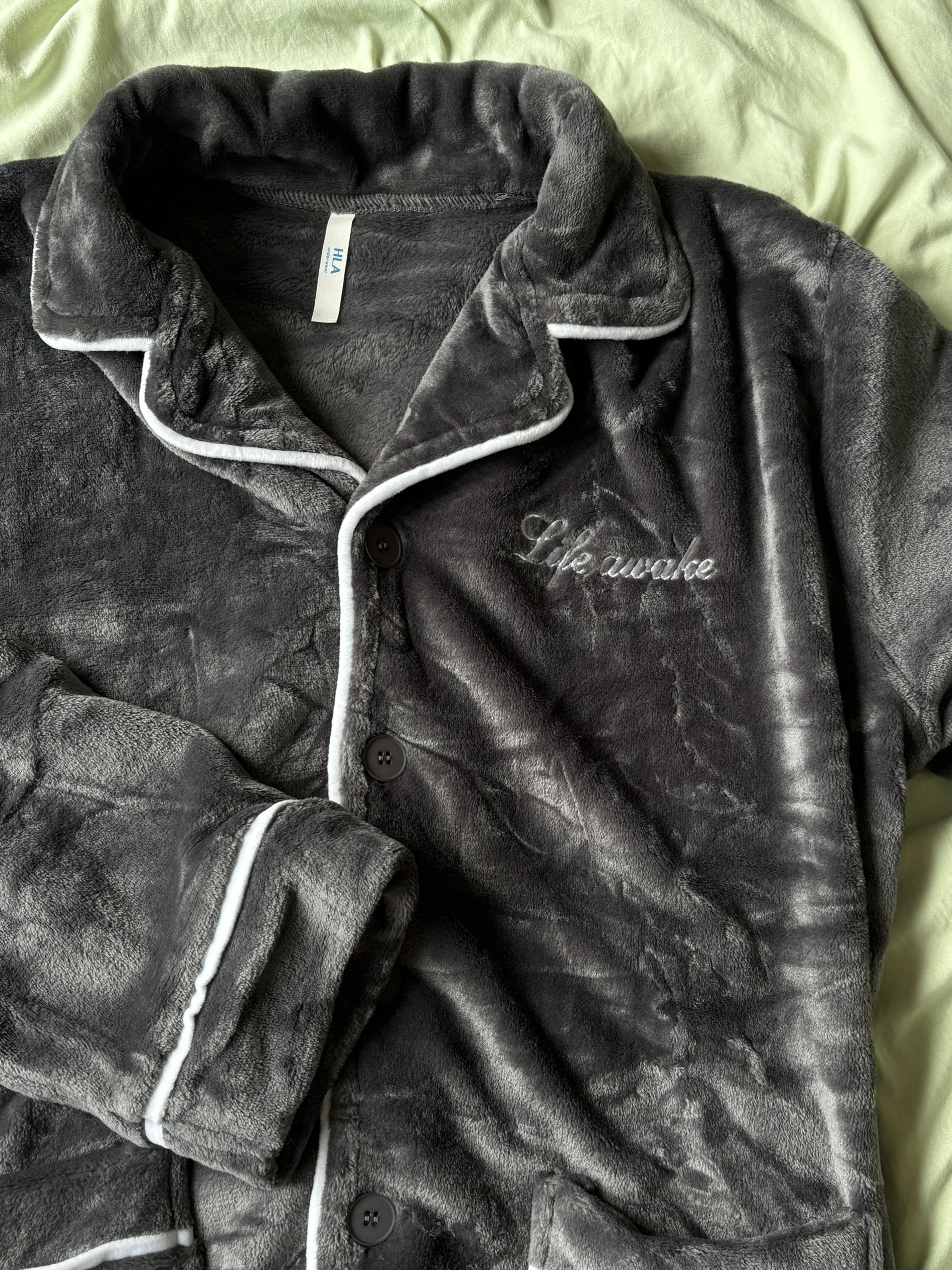 冷空气来临,最近换季时分,以前的睡衣派不上用场了,单薄的睡衣在家穿起来那是又冷又薄,出门十几度,又懒得换衣服,今天给大家带来一件,家用外出两用单品推荐,海澜之家的高颜值睡衣 👔:海澜之家 1、整体版型适中,宽松舒适,慵懒又不失时尚,颜色灰➕白色线条,勾勒轮廓线条 2、百分百💯的珊瑚绒,蓬松柔软,像撸猫一样的手感,软软糯糯 3、整体面料是抗静电的设计,小细节咯,冬日再也不怕静电啦 4、高颜值!翻领开...