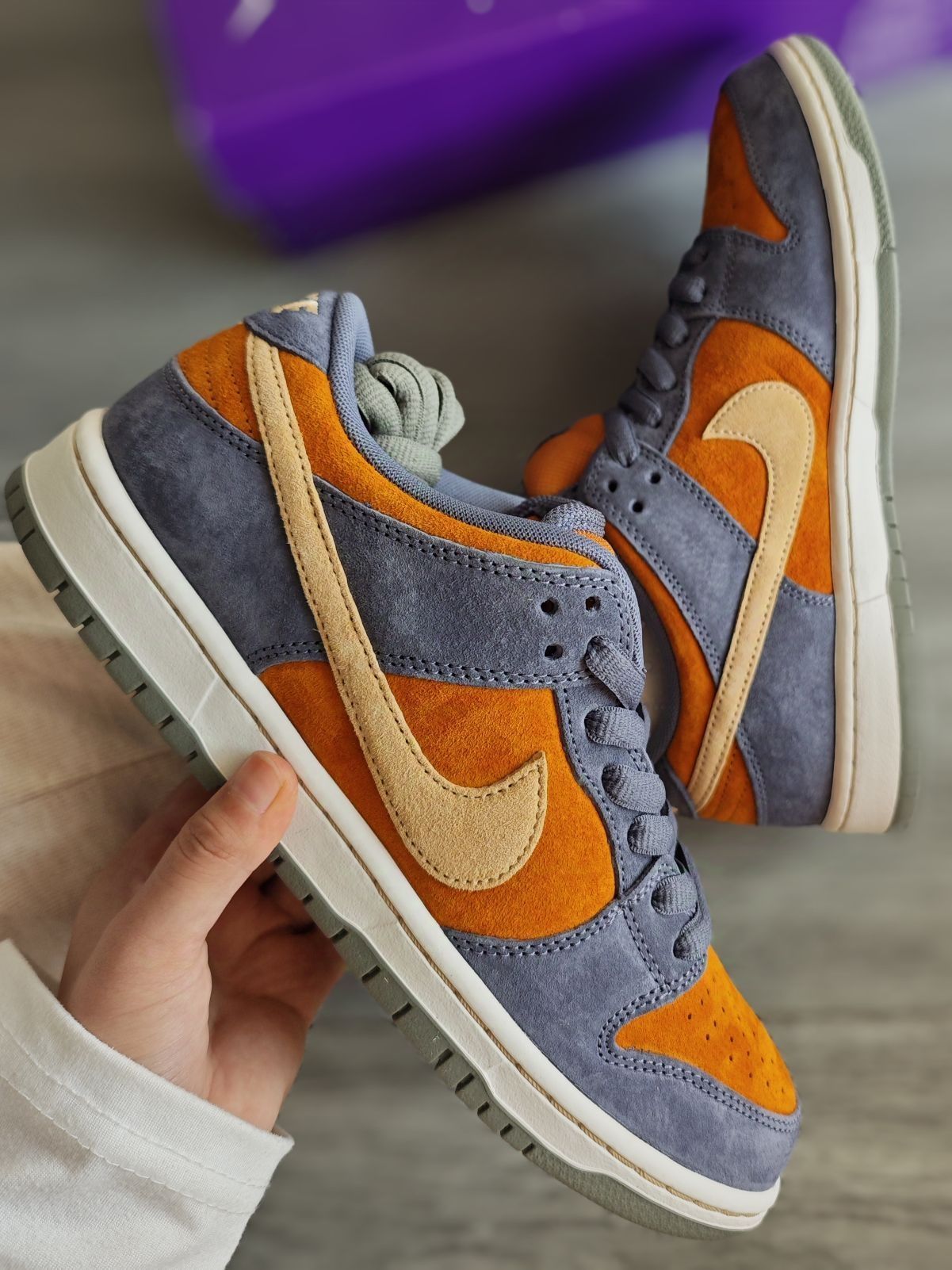 姐妹们我又发现宝藏鞋子啦! 就是这双dunk sb的棕色 灰蓝色和橙色的撞色搭配 优雅又有活力 反毛皮鞋面质感是真的棒 上脚好好看 600多拿下也太值了