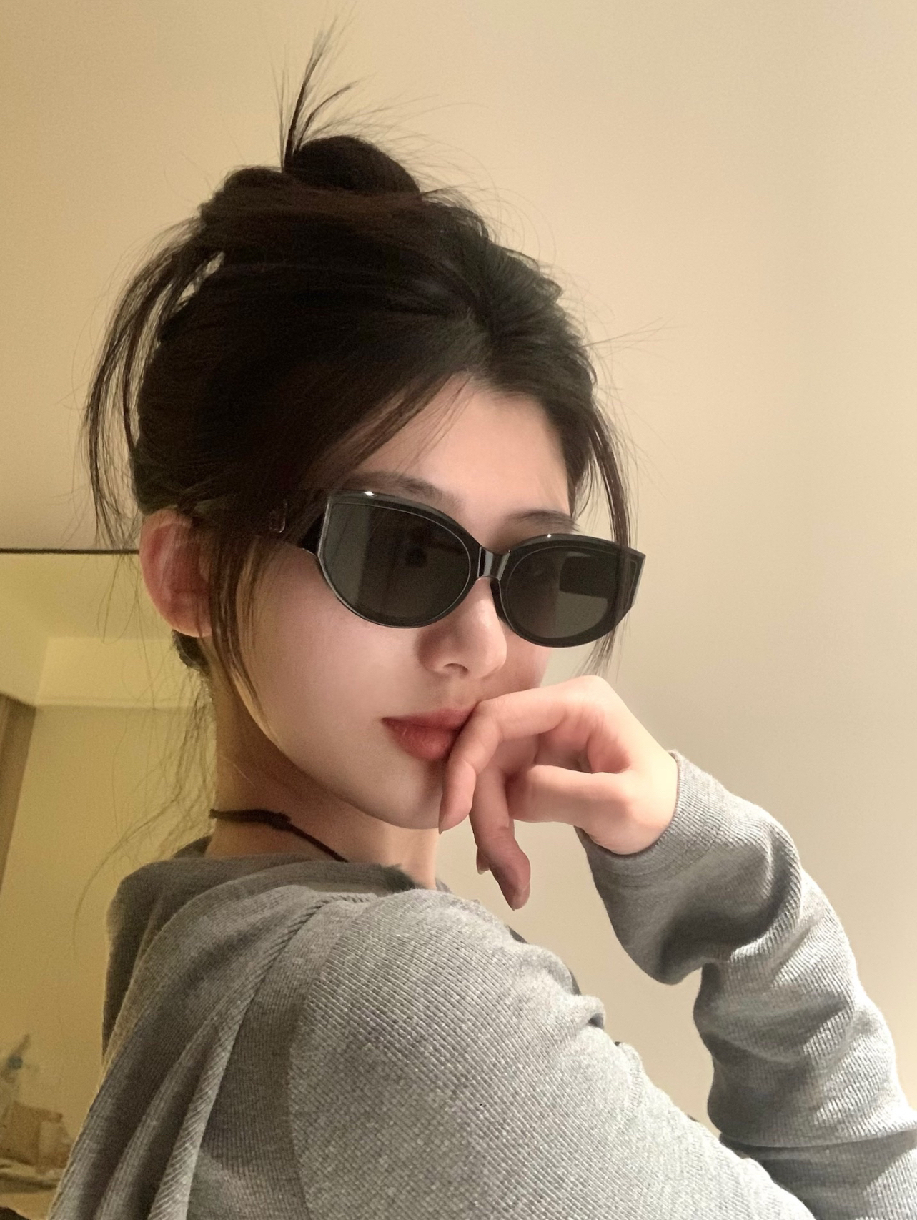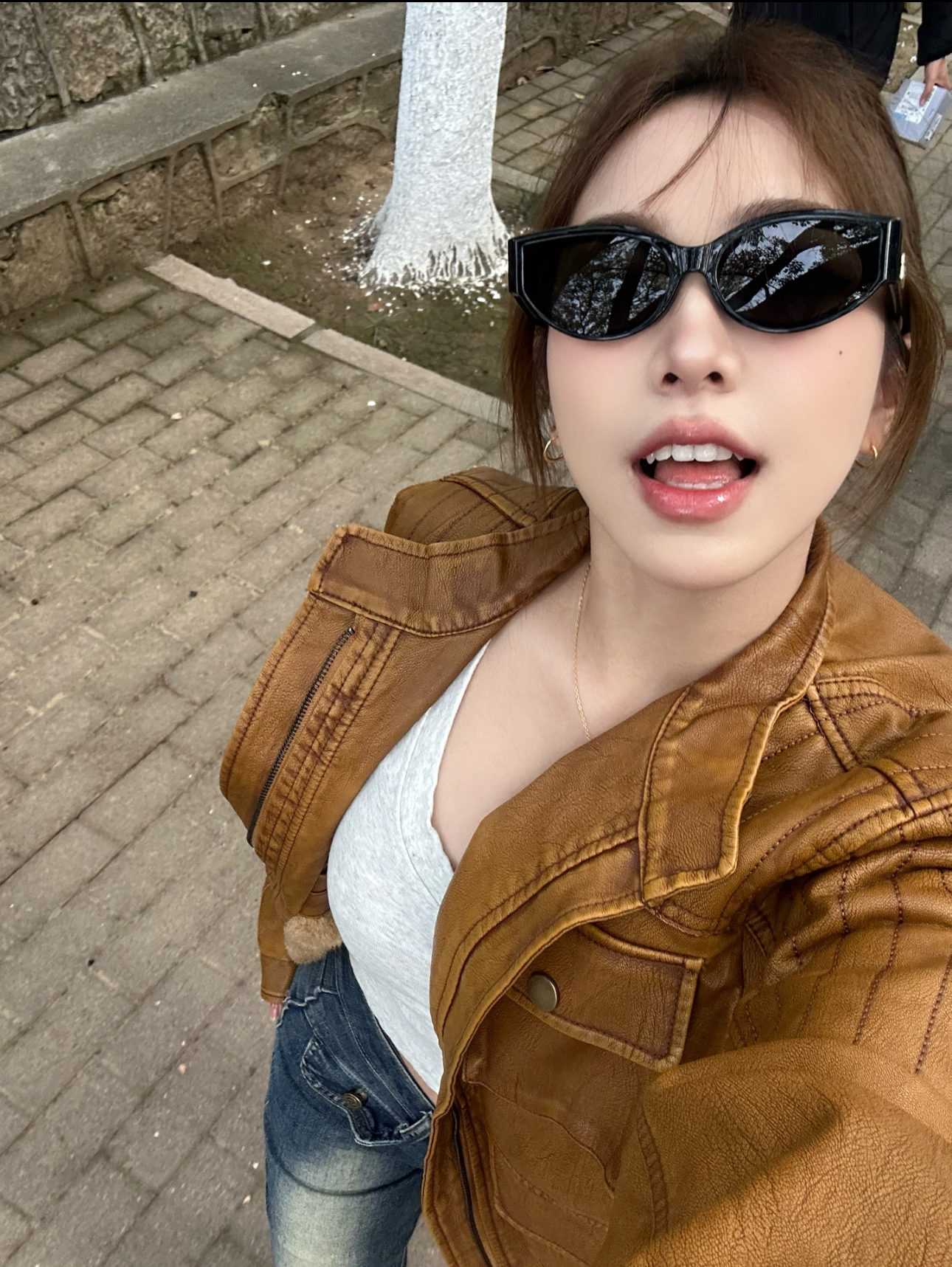 天气超级好的这天!!! 已经好到能短袖叠穿卫衣噜 最近又偷偷新入手的墨镜以前爱大框+基础款这次搞了个细框宽版有一说一对我们宽脸很友好朋友锐评:有种高攀不上的感觉真的很帅