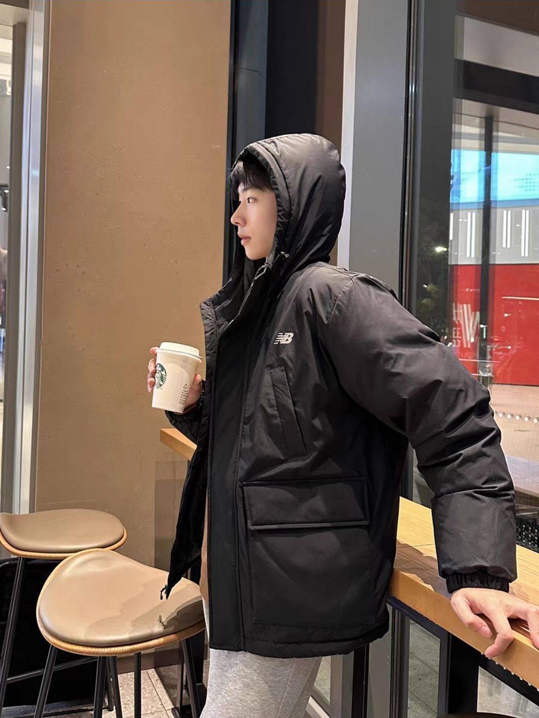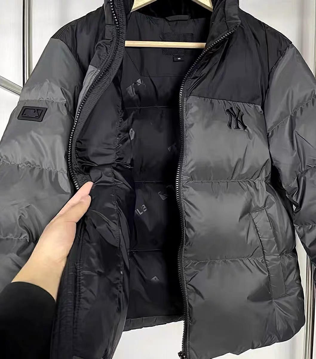 MLB家的经典款 充绒量很足,很饱满 口袋的容量也是比较大 手机啥的📱都能装 而且足够应付0度的恶劣天气了 下面裤子女生的话可以搭配鲨鱼裤,男生牛仔裤、休闲裤都可以😌