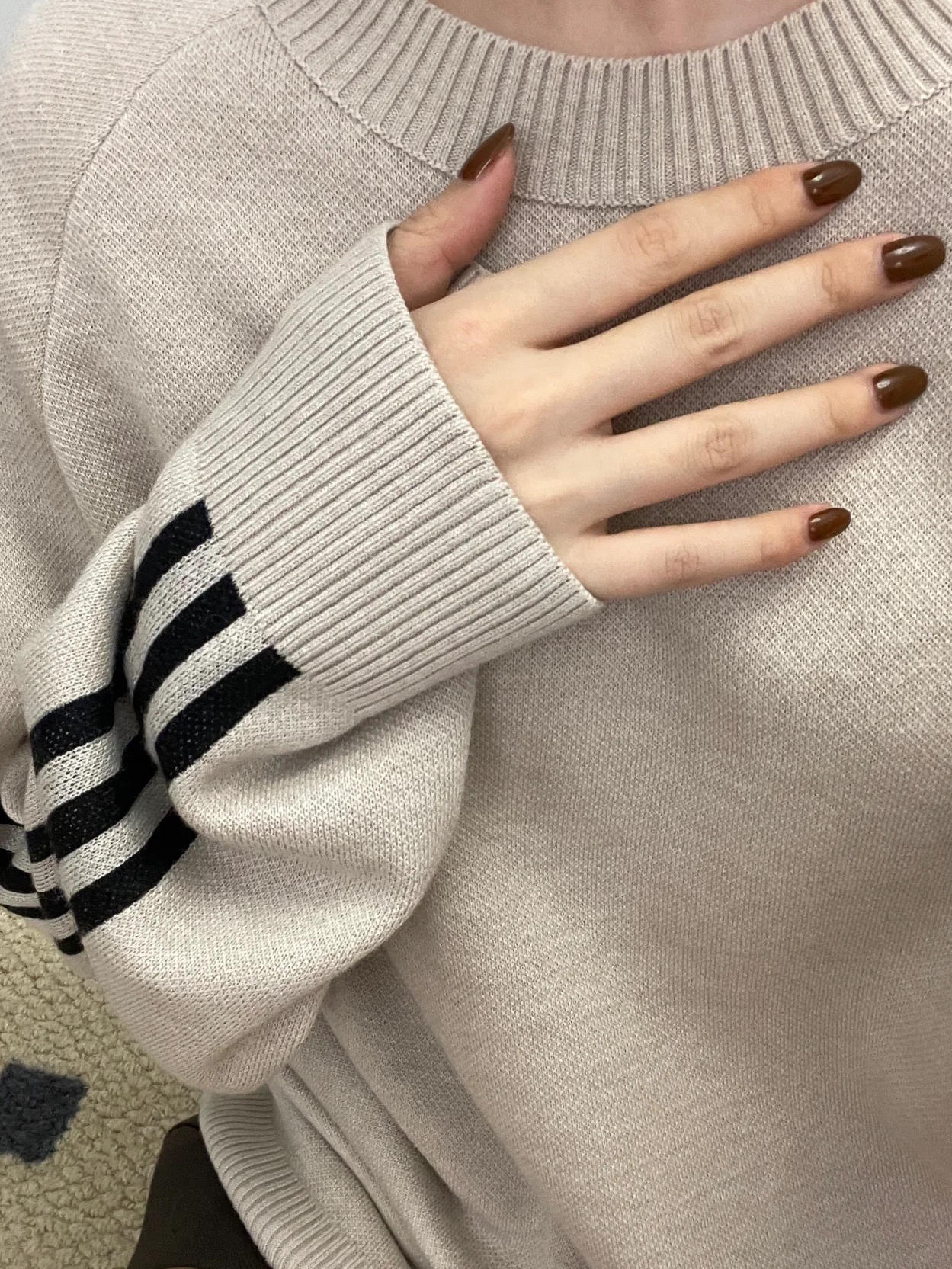 谁懂啊 没想到阿迪迪毛衣也这么好看 才两百块钱就可以拥有 外面穿个羽绒服 非常保暖