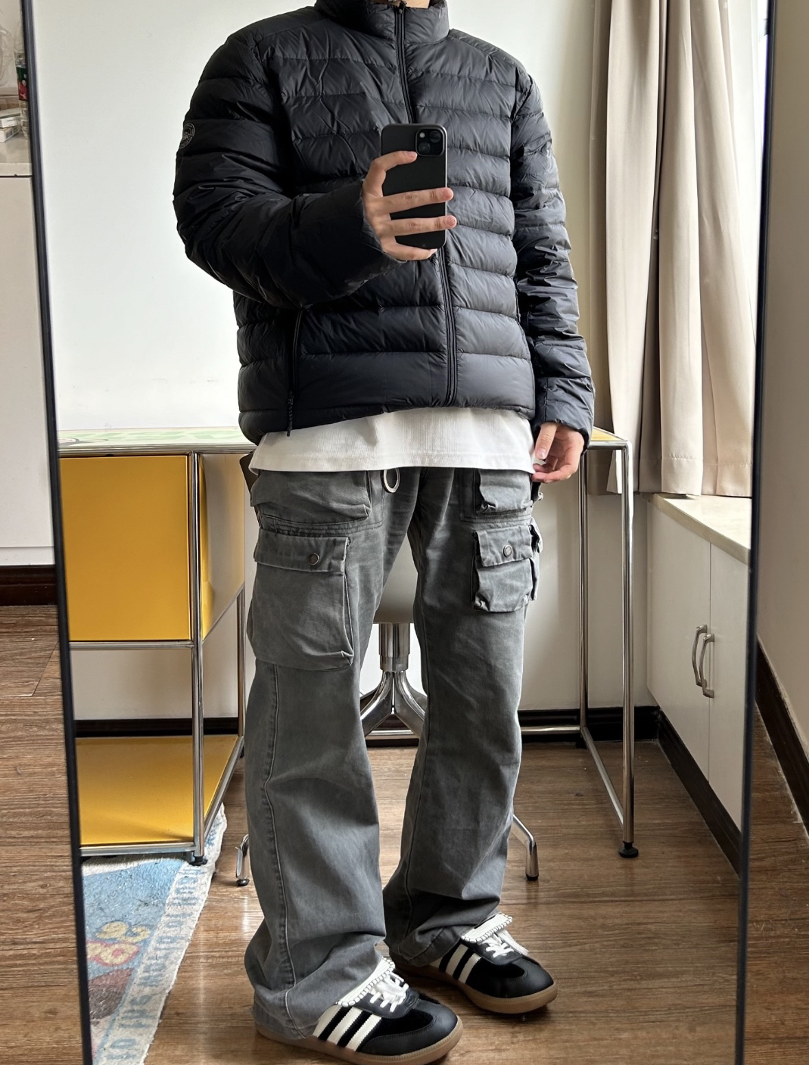 今日分享 👔 选择 OPELLIOT户外内胆羽绒服上身暖和安全感十足还防风 整个质地轻盈,上身不臃肿运动也不会束缚 外搭一个冲锋衣,秒变户外选手 👖选择做旧工装裤 多口袋的设计,实用性加分还有一股机能感 👟选择 adidas originals samba