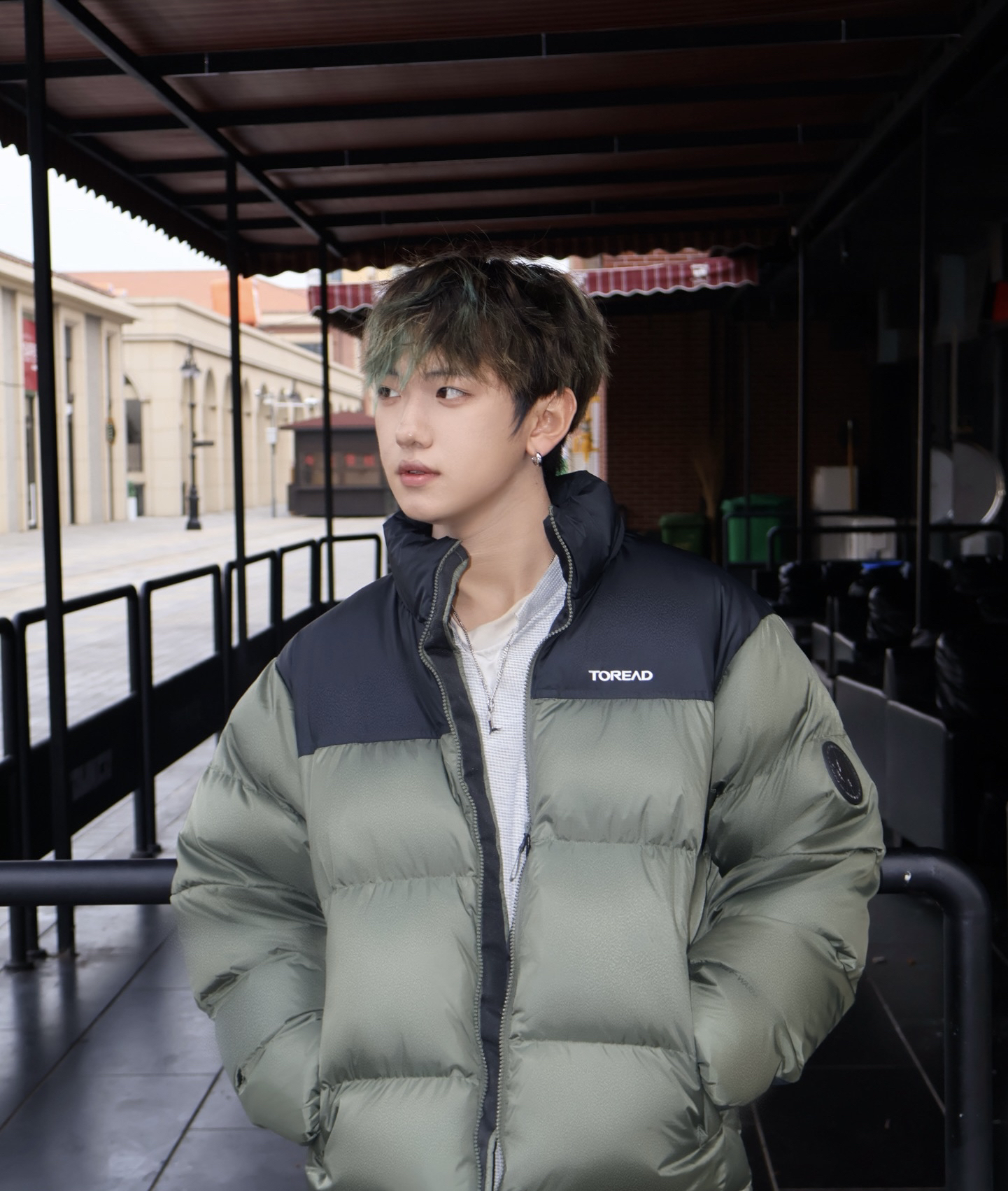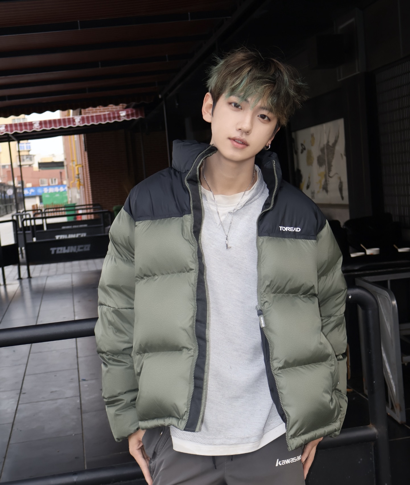 焯帅的墨绿色 拼接很有感觉,穿上感觉自己是街道王者🫅 下面无论搭配工装裤,还是休闲裤相必都是OK的! 冲冲冲