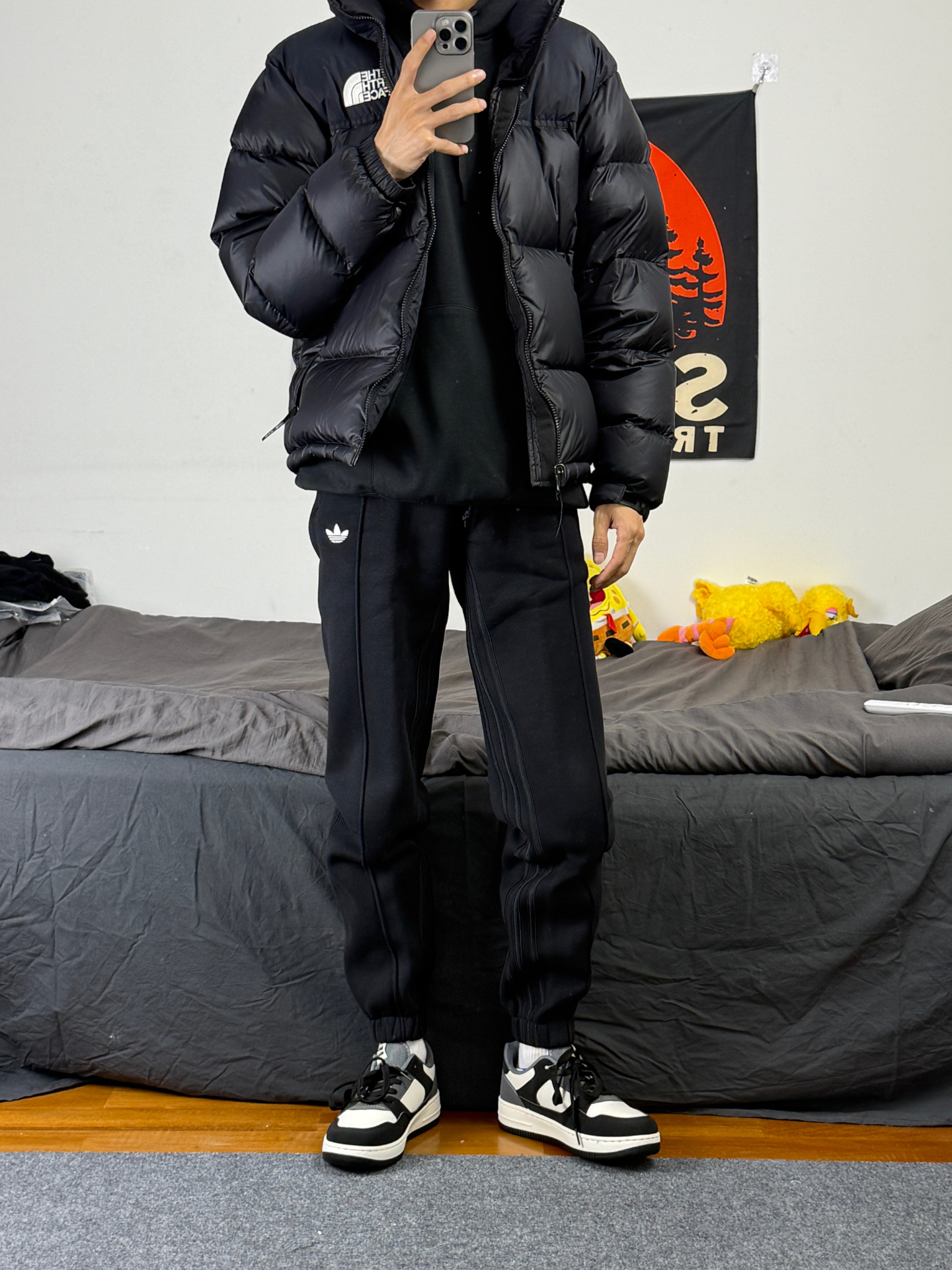 身高174体重48kg 今日上身 黑色北面羽绒服+黑色阿迪束腿裤+黑白熊猫板鞋 👔是北面家的黑色羽绒服 韩版,短款设计 上身显得腿长和腿直 👖搭配了三叶草的黑色束腿裤 加绒加厚的设计 上身特别保暖 侧边有竖条纹 上身显得腿长和腿直 👟是 #Warrior/回力 家的经典板鞋 简约黑白设计 上脚就特别百搭 脚感还特别柔软 脚码41上脚41 个人感觉不偏码 #时髦与温度并存 #肯豆腰线羽绒服 #...