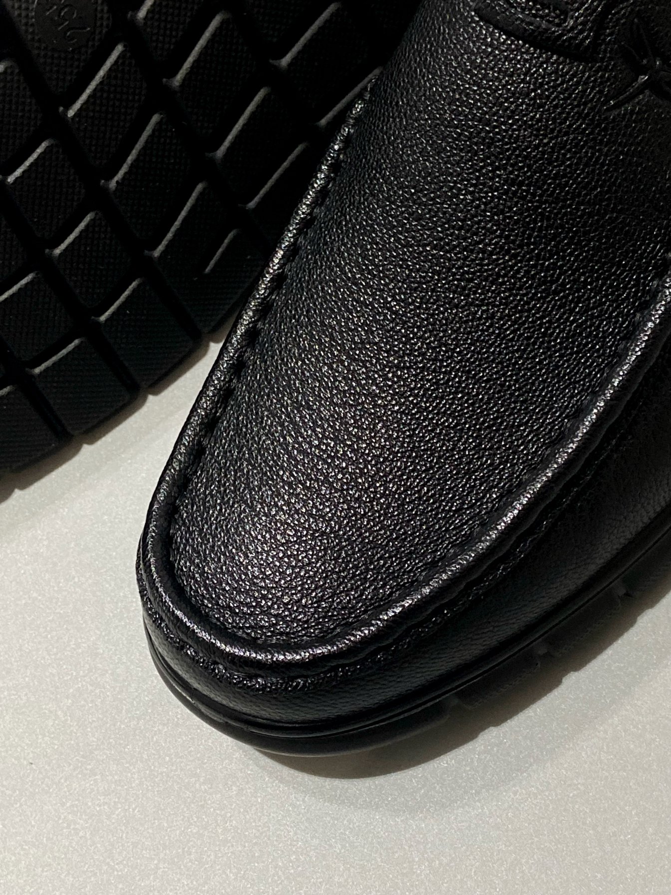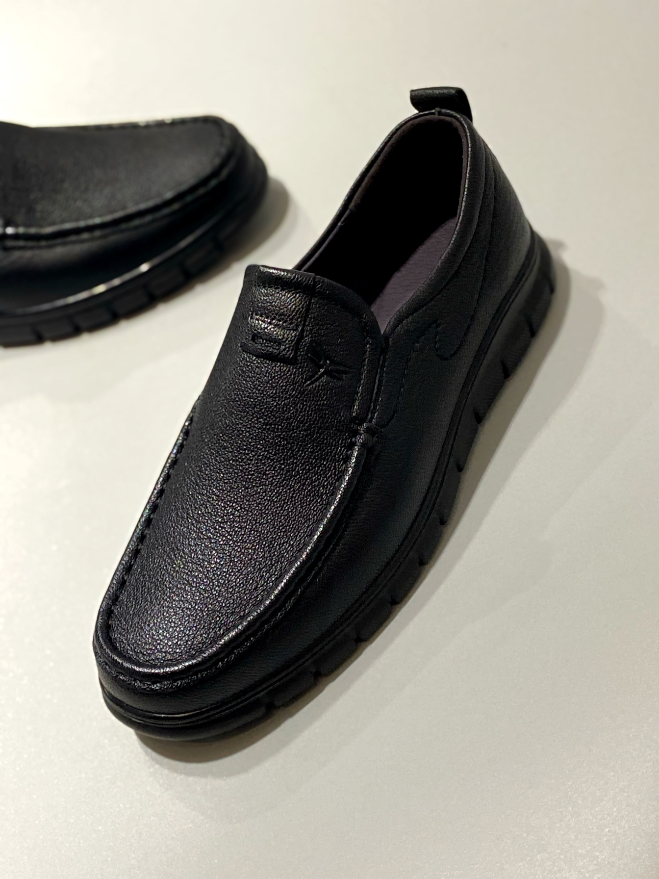 最近这款皮鞋我一直都有在穿 一脚蹬的设计 好穿又方便 鞋子整体是全黑配色 日常通勤、休闲都可搭配 采用羊皮材质打造 穿着雀实舒服 上脚不磨脚 蛮轻便的 尺码正常选即可 !