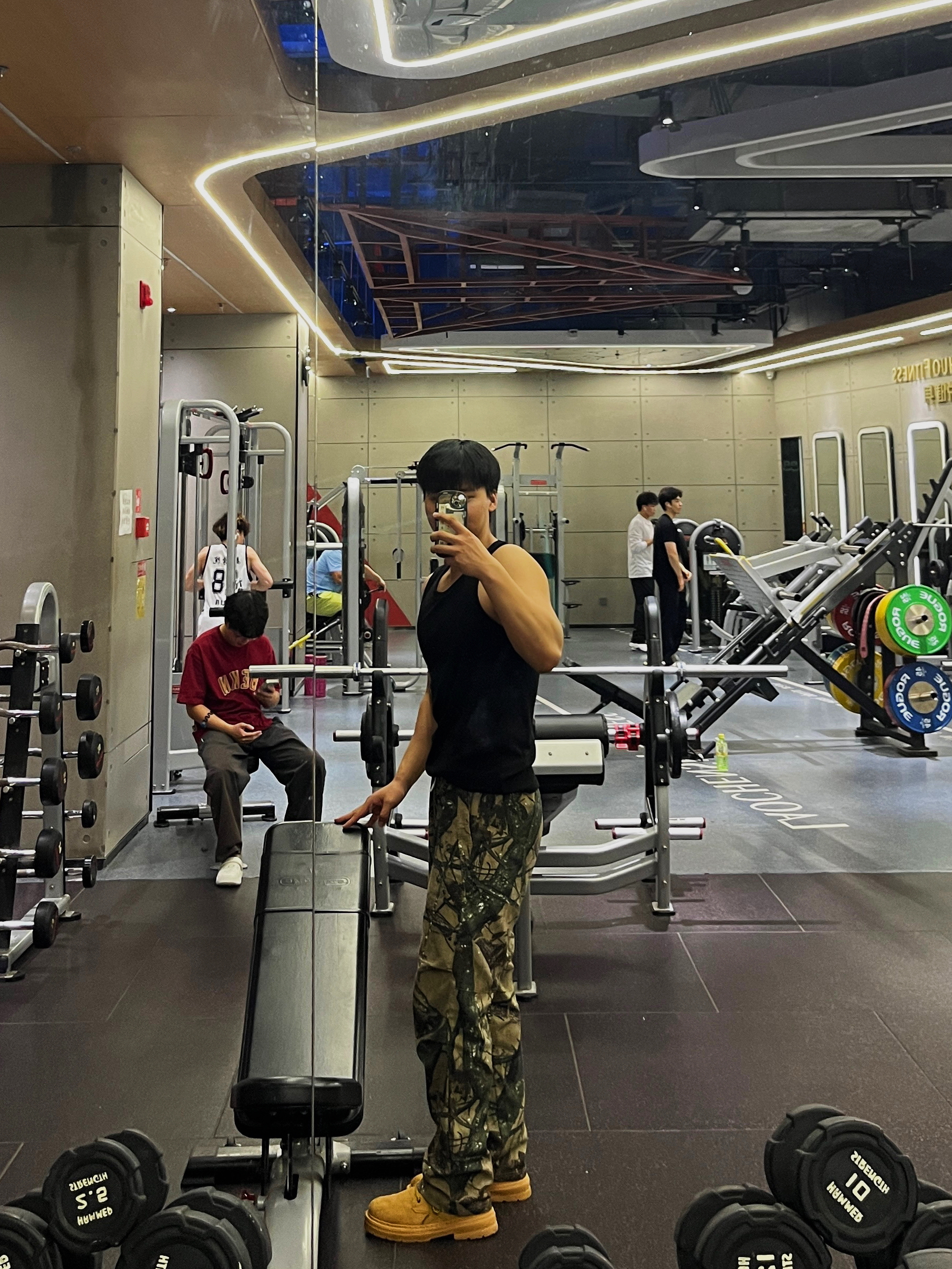 来健身房了简单的分享一下今天穿搭💥 👔 运动必备的百搭黑色背心,健身 打球运动 几乎焊身上了 !建议兄弟们背心都稍微买小一点点己,显肌肉大。 👖 uzis家迷彩运动长裤,好像是张宁同款的,裤子质量很不错,👍直筒宽松偏美式,搭配球鞋大黄靴都很合适👌 👟 回力的大黄靴!国货老品牌了,质量不错👍,穿上有3cm左右的增高,😂就是感觉穿上有点重!这双大黄靴搭配一些直腿裤,微喇裤很nice👍