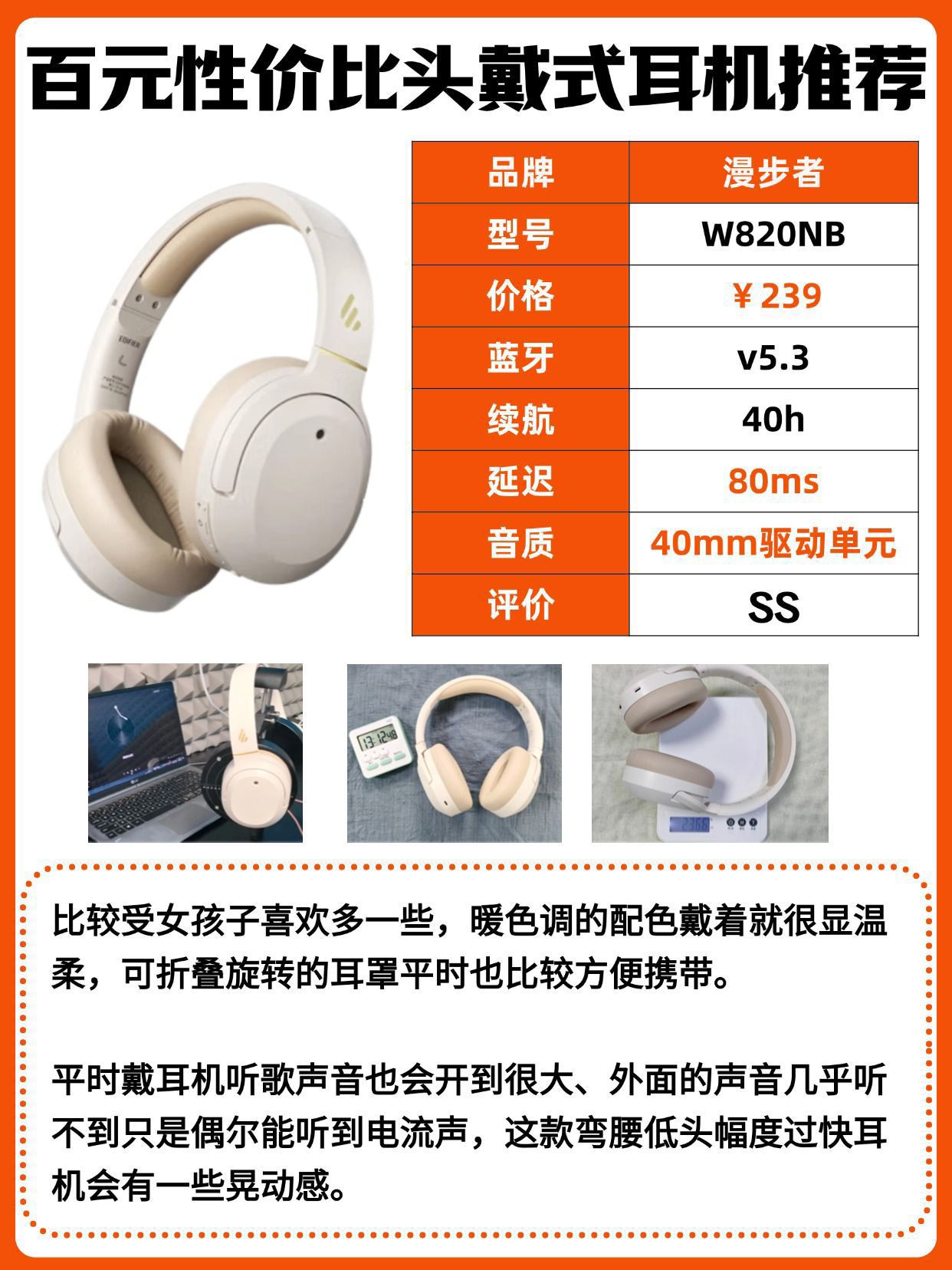 本篇笔记关联了【单依纯推荐】Edifier/漫步者 W820NB 双金标版 头戴式无线蓝牙耳机 主动降噪 双金标认证 超长续航 低延迟 网课 运动 音乐 云岩白、XISEM/西圣 H1 头戴式无线蓝牙耳机 运动时尚电竞游戏 舒适柔软 双重降噪 英语听力 高音质 音乐音质 卡其色等商品,为用户提供真实的使用体验和购买参考。