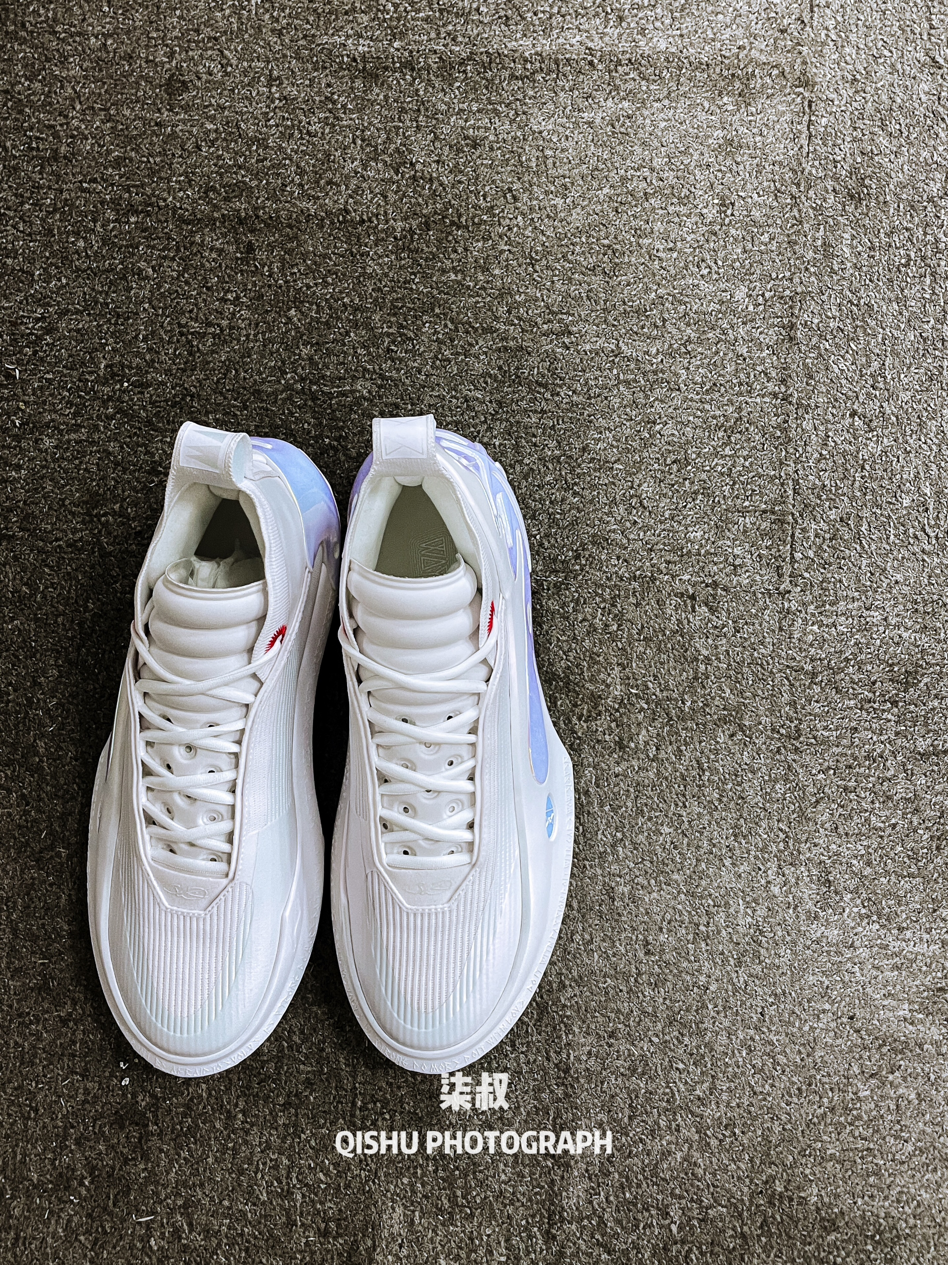 最近在网路上看到了疑似韦德之道11“305”配色的海报,但是后面一查才知道这个配色其实叫“闪银”。 纯白+电镀蓝妥妥的305既视感,管他叫啥呢,帅就完事了果断搞到手。 拿到手整体而言来说帅是挺帅的,但是我觉得质感有稍微有那么一点点那啥了。皮质的鞋面上脚久了感觉有点透气性不足。 在大面积白色底色+鞋身正面银色的韦德之道品牌logo,电镀蓝TPU不同角度看有着不同的色泽,挺有未来科技感,外加皮质的鞋面...