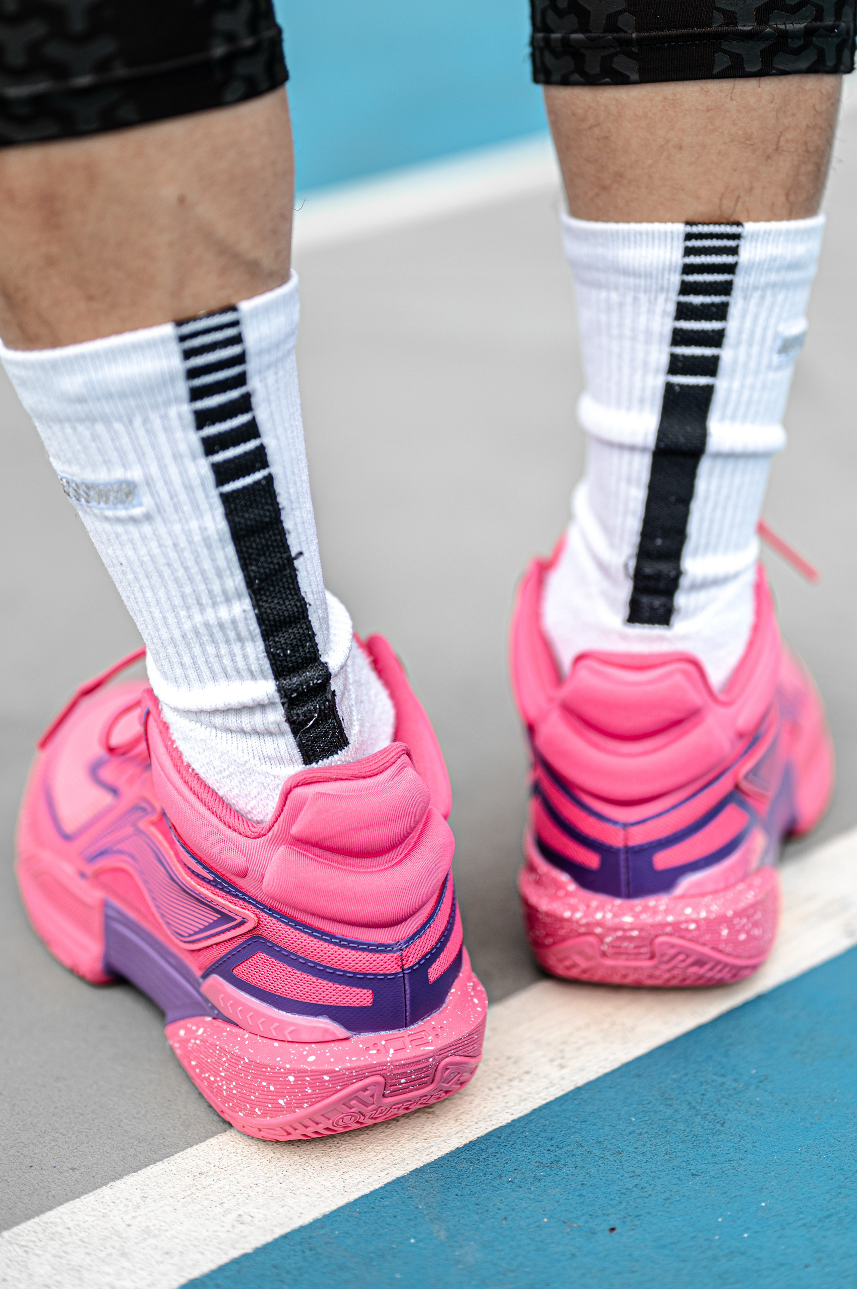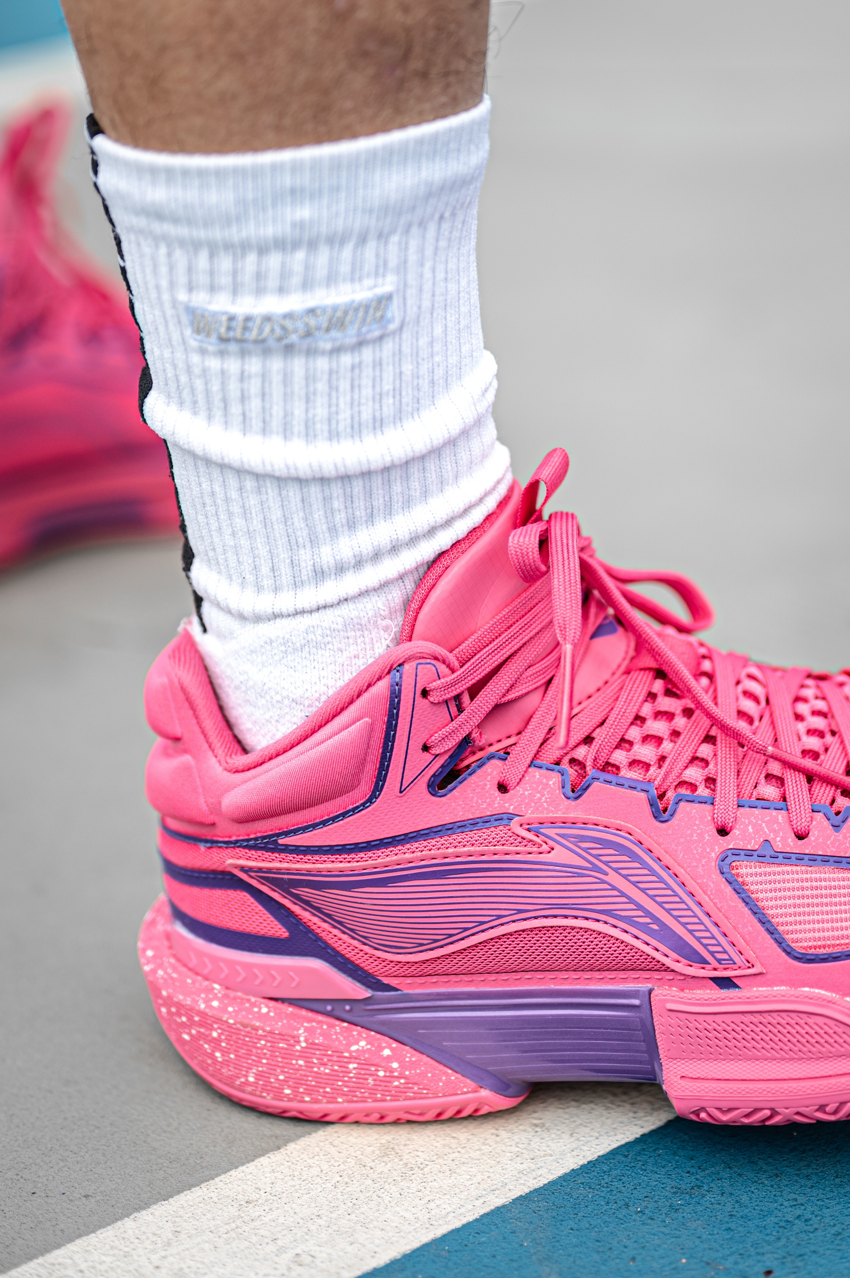 二开价位还能用来应用于水泥地打球,这双轻速2Mid其实就是这种定位,最近也是频繁穿着它,而且我觉得颜值是真的很耐看。 这双鞋其实还是蛮适合秋冬季节穿着的,毕竟因为鞋面的厚度较厚,别看它是中高帮的鞋帮高度,但灵活性是不错的。 这款轻速2Mid二开价位的同时,是非常适合后卫前锋来穿着的。