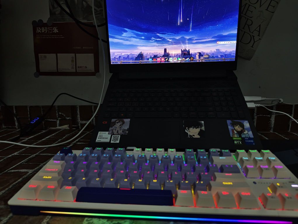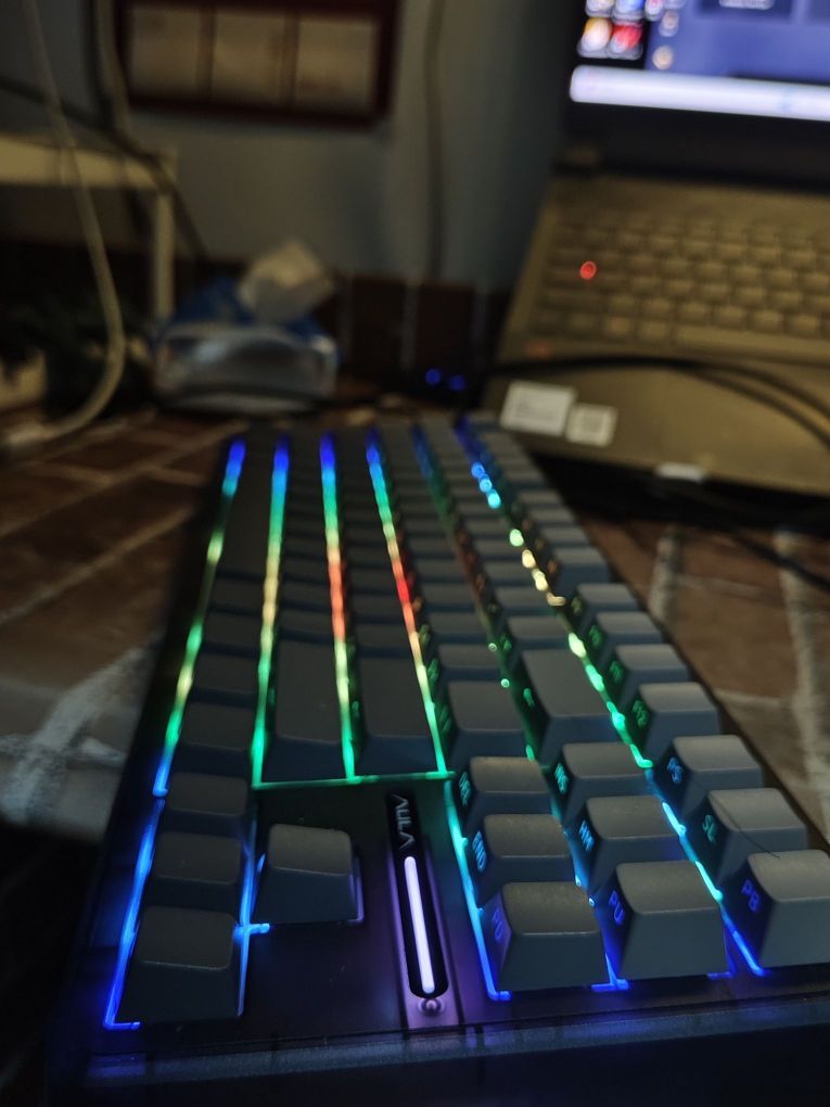狼蛛这一块,f87的颜值就不用多说了吧,黑色侧刻刚拿到手的时候真的惊艳到我了,厚重感加上黑色侧刻给人一种高级感。 1680万种灯光模式,支持音乐律动,加上麻将音真的不要太帅。 灰木轴手感轻盈,打游戏和办公通通不在话下。 就冲这颜值,给我冲!!!