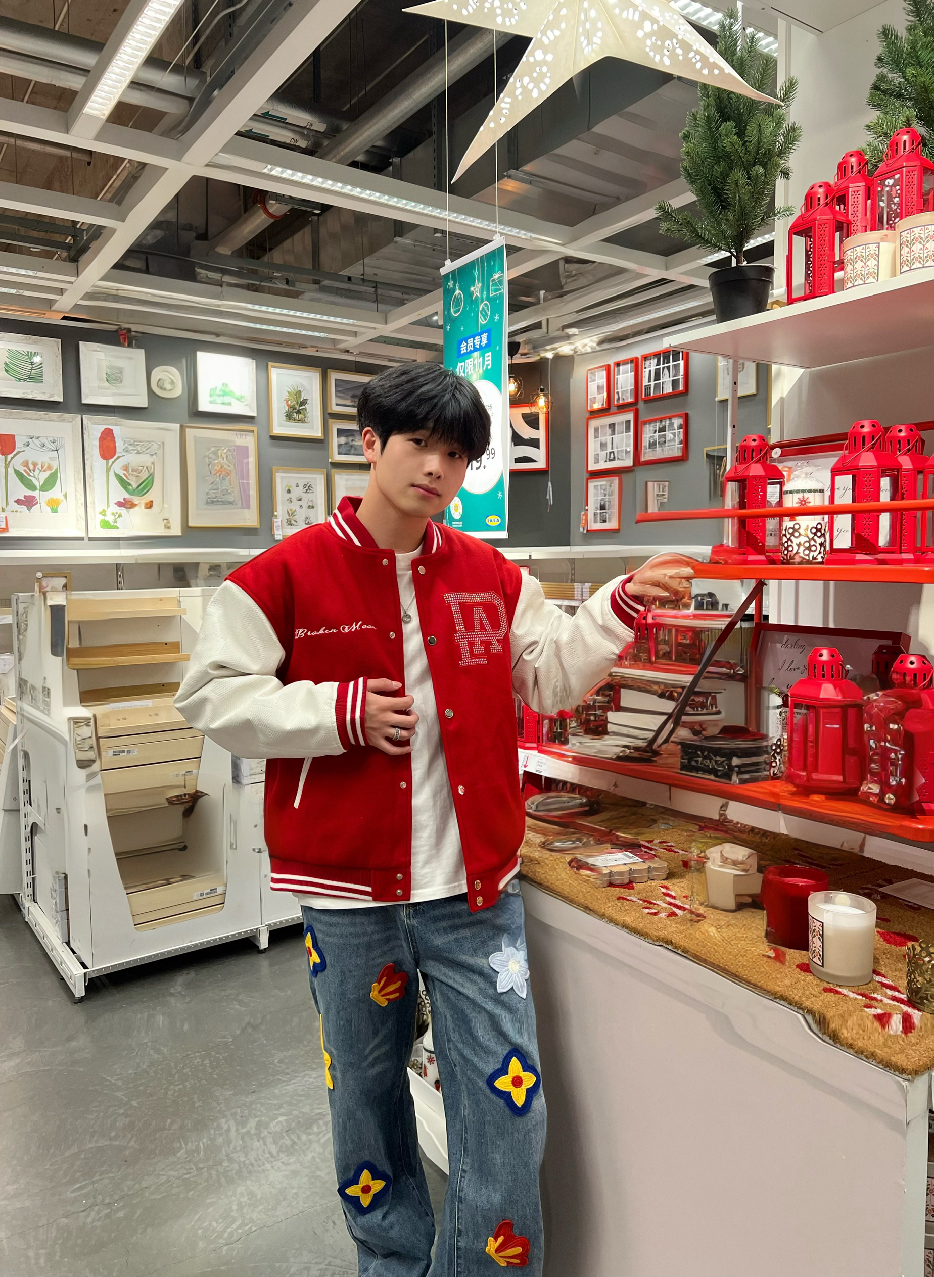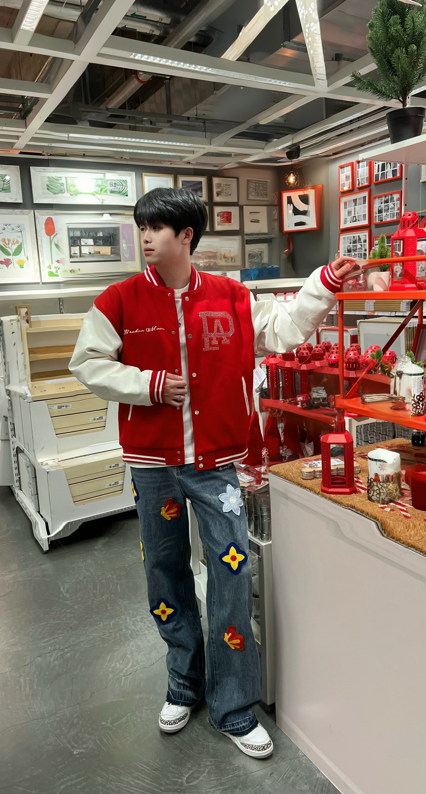 🧥 外套:LOUIS VUITTON SS24棒球服 👔 上衣:CK短袖 👖 下装:A chock重工艺花瓣钩花绣花牛仔裤 👟 鞋子:aj3火焰红白 🎒 配饰:古驰戒指