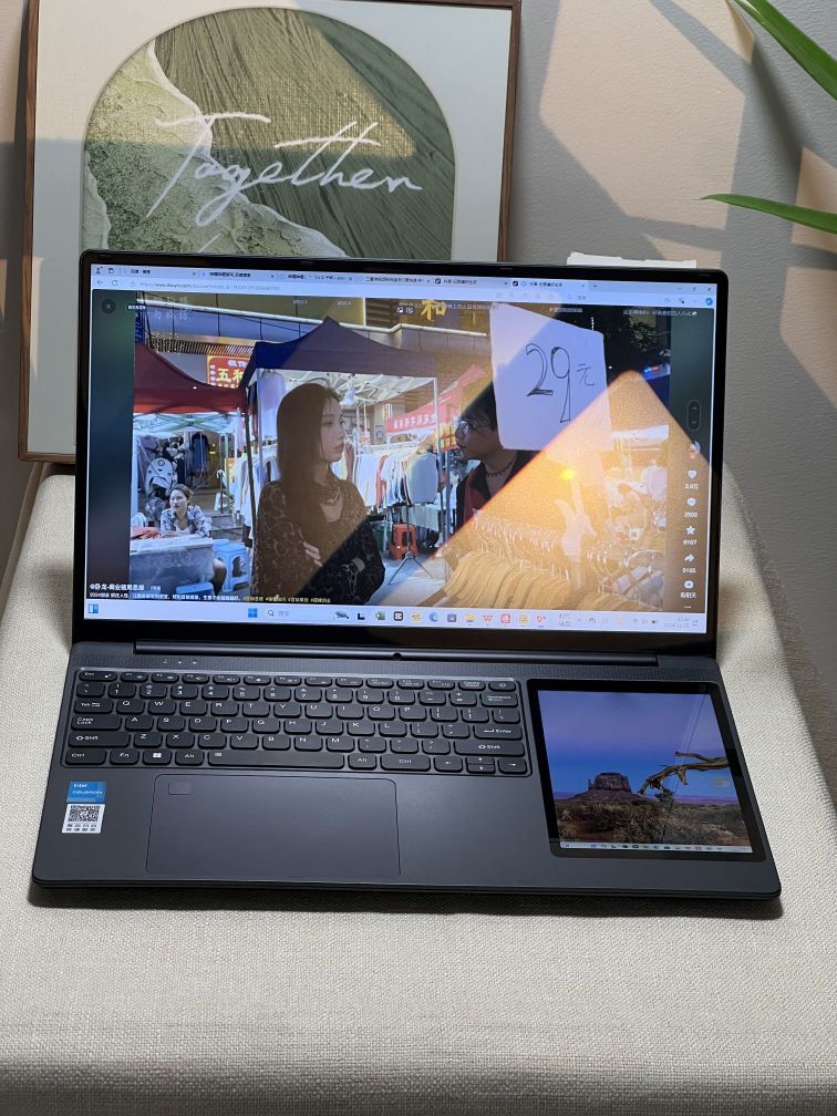 第一次见入手这种双屏笔记本,没想到用起来效率嘎嘎提高。 键盘的右边有一个7英寸的大屏幕,可以与主屏进行联动,相当于多了一个副屏,可以用来画画、编辑还有做笔记等等,效率大大的提高了。 其他方面也没有落后,12代英特尔处理器,4k级的主屏,感觉这个价位,对于我这个学生党真的太友好了!