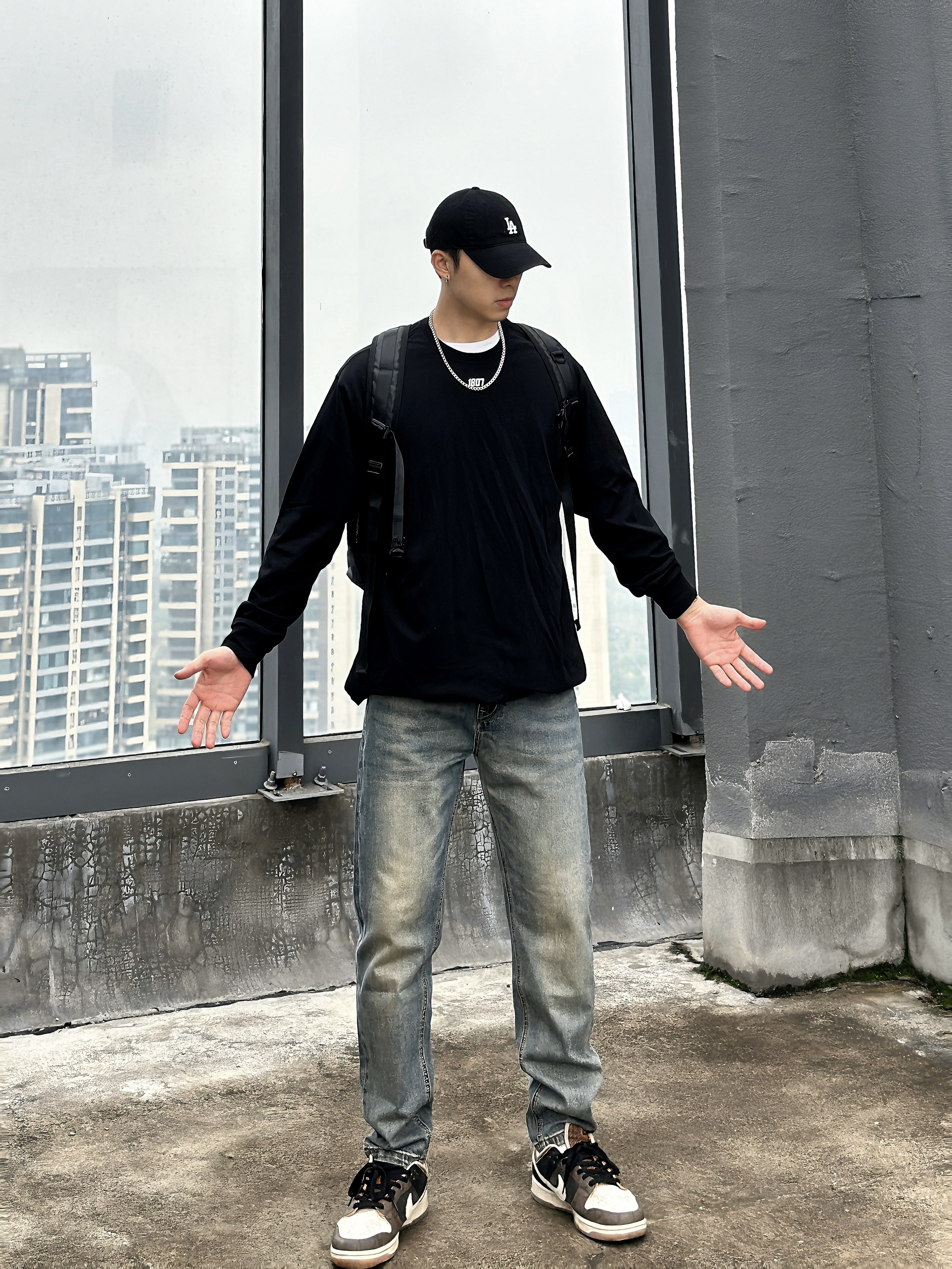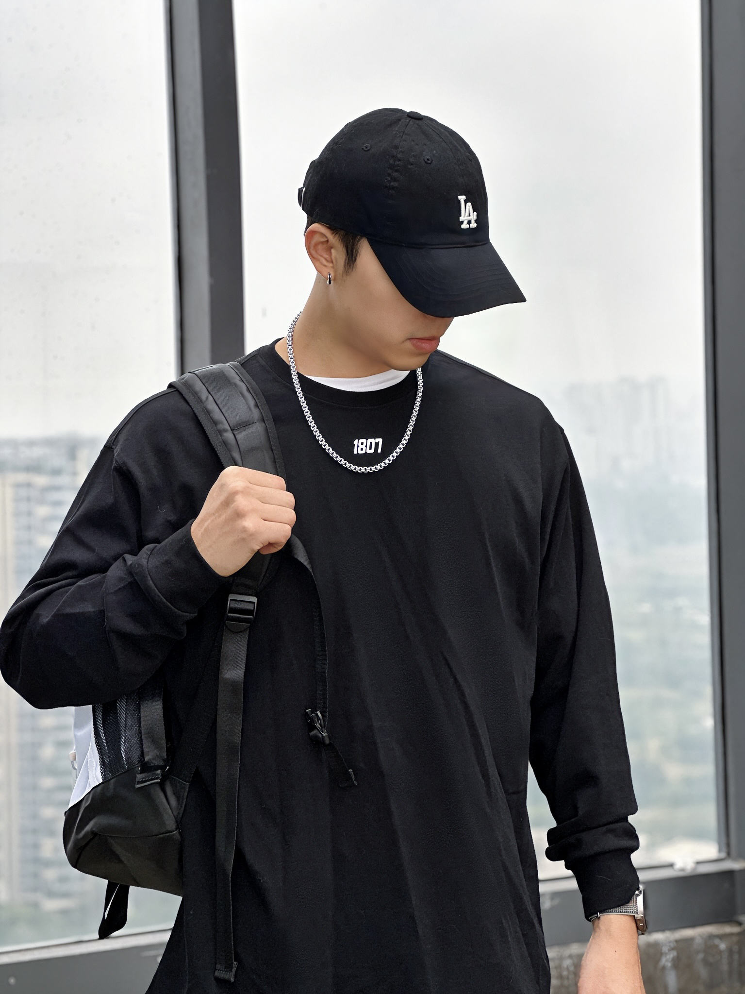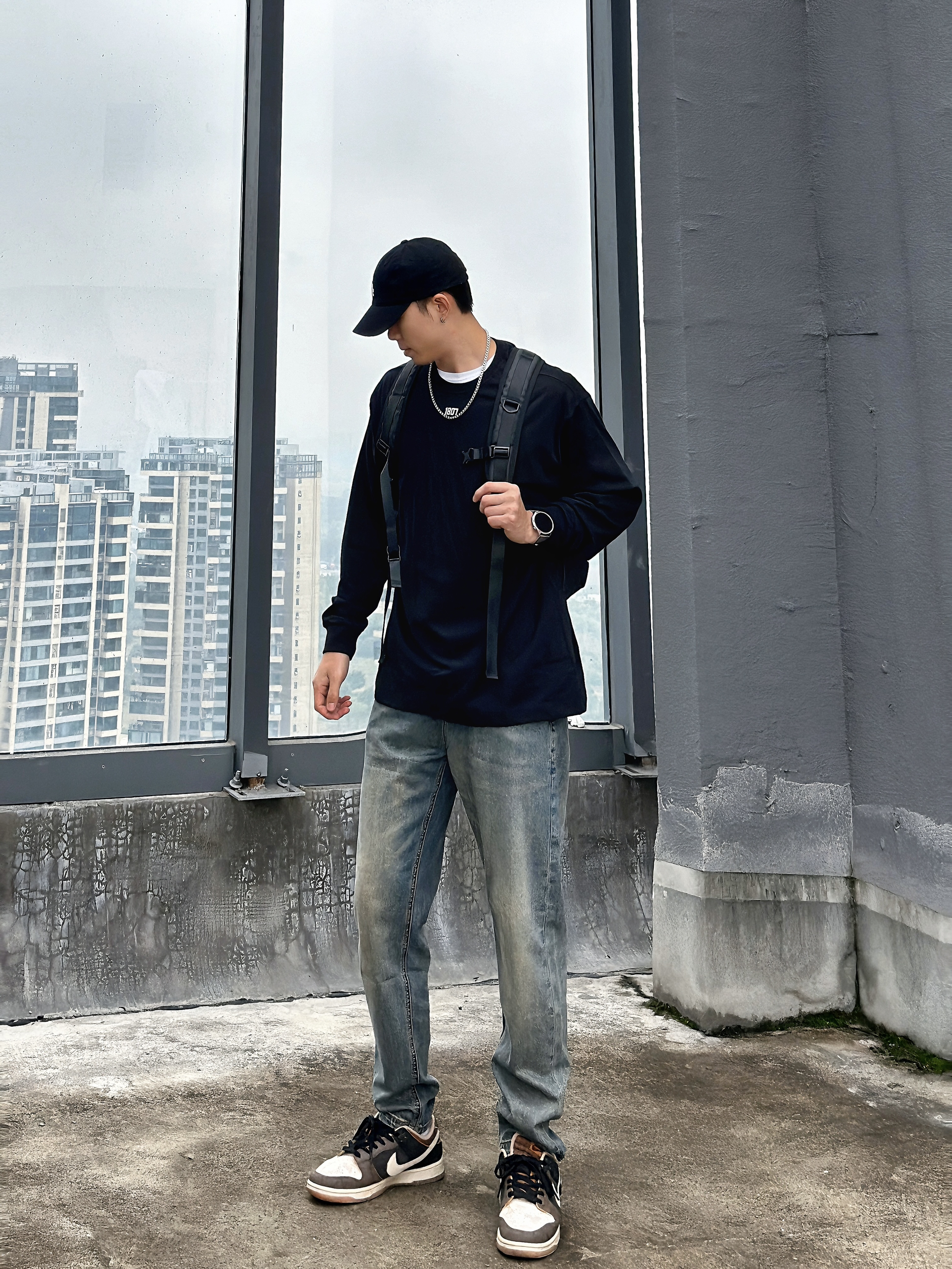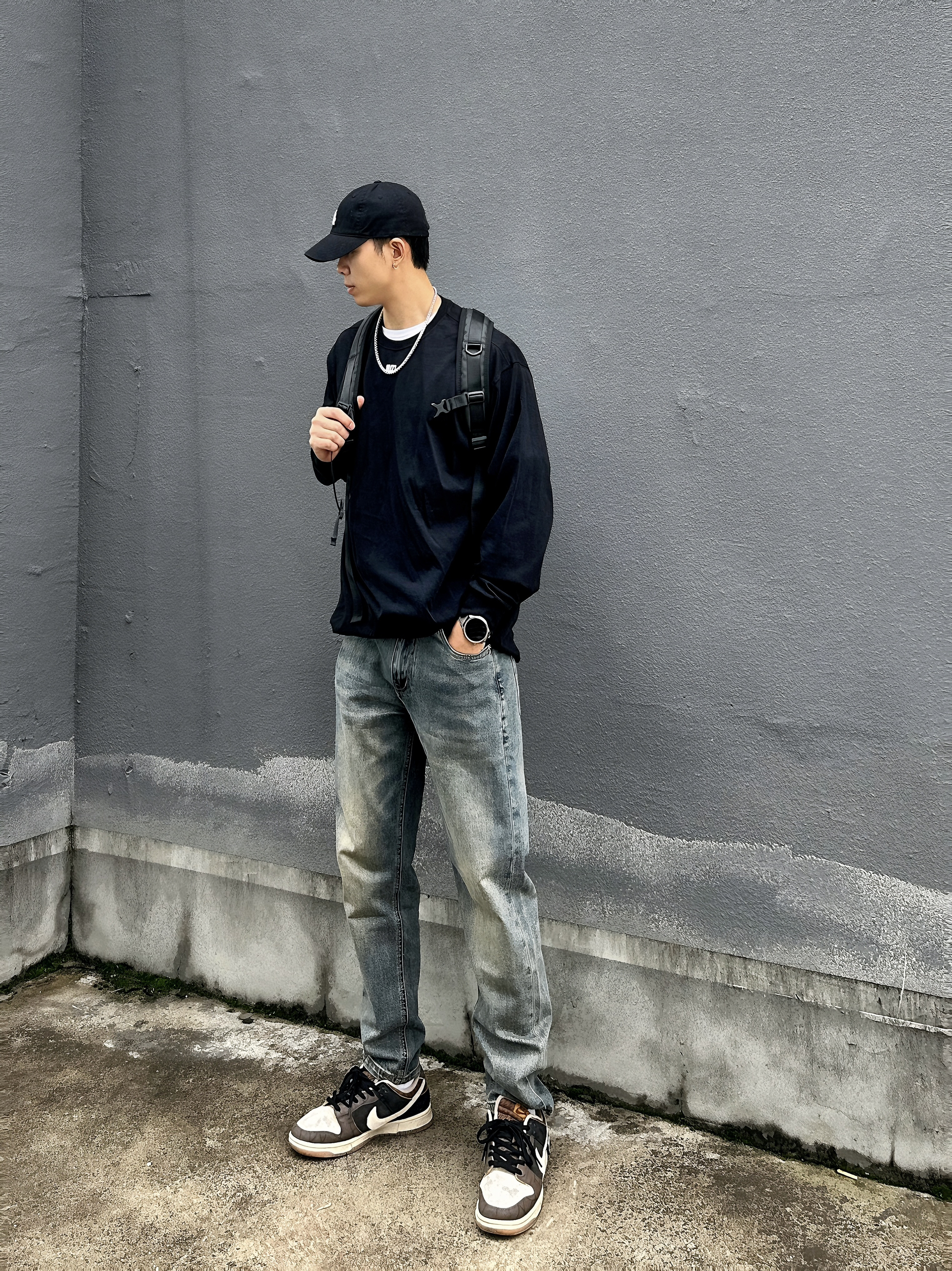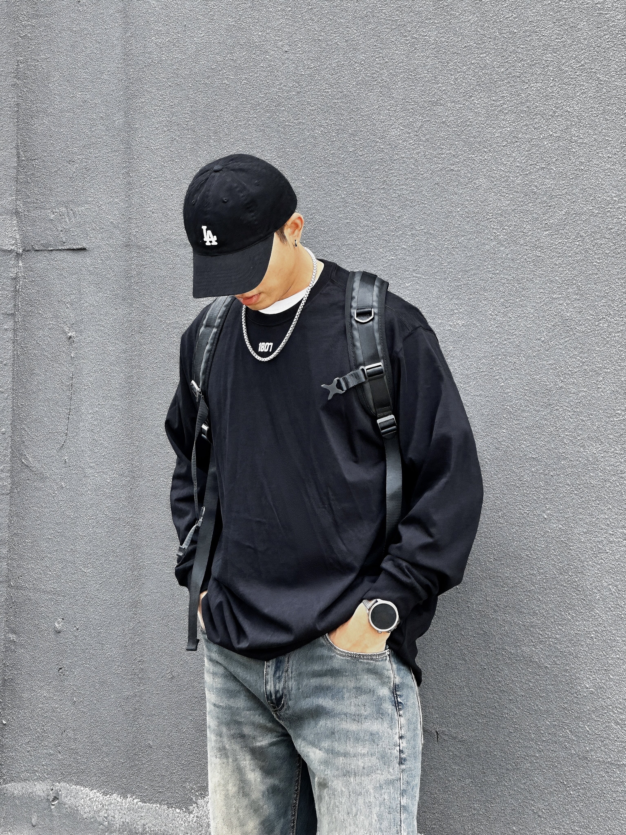 🧍♂️:嗨喽∽今儿小杨分享一件国潮长T⬇️ 🧢:logo印花黑色鸭舌帽 👖:黄泥色做旧直筒牛仔裤 👟:棕色平底板鞋 👔:1807👉尺码推荐181cm 75kg➡️XL(宽松) 这件黑色长袖真的好喜欢,既可以单穿又可以内搭😍 纯棉的材质 穿感很柔软舒适 我穿了好久也没有起球👍🏻 纯色T恤搭配数字logo设计 简约又不是高级感 而且还很百搭✅