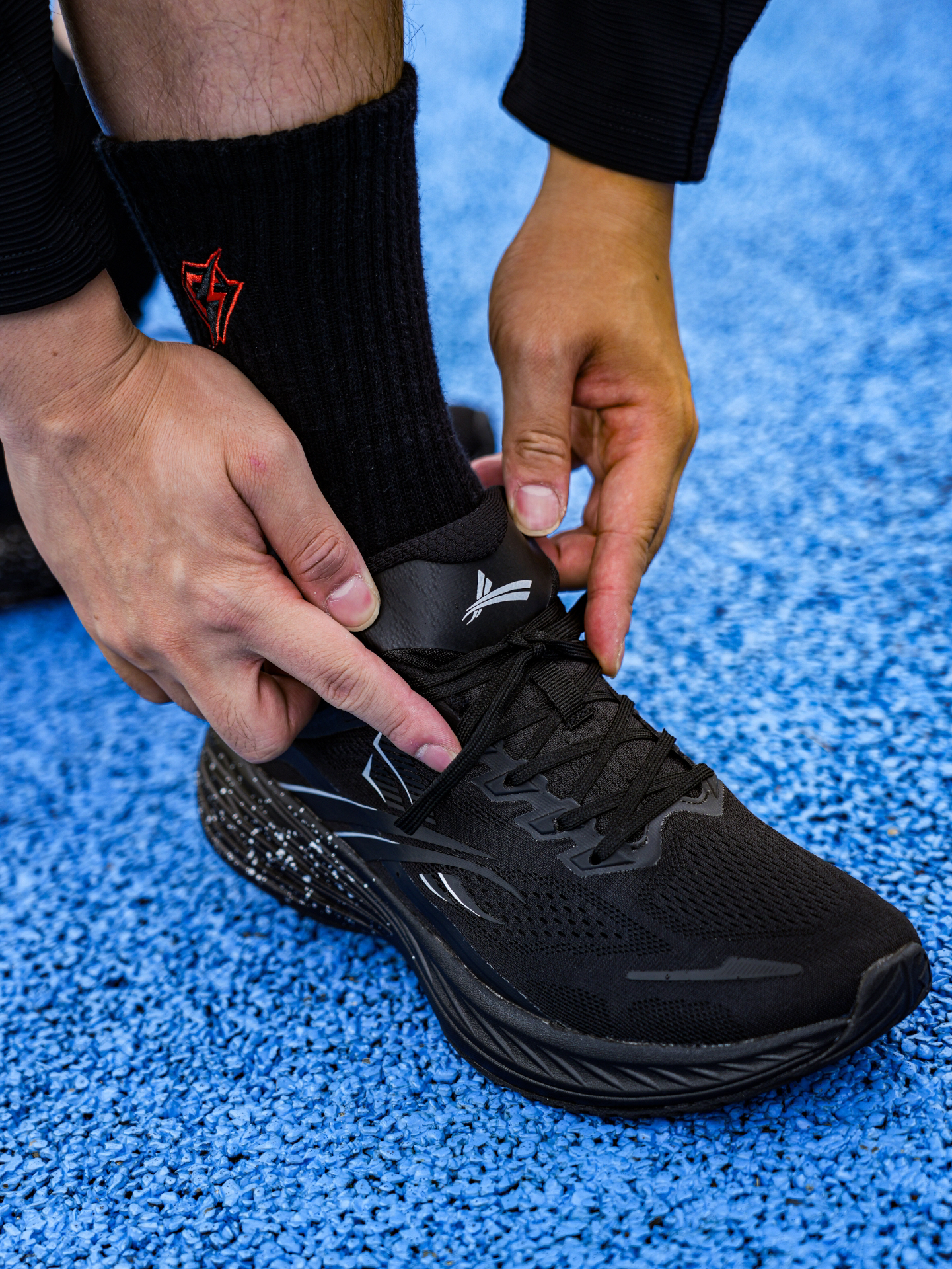 黑武士配色是跑者们的爱?沃兰迪听到了你们的呼声,这款沃兰迪熊猫跑鞋新配色会是你不错的选择! 纯黑色系的跑鞋不仅耐脏耐看,而且也能满足一些特殊职业朋友的需求,日常通勤穿搭也能稳稳驾驭!且这款沃兰迪熊猫跑鞋上脚门槛比较低,适用范围很广,能够兼顾于日常竞训或者简单轻运动锻炼,对于学生党们来说是万金油跑鞋的选项。 中底脚感给我的反馈较为韧弹,而全掌的飝轻弹技术对于体测体考或者学生党日常体育课需...