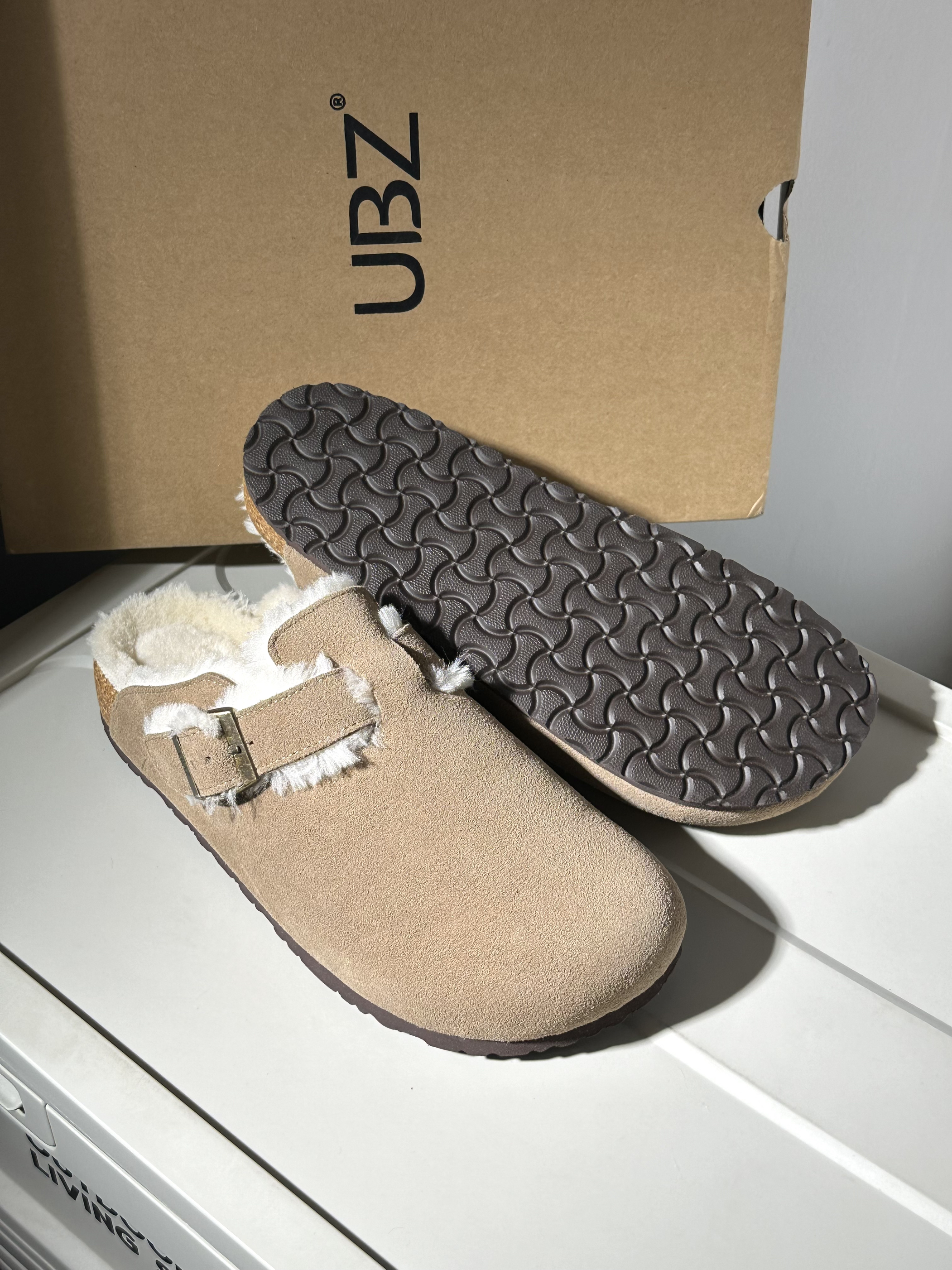 今天跟大家分享一下最近发现的宝藏软木拖,很适合秋冬的一个加绒款!一起看看细节如何吧~🤗 − 🐳配色:最近入手了这双UBZ家的卡其色包头软木拖,鞋子色系很简约~就是以卡其色为主,再加上米色绒毛的点缀,很有秋冬的氛围感,同时大地色系上脚也很好看和百搭,而且可以与穿搭来进行呼应,很有时尚感‼️✨ 🥝材质:鞋面全部用到牛反绒,质感很棒也来的很直接,同时防水效果也很好,在秋冬雨雪☔️比较多的天气也不用担心容...