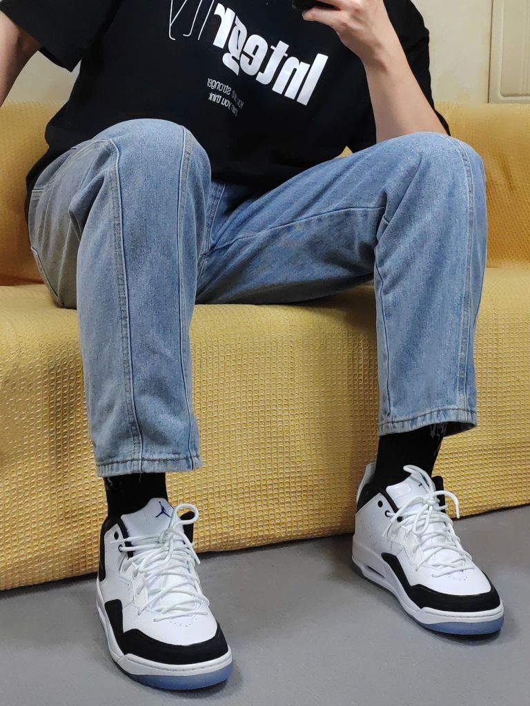 整体以白黑配色为主 以淡蓝、暗紫两色点缀 这双复古风满满的中帮板鞋 颜值还是灰常在线的 由皮革材质打造的鞋面 质感这块也蛮不错 上脚穿着感觉软硬适中 外底还有带air max气垫的-- 淡蓝色橡胶大底加持 给到的抓地力还是OK的 无论是平常通勤亦或是球场运动 穿这双都是个合适的选择哇 尺码方面有偏差 我平常穿44码 这双选的42.5码🉑